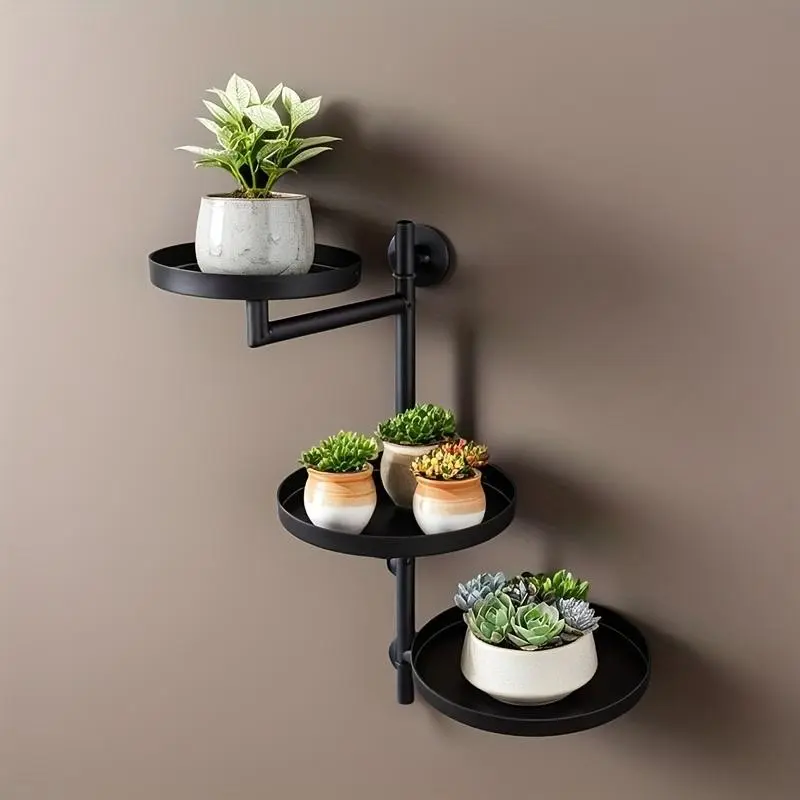 Wall Mounted Plant Shelf, 1 Count 3-layer Rotatable Plant Stand, Multipurpose Plant Display Rack, Home Organizer for Living Room Balcony Garden