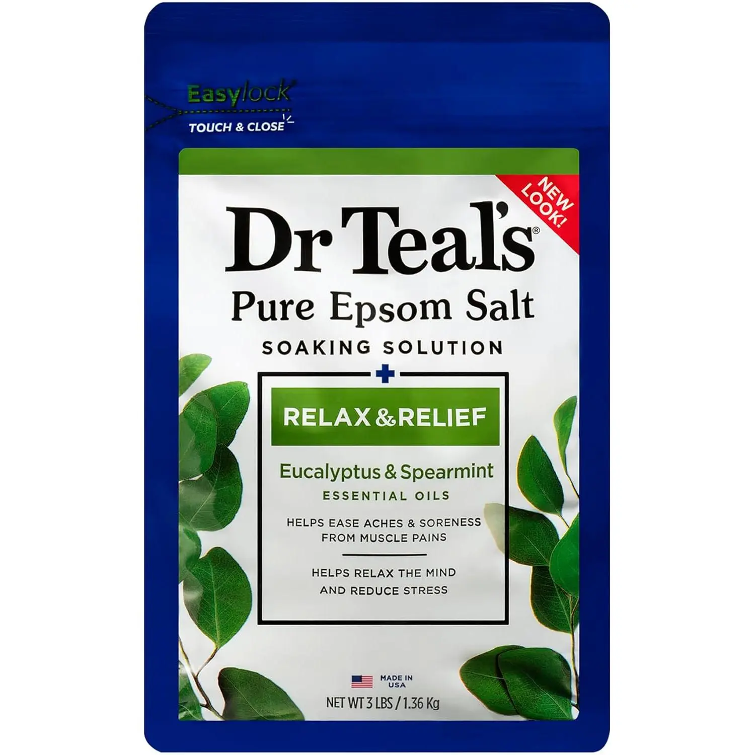 Dr Teal's Epsom Salt Magnesium Soak, Relax & Relief with Eucalyptus & Spearmint Essential Oils, 3 lbs