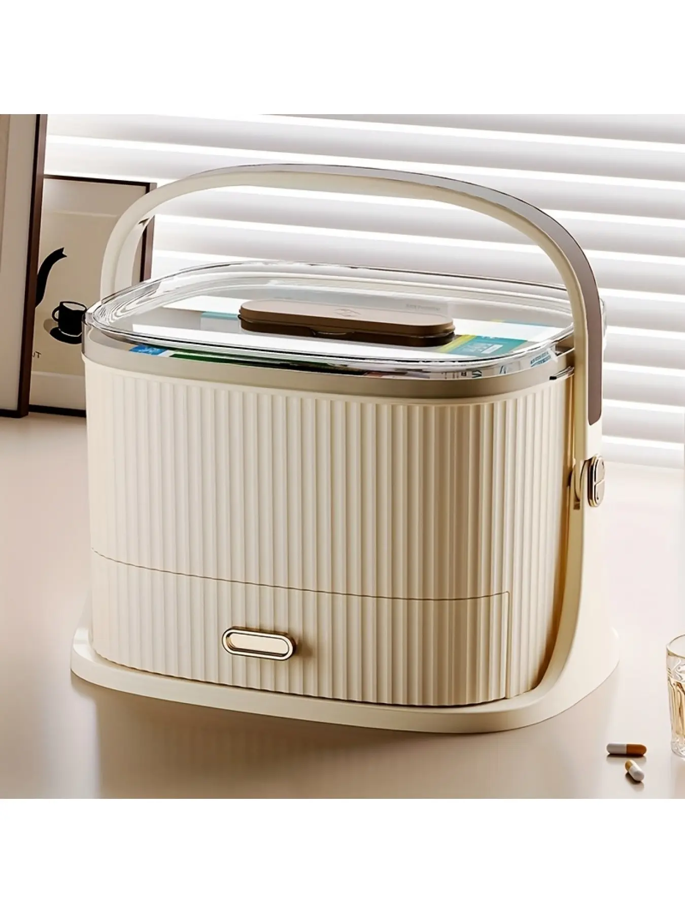 50-Hole Design Large Waterproof Shower & Bathroom Storage Basket with Handle, Durable Organizer Rack, Drainage, Sand Proof & Waterproof, Beige Green, Portable Storage Shelf