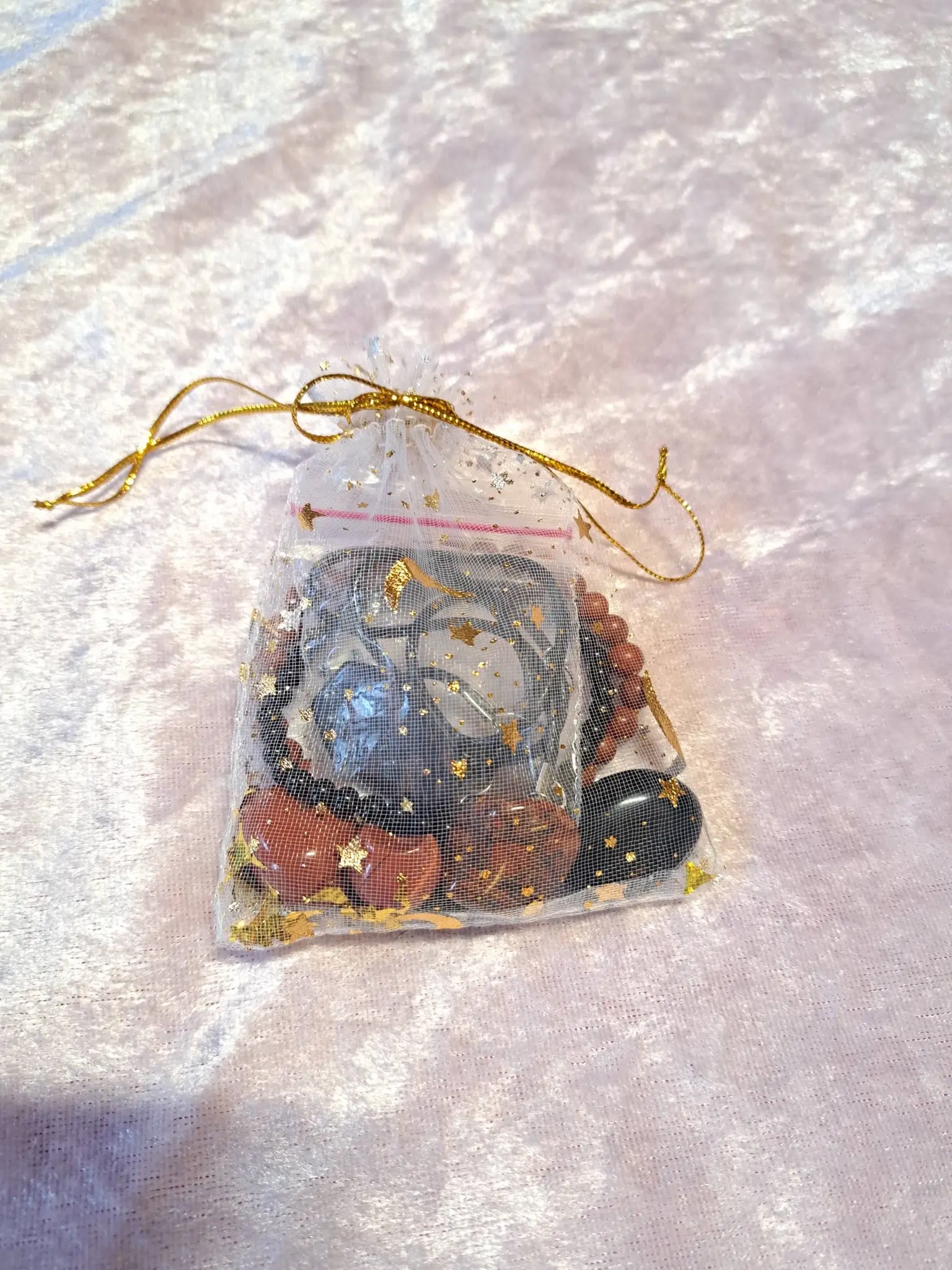 How to Use: Wear the jewelry as your "personal shield" throughout the day. Place the Jasper Moon and Obsidian tumbles on your desk or by your front door to maintain a grounded, protected atmosphere in your home.