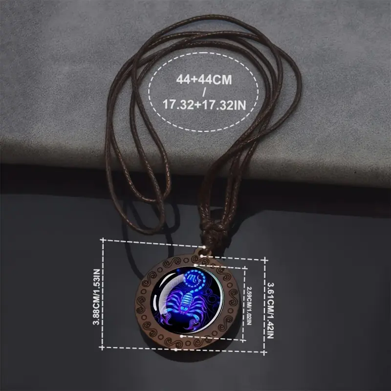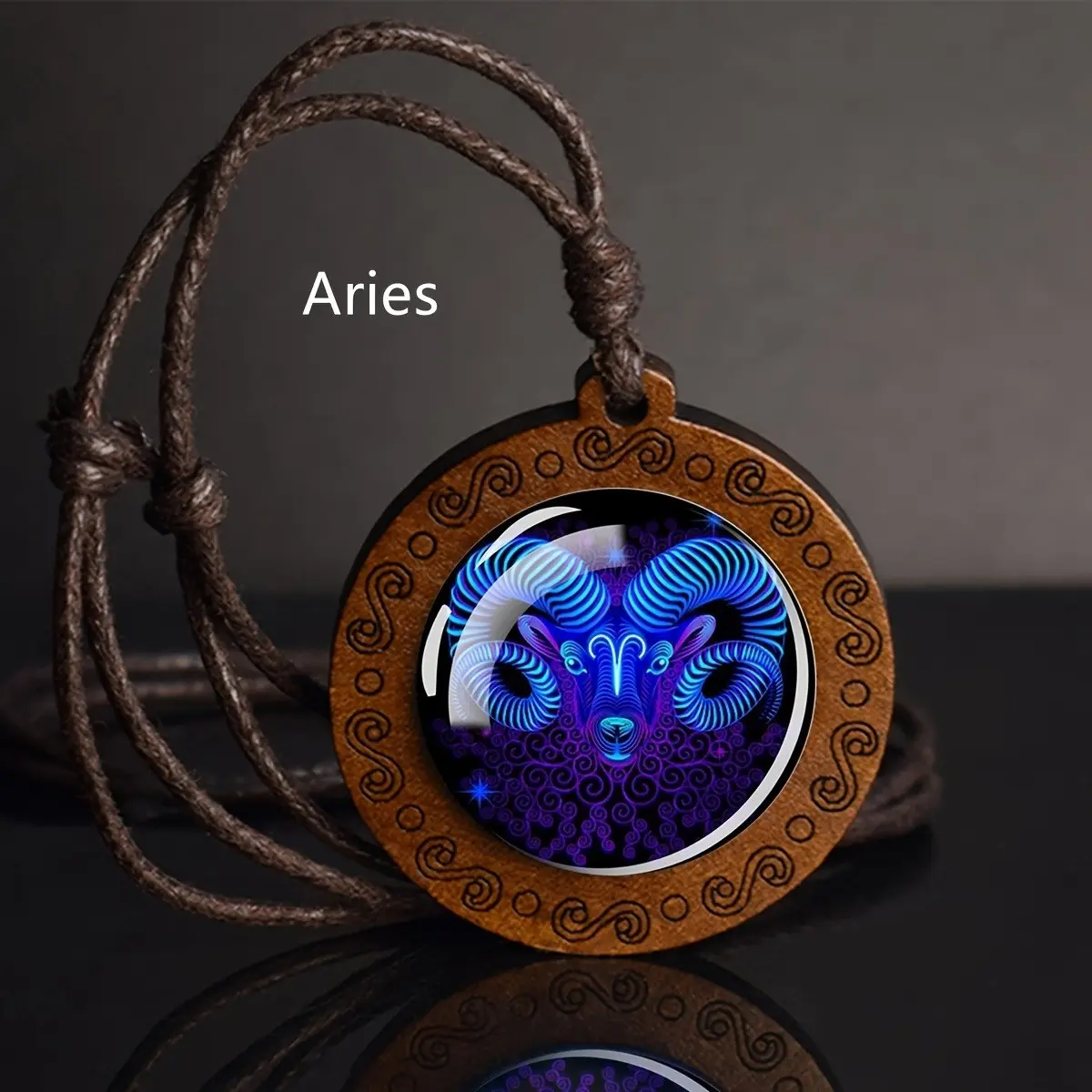 1pc Zodiac Signs Rope Chain Necklace Libra Scorpio Sagittarius Capricorn Aquarius Pisces Necklace Infinity Symbol Wood Pendant