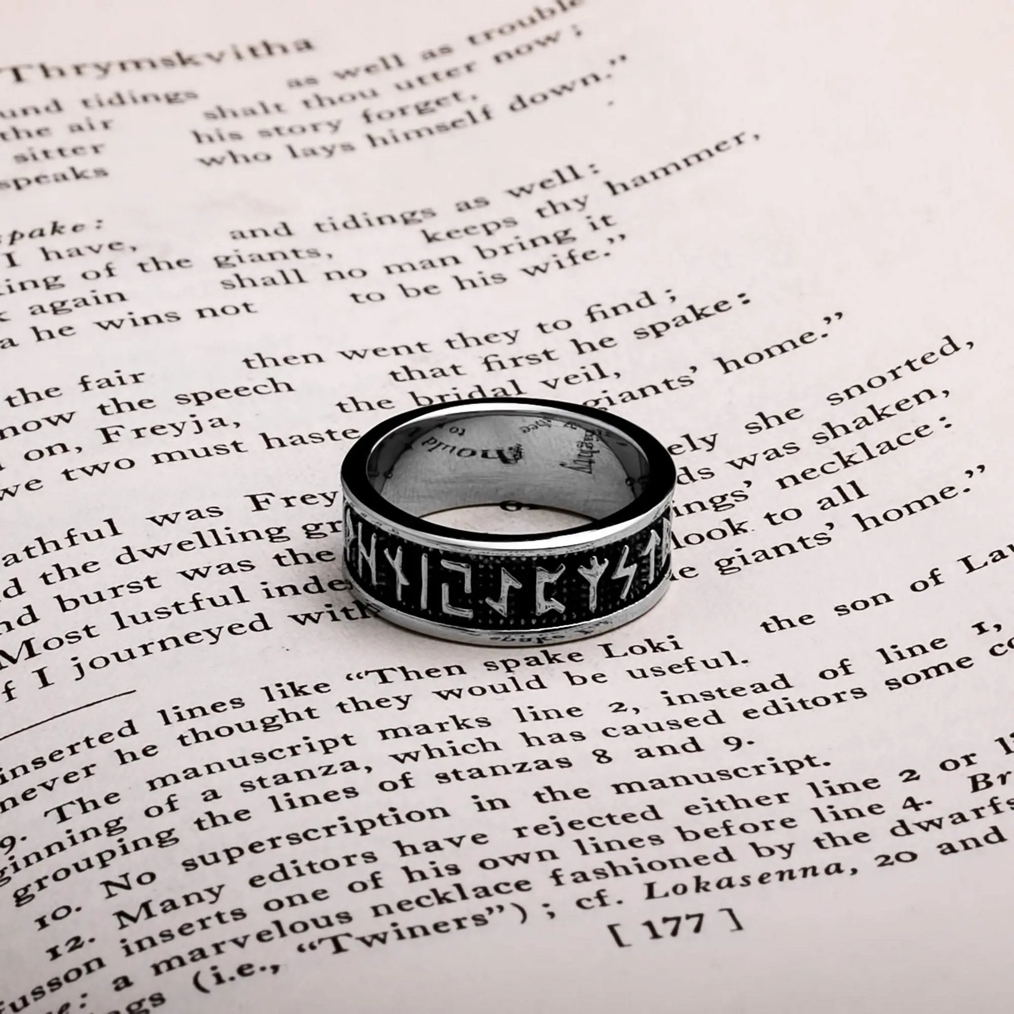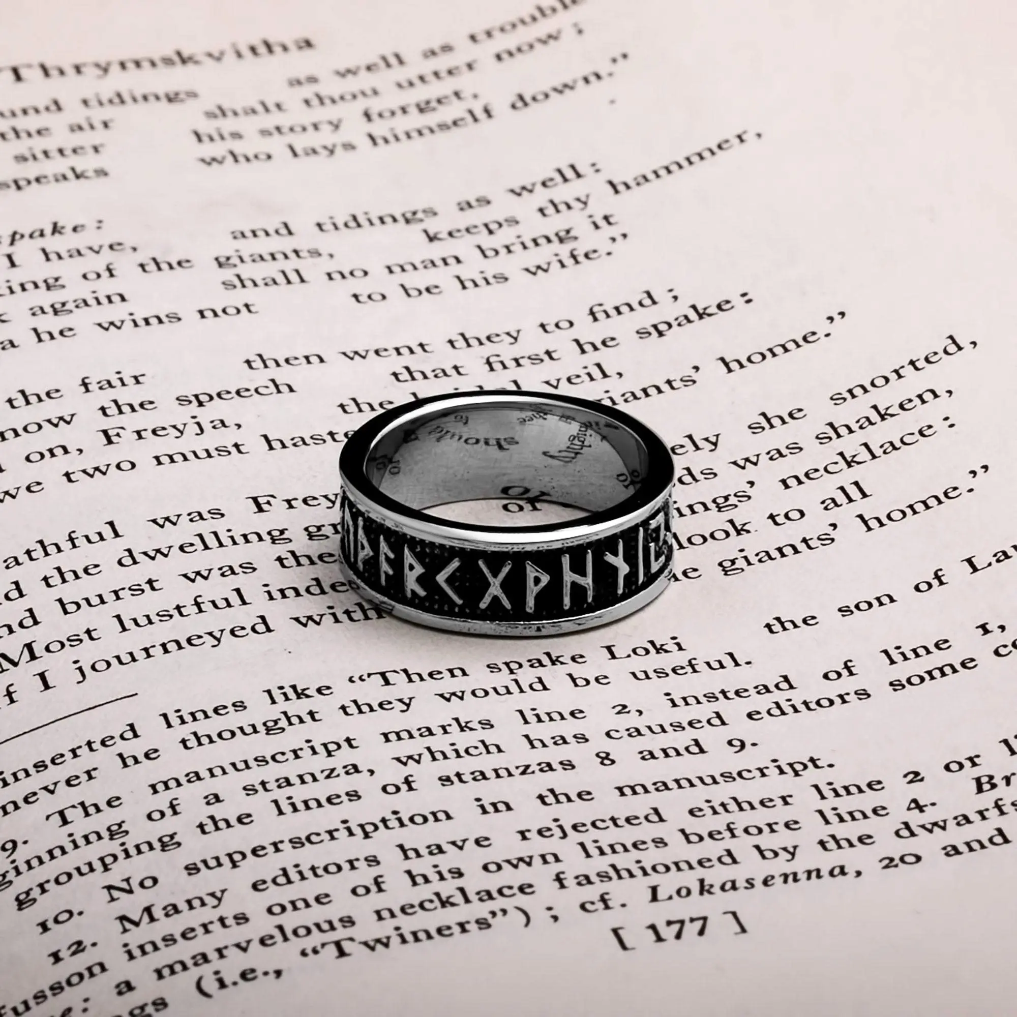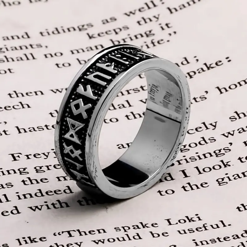 Viking Elder Futhark Rune Ring 8mm Band 316L Stainless Steel