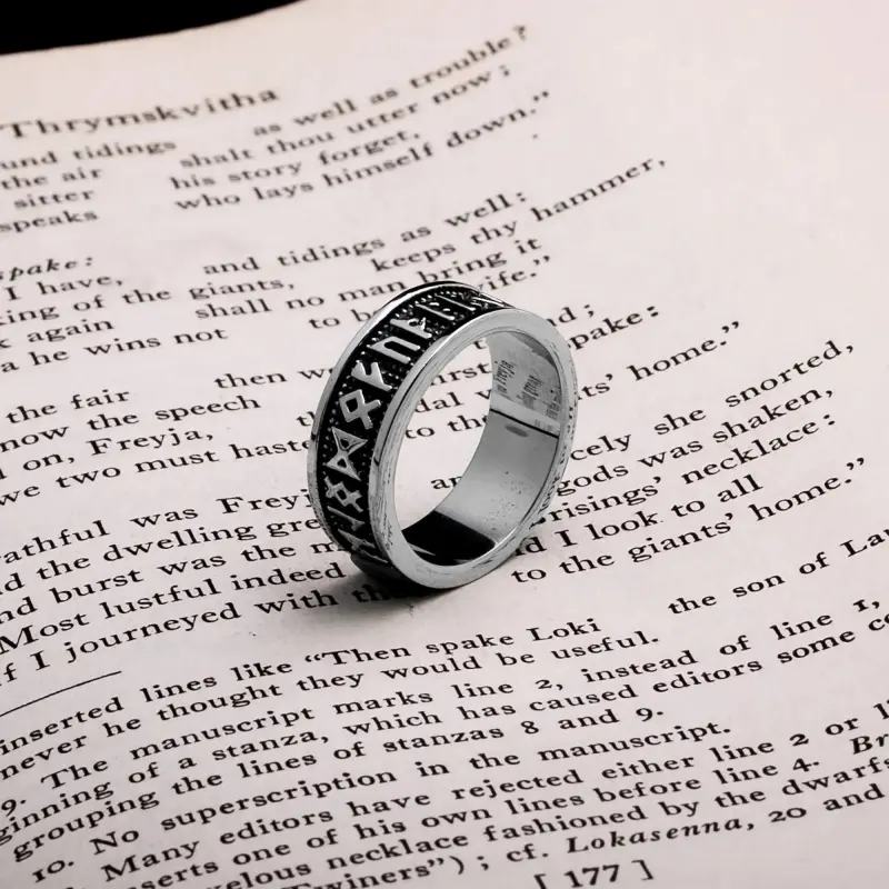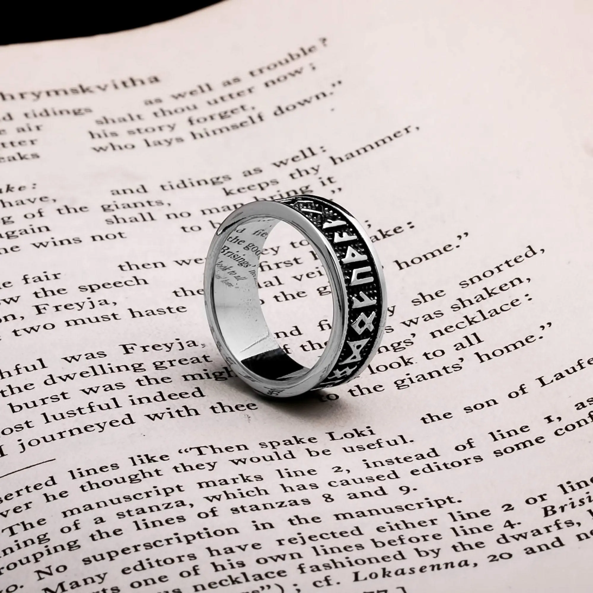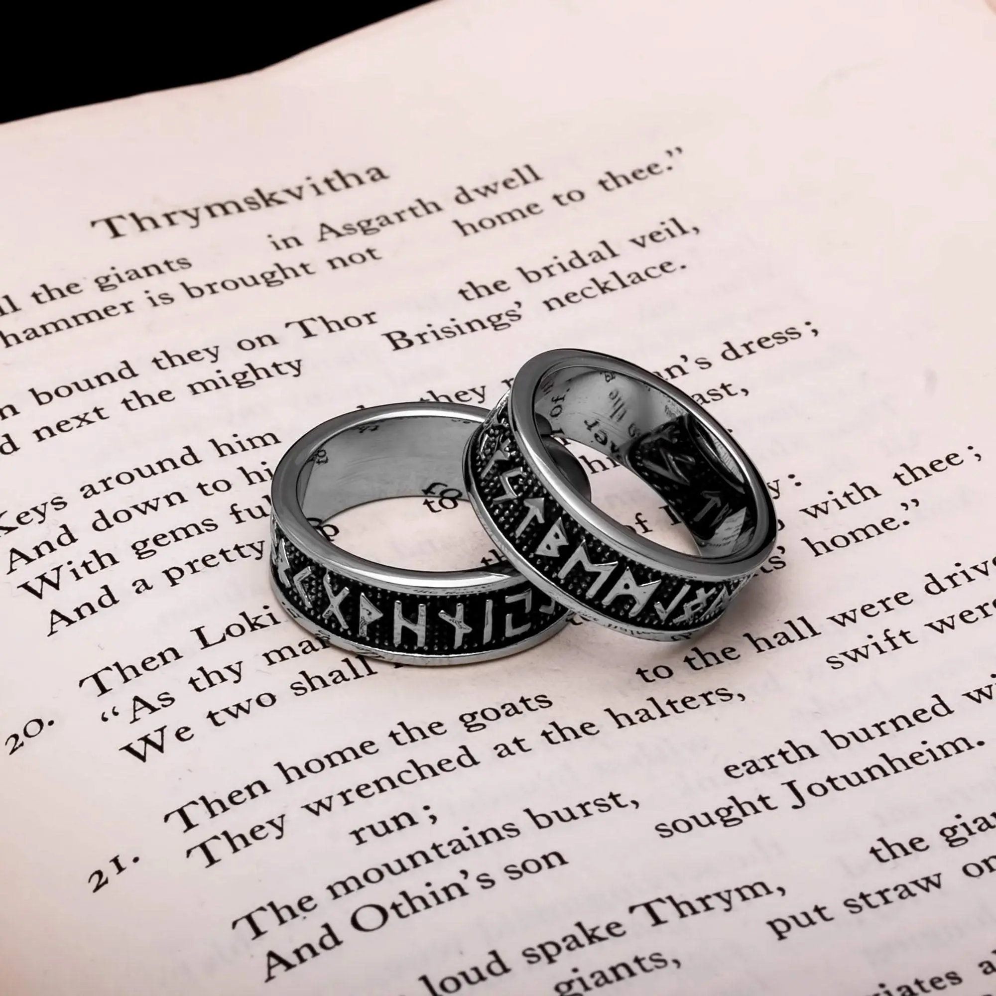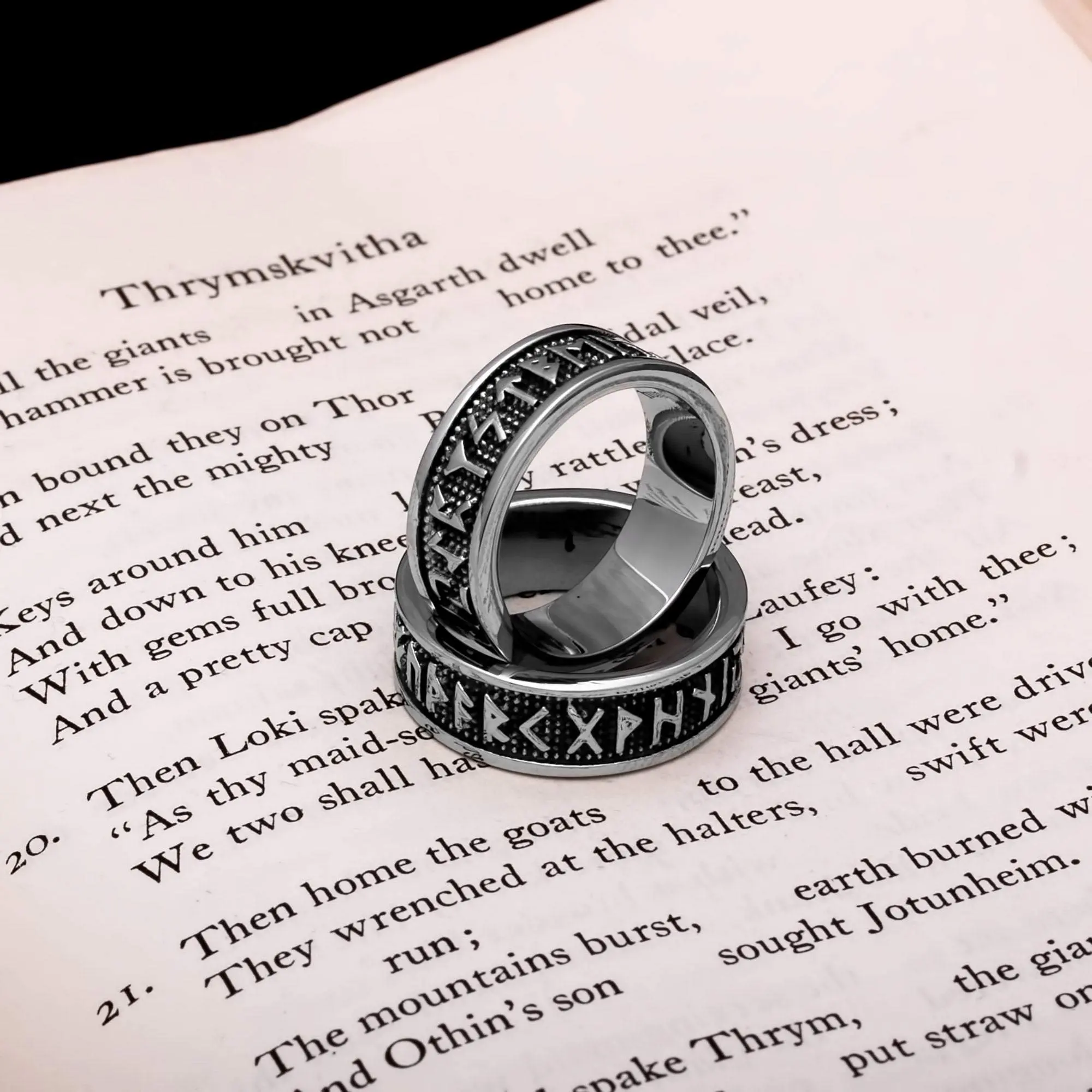 Viking Elder Futhark Rune Ring 8mm Band 316L Stainless Steel