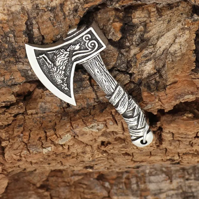 A Necklace with A Pendant Of A Manly Axe-wolf.