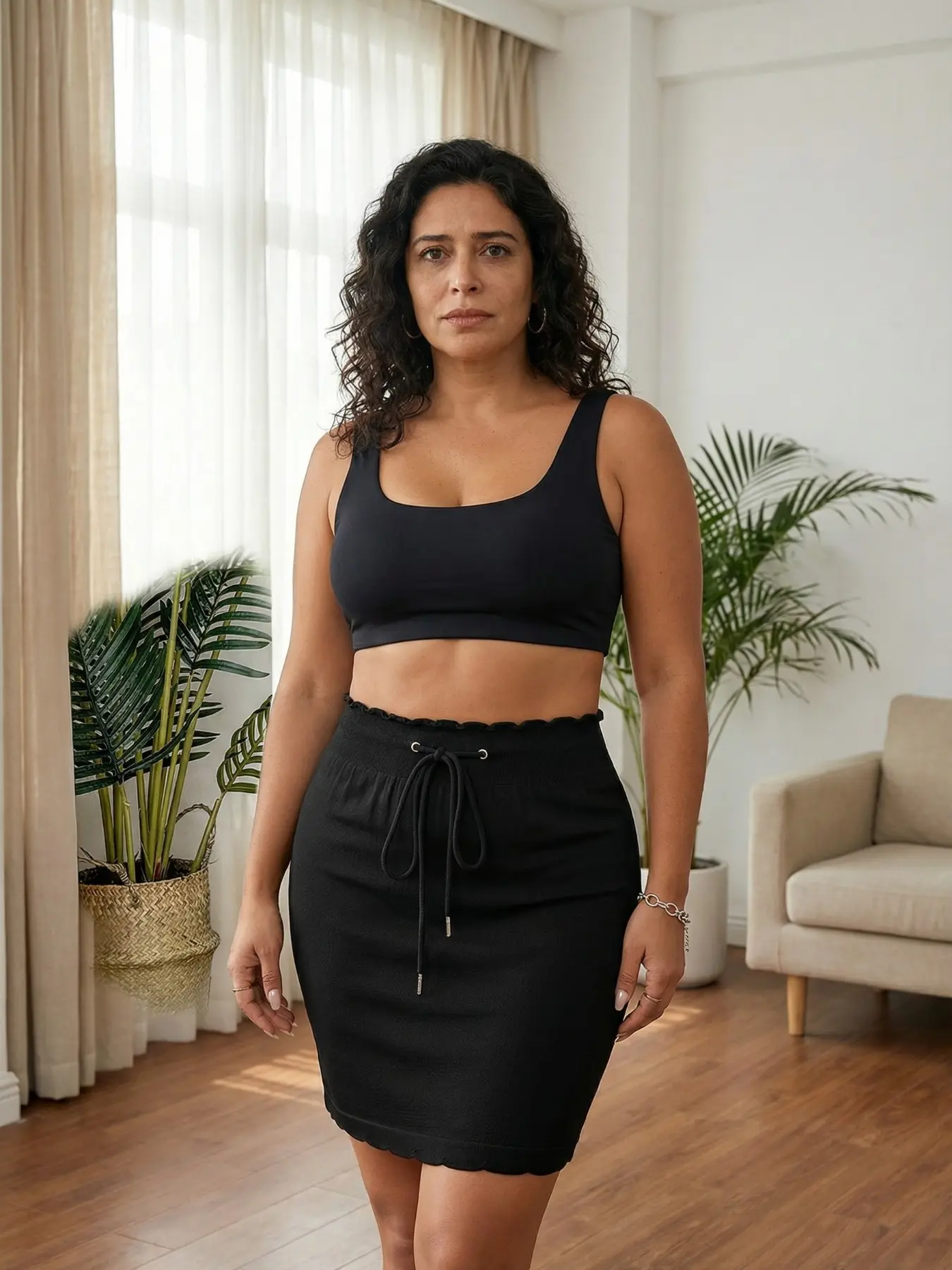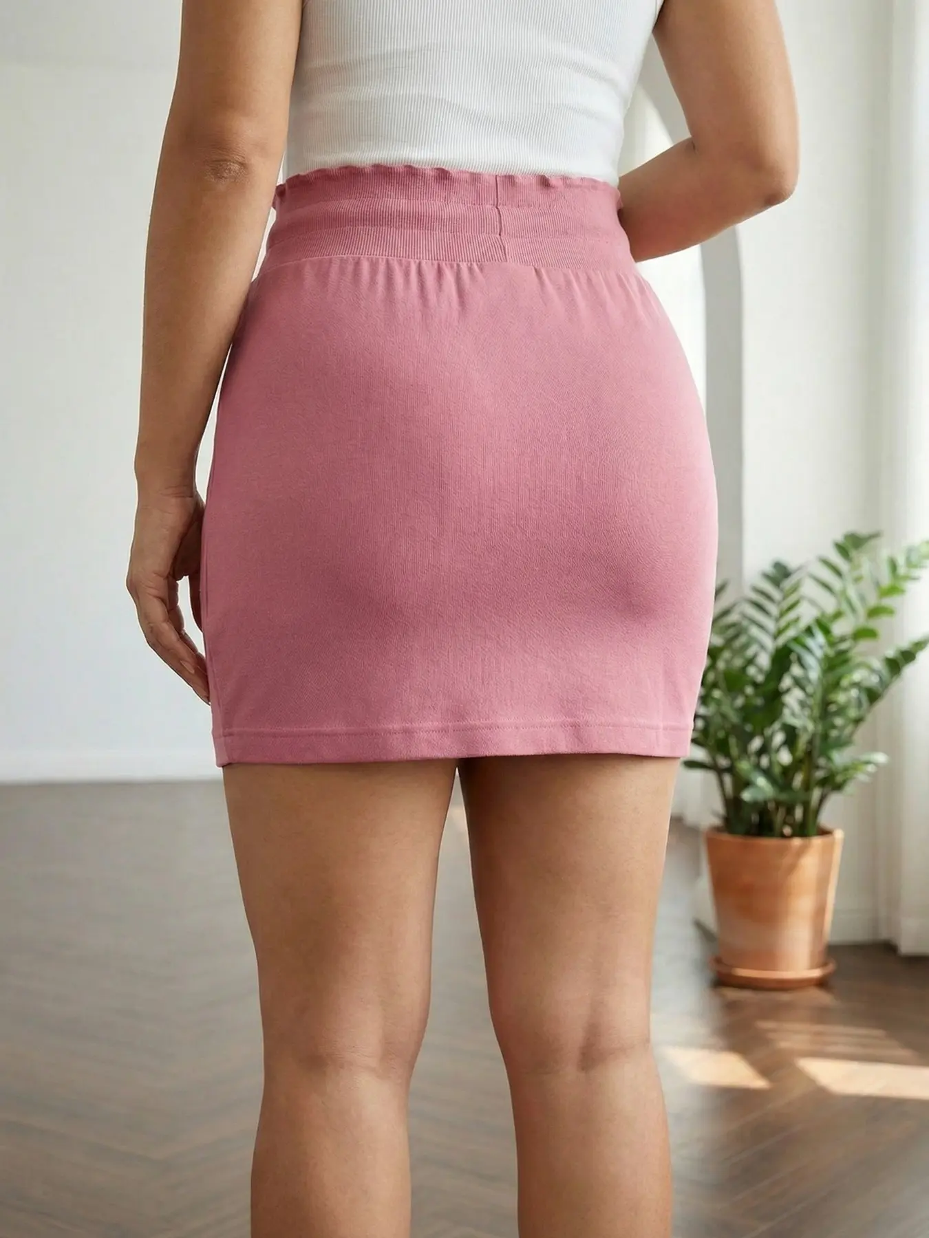 Women's High Waist Drawstring Ruffled Hem Bodycon Skirt (Sizes S-XL) with Safety Shorts – Stretchy Slim Fit Knee-length Skirt – Suitable for Daily, Commute & Date Occasions