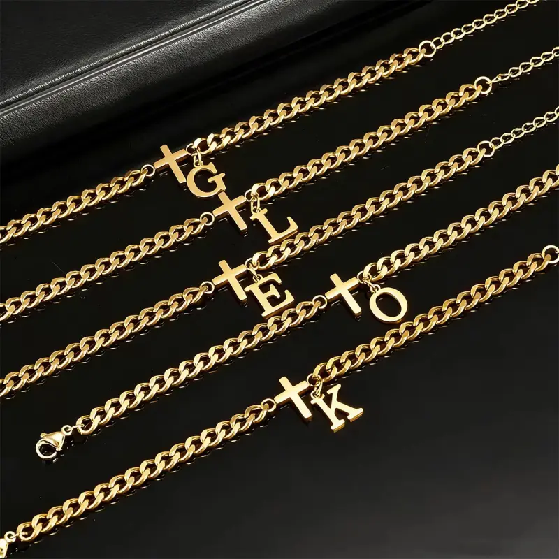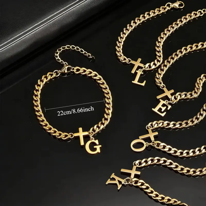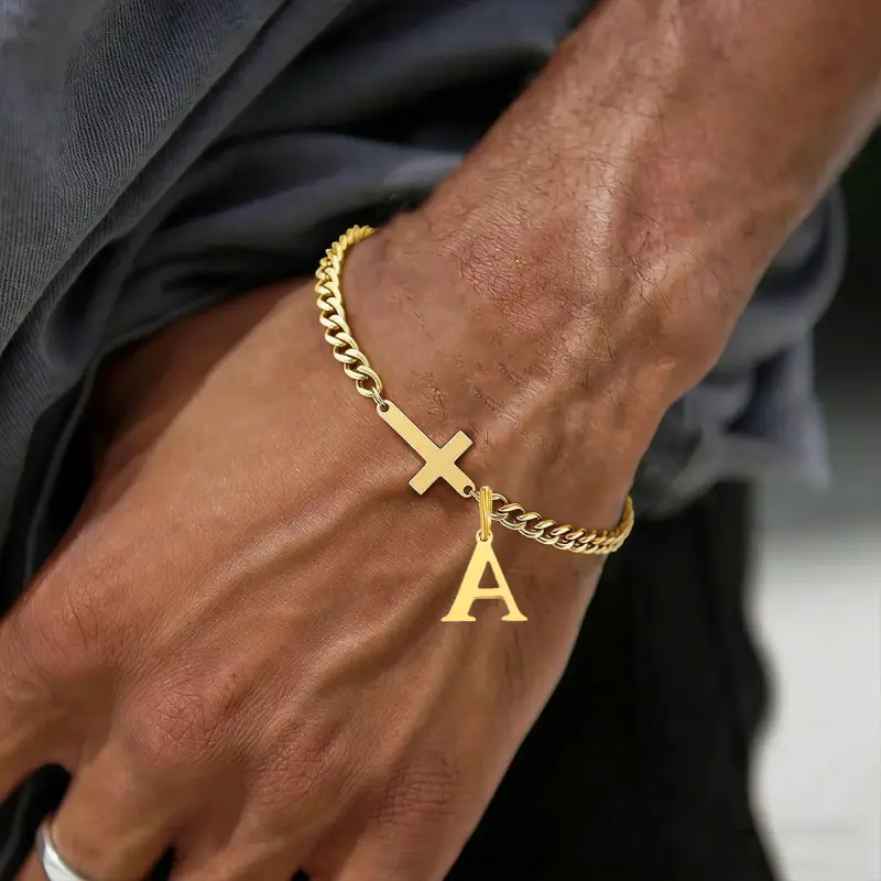 1pc Men's Cross Letter Bracelet, Stainless Steel, 26 Initials A H L E C G J K L M R S Z, Pendant Bracelet, Waterproof, Anti-oxidant, Suitable for Parties, Birthdays, and Events