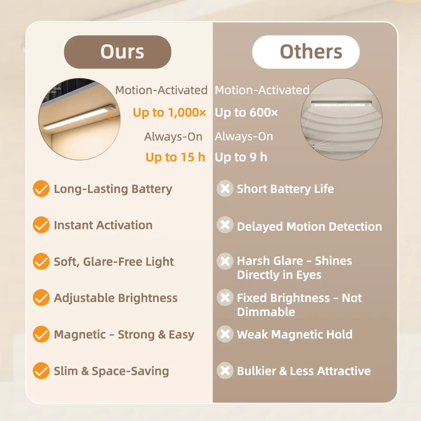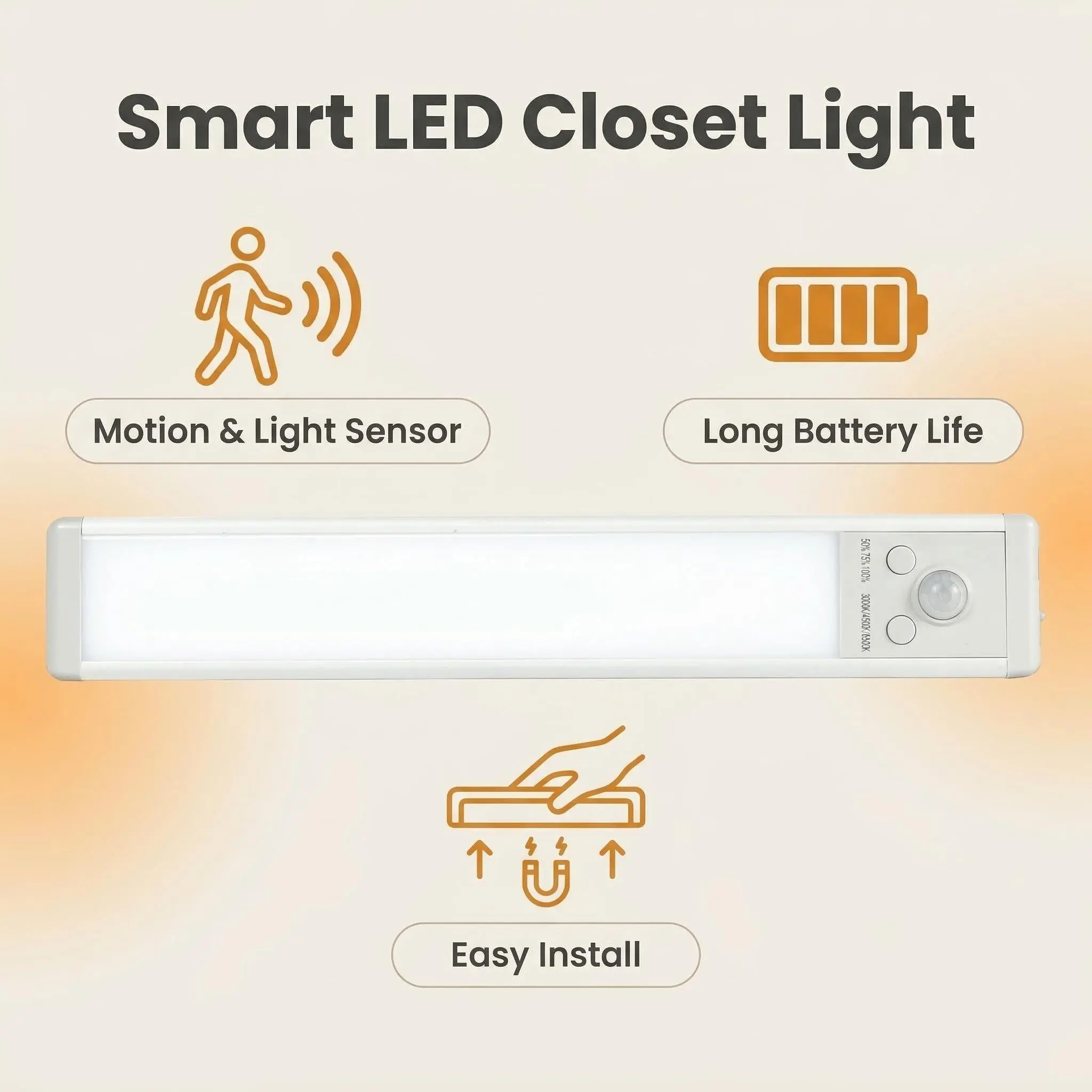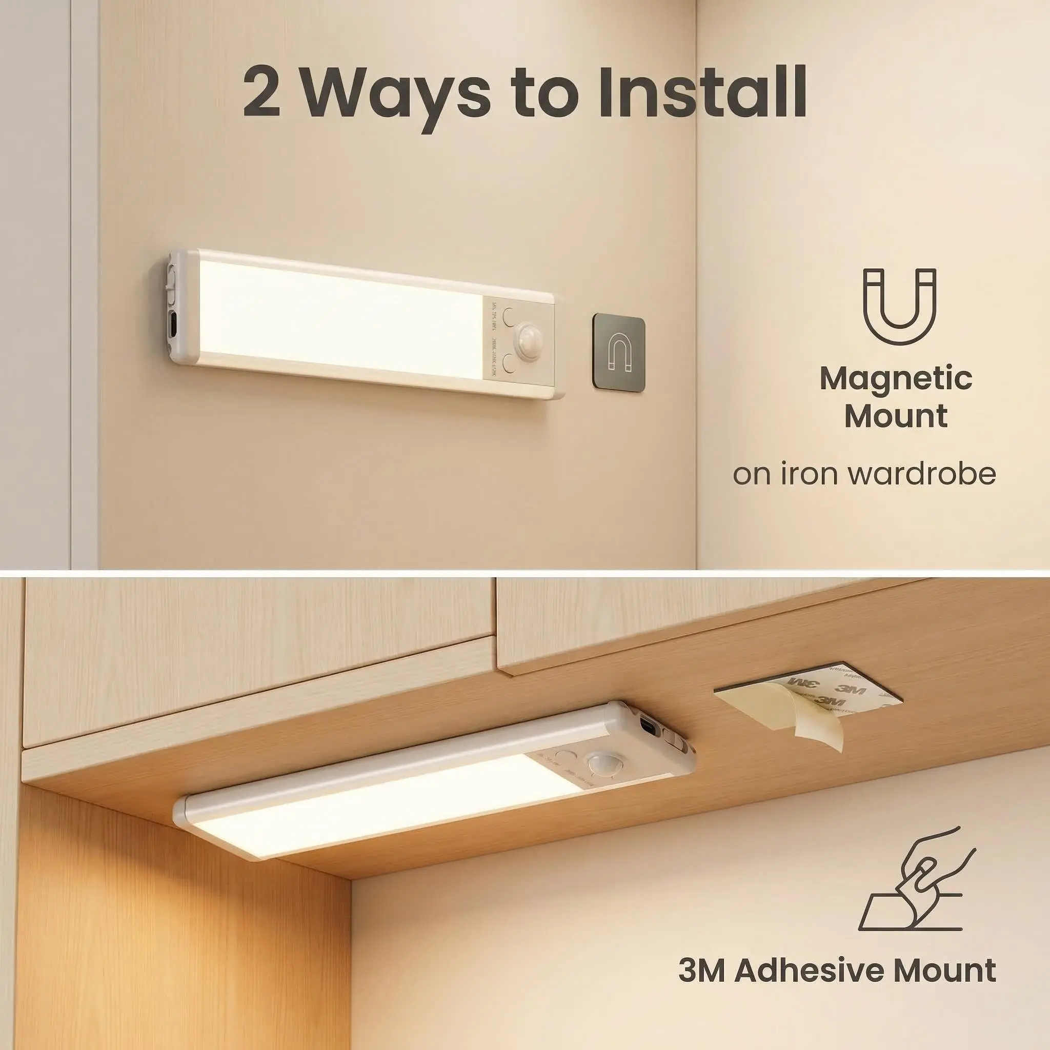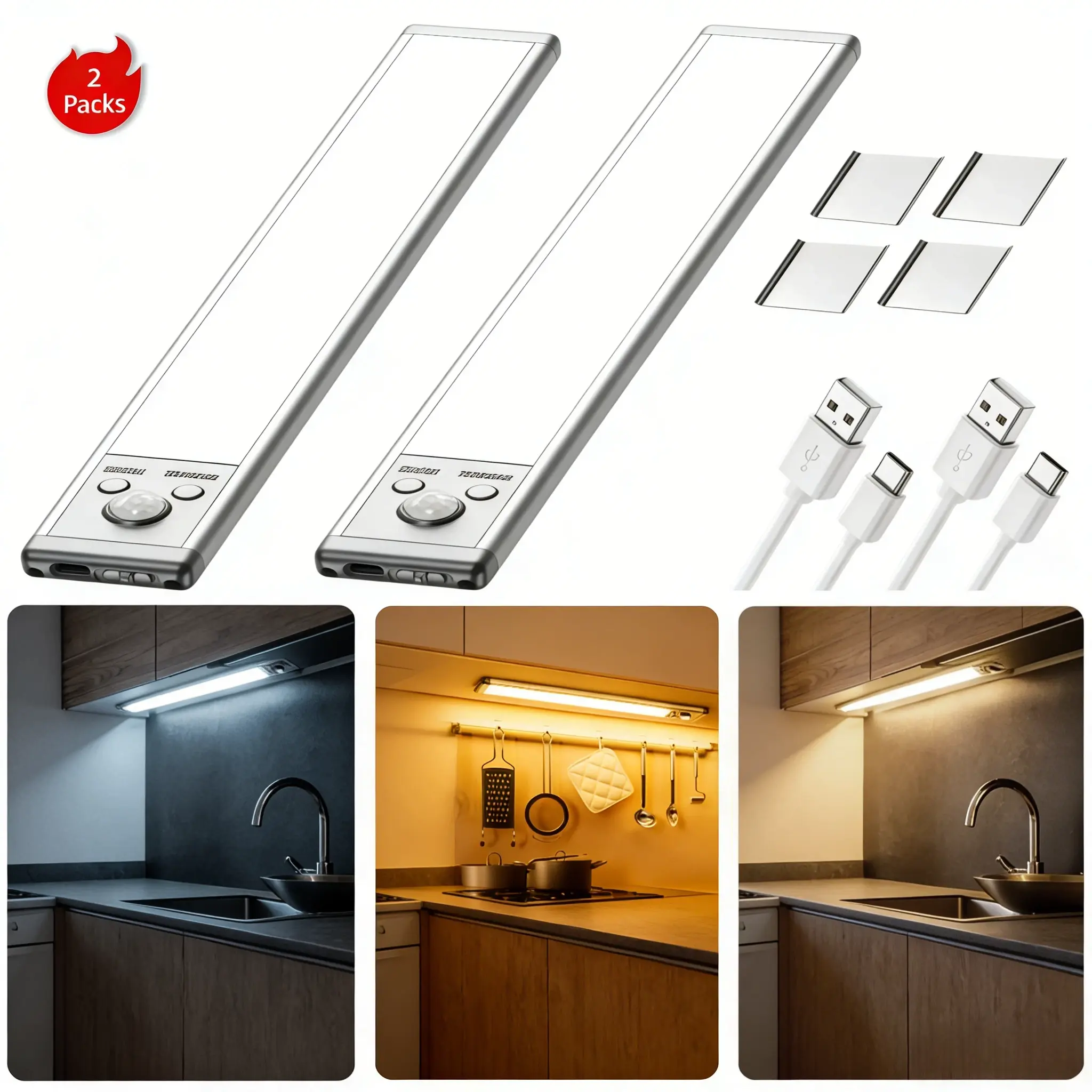 2-Pack Motion Sensor Light, Rechargeable LED Night Light with Magnetic Mount, Auto On/Off, Ultra-Thin for Closet Hallway Bathroom Stairs Kitchen, Upgraded