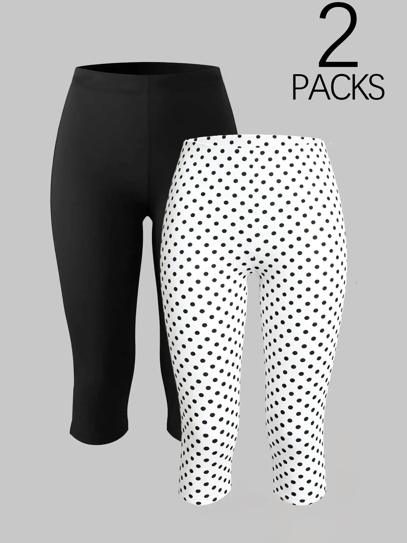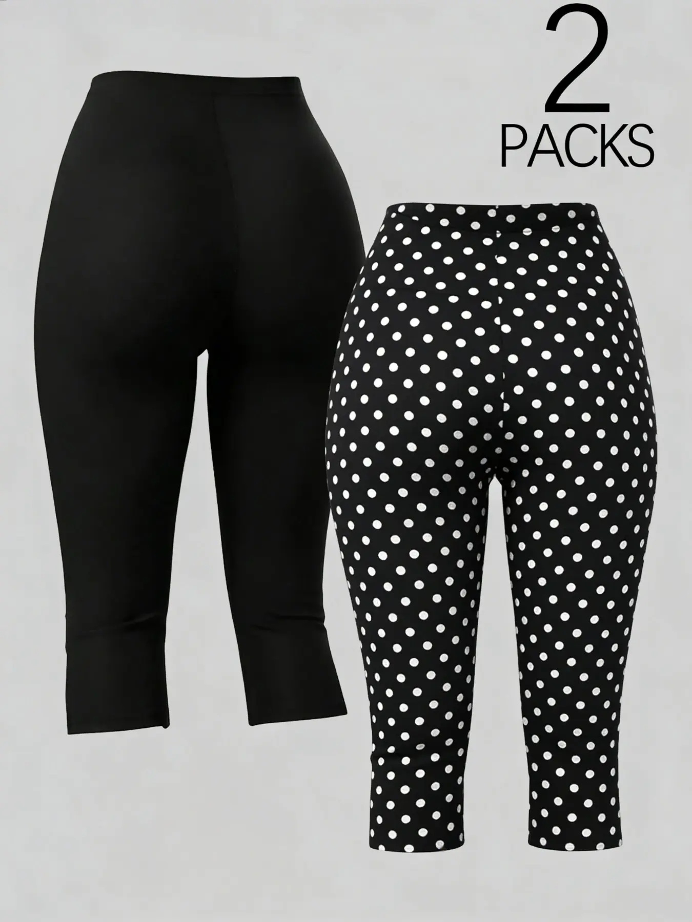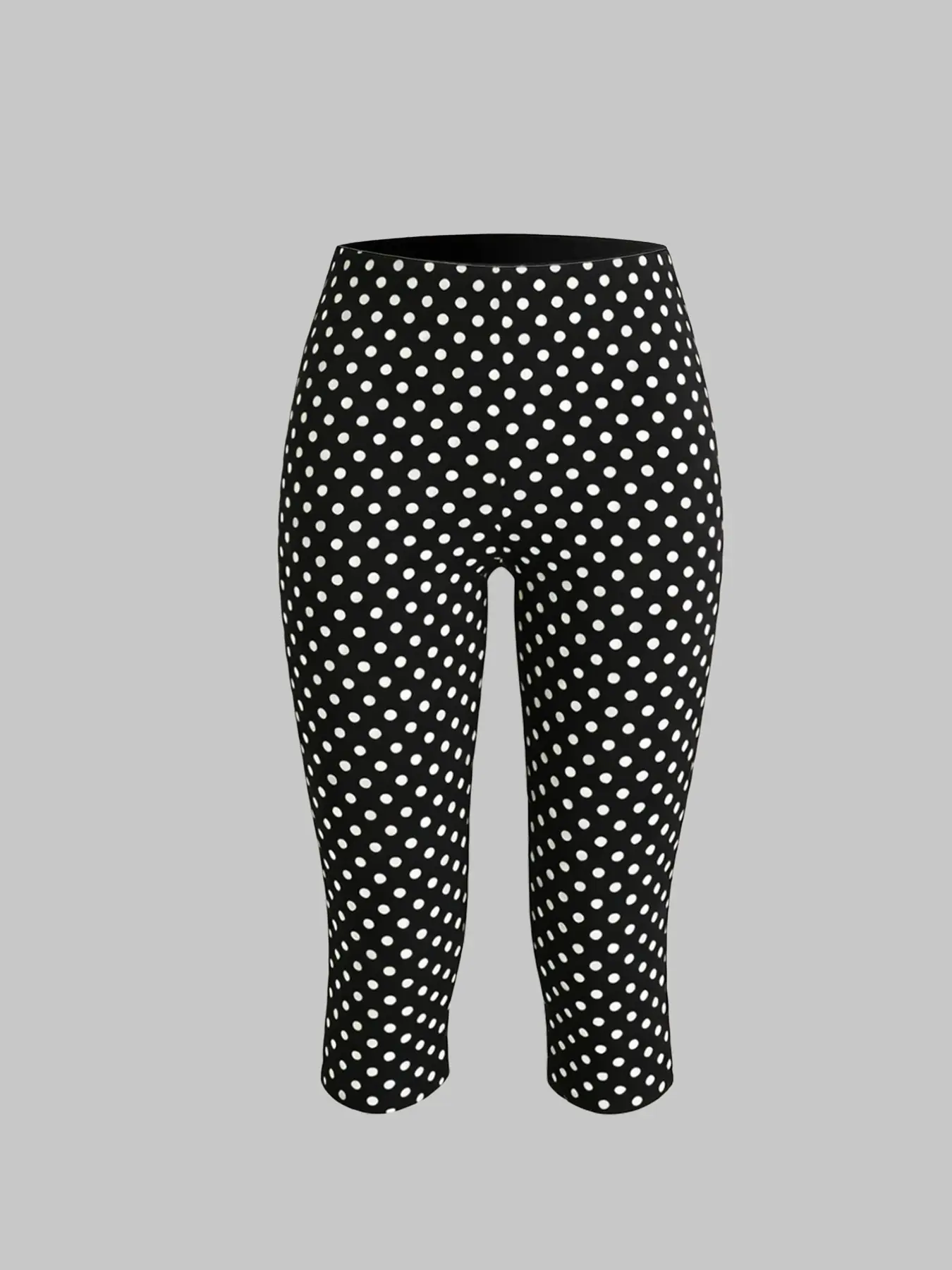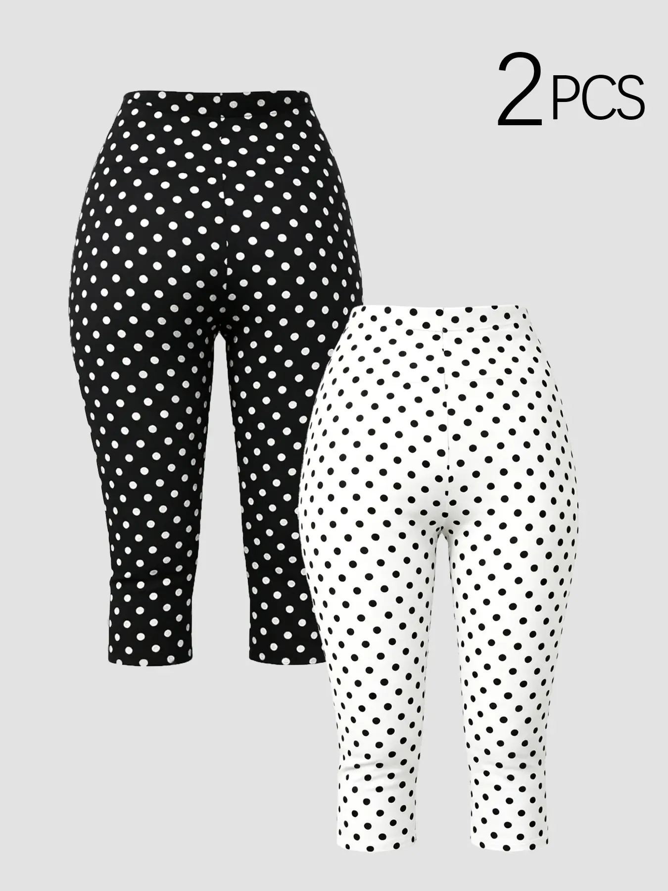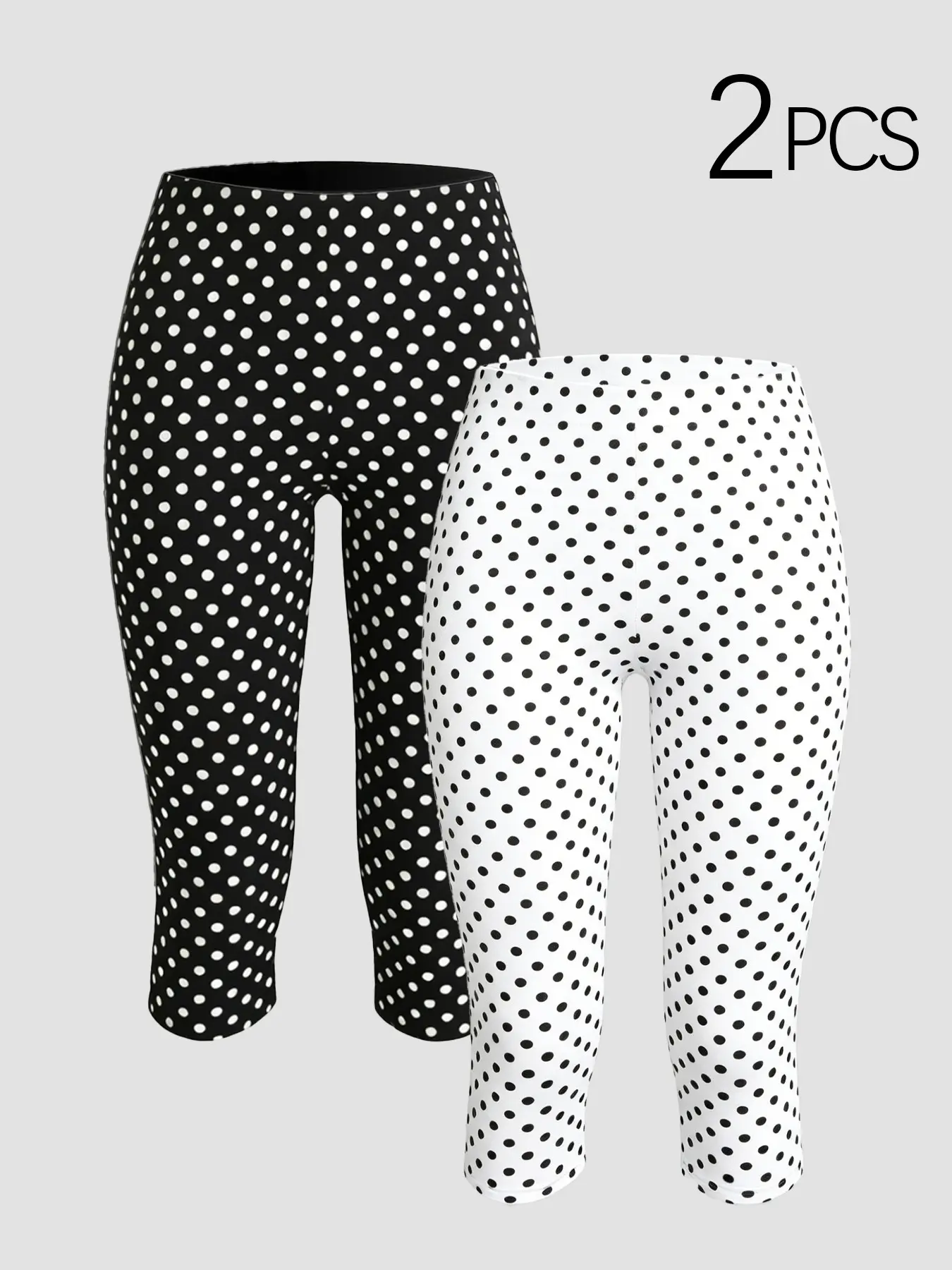 2pcs Women's High-Waisted Polka Dot Capri Pants, Slim-Fitting Knee-Length, Ideal for Parties, Nightclubs, and Streetwear