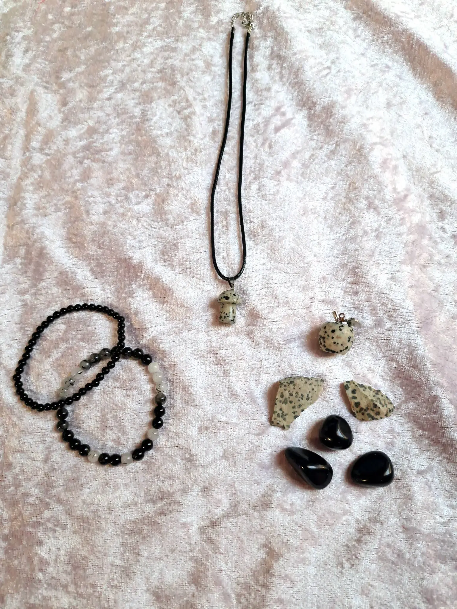 If you’ve been feeling a bit scattered or "up in the air," this 9-piece collection is your personal anchor. We’ve combined the playful, grounding energy of Dalmatian Jasper with the powerful protection of Obsidian, Smoky Quartz, and Black Tourmaline.