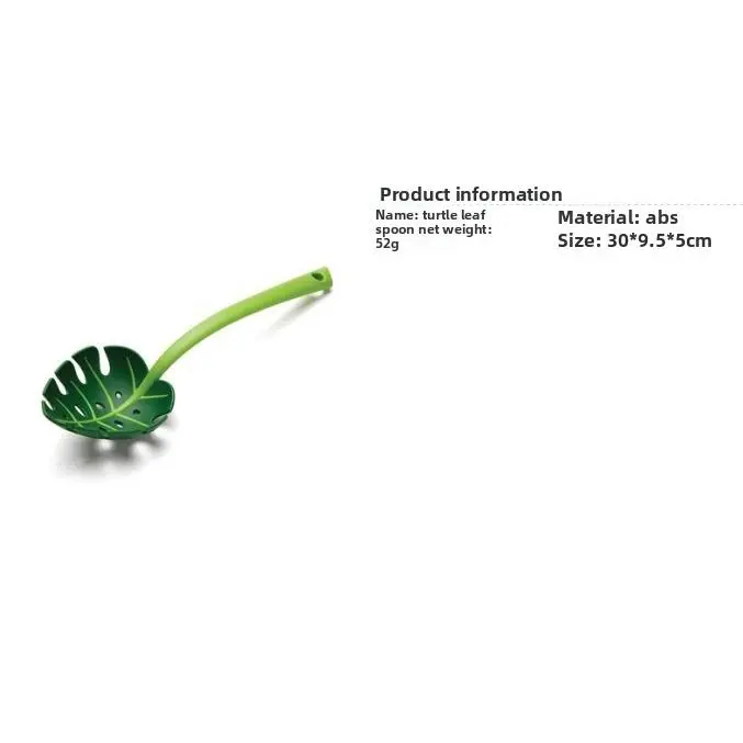 ·Name: Leaf SpoonMaterial: AbsNet weight: 53gOrigin: YiwuPackaging: Hanging tagIncluding packaging: 61.8gPacking: 200 piecesBox dimensions: 45*40*30cmPackaging: 13kgColor: GreenDimensions: 30*9.5*4.5cm