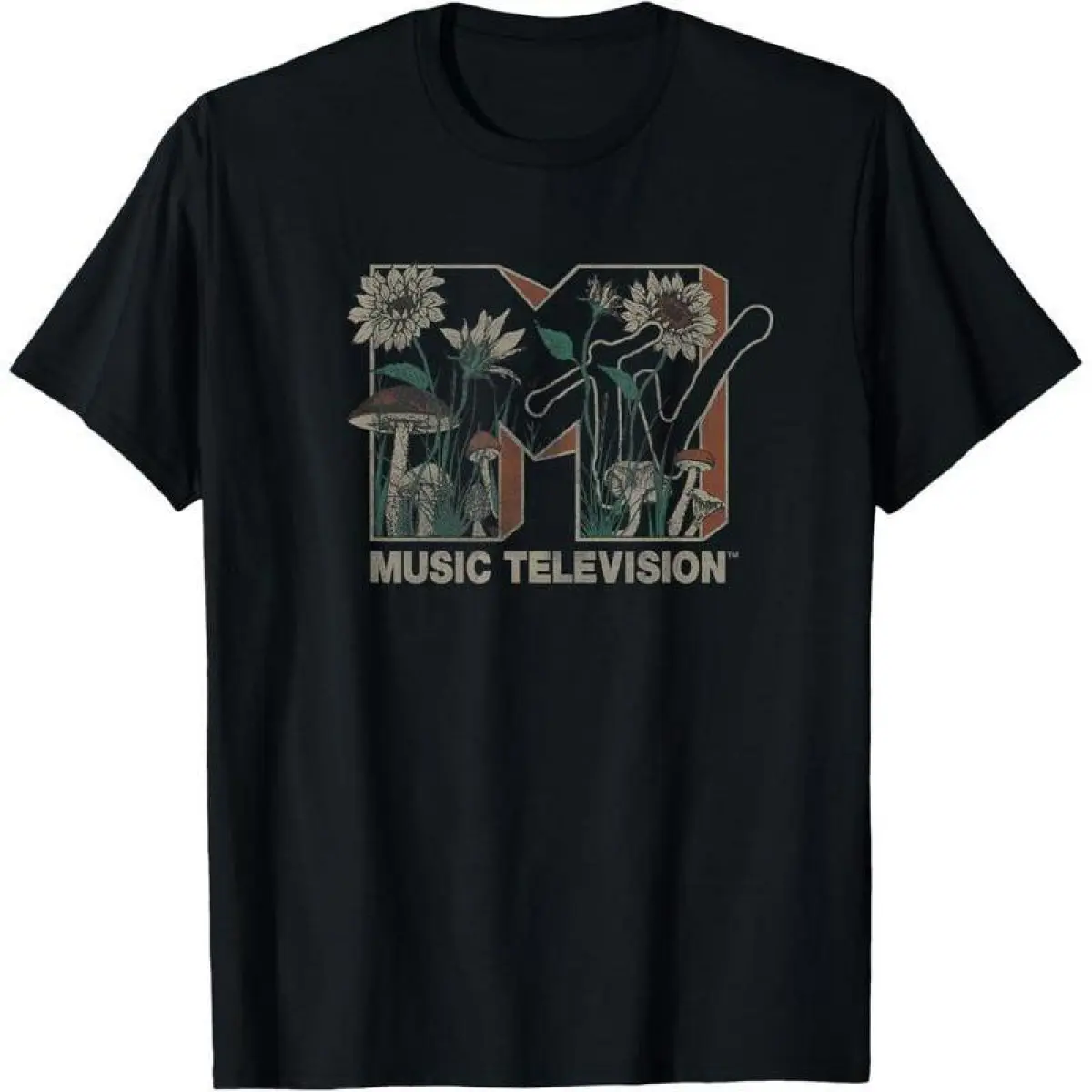 5. MTV Music Television Wild Flower Mushrooms MTV Logo T-Shirt Unisex short sleeved T-shirt
