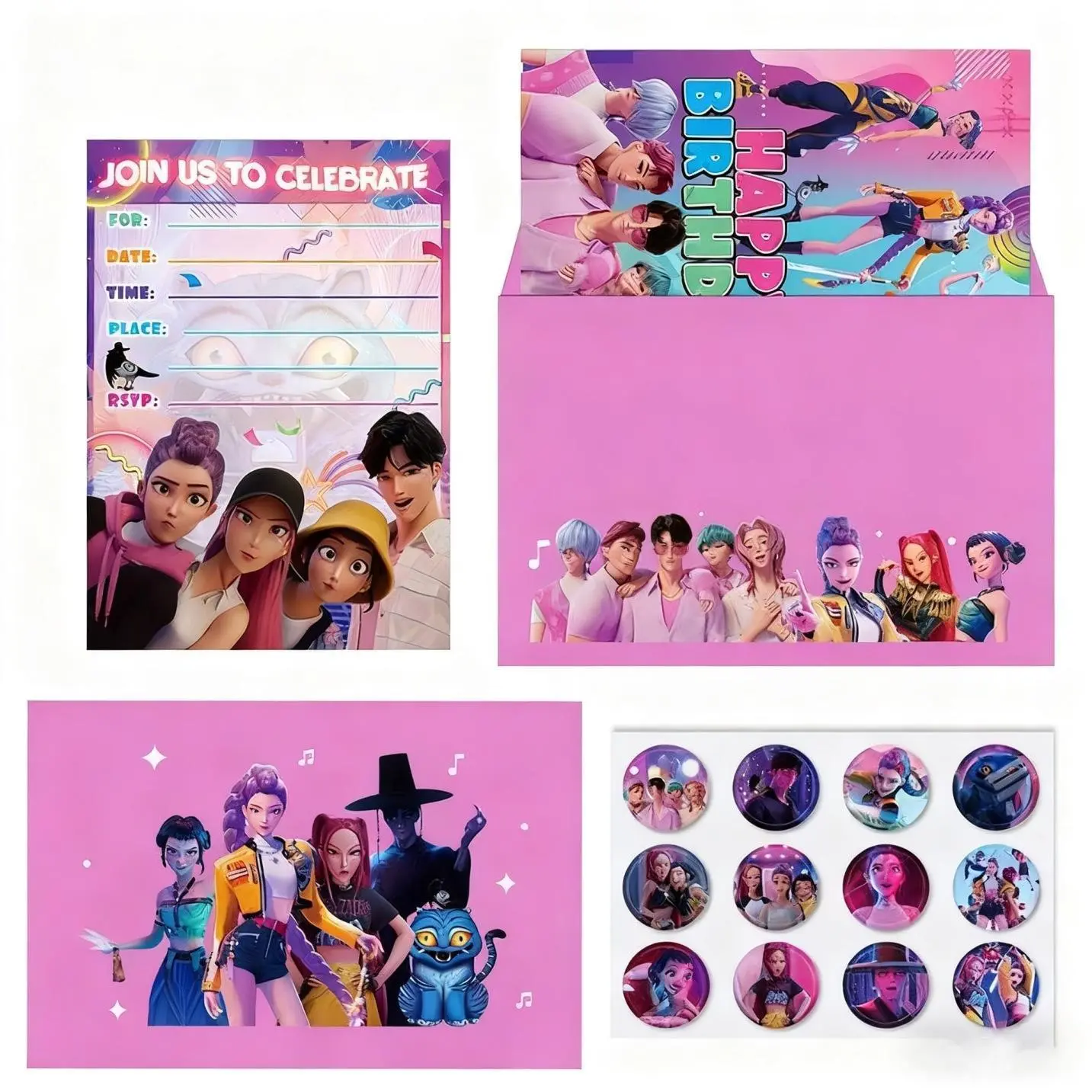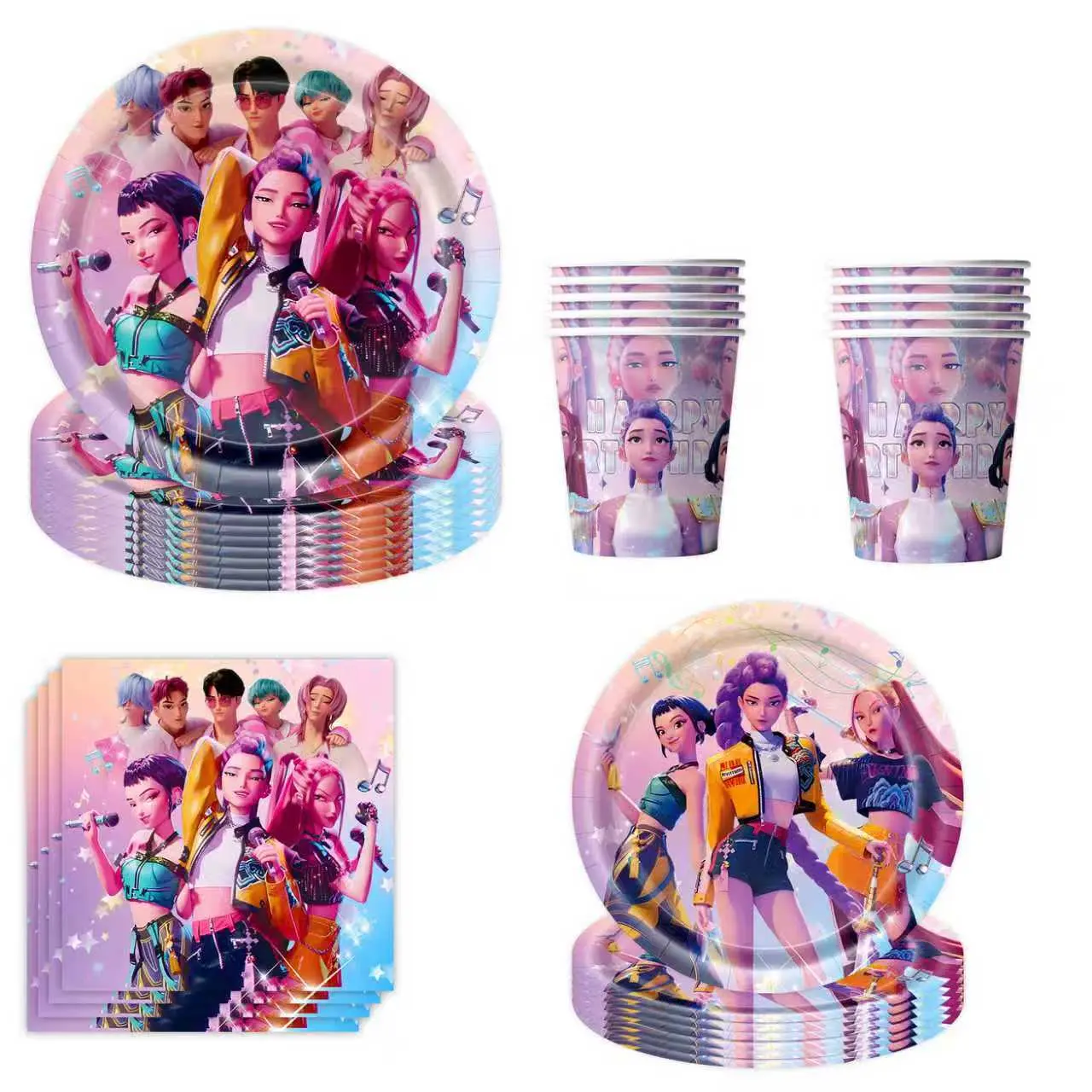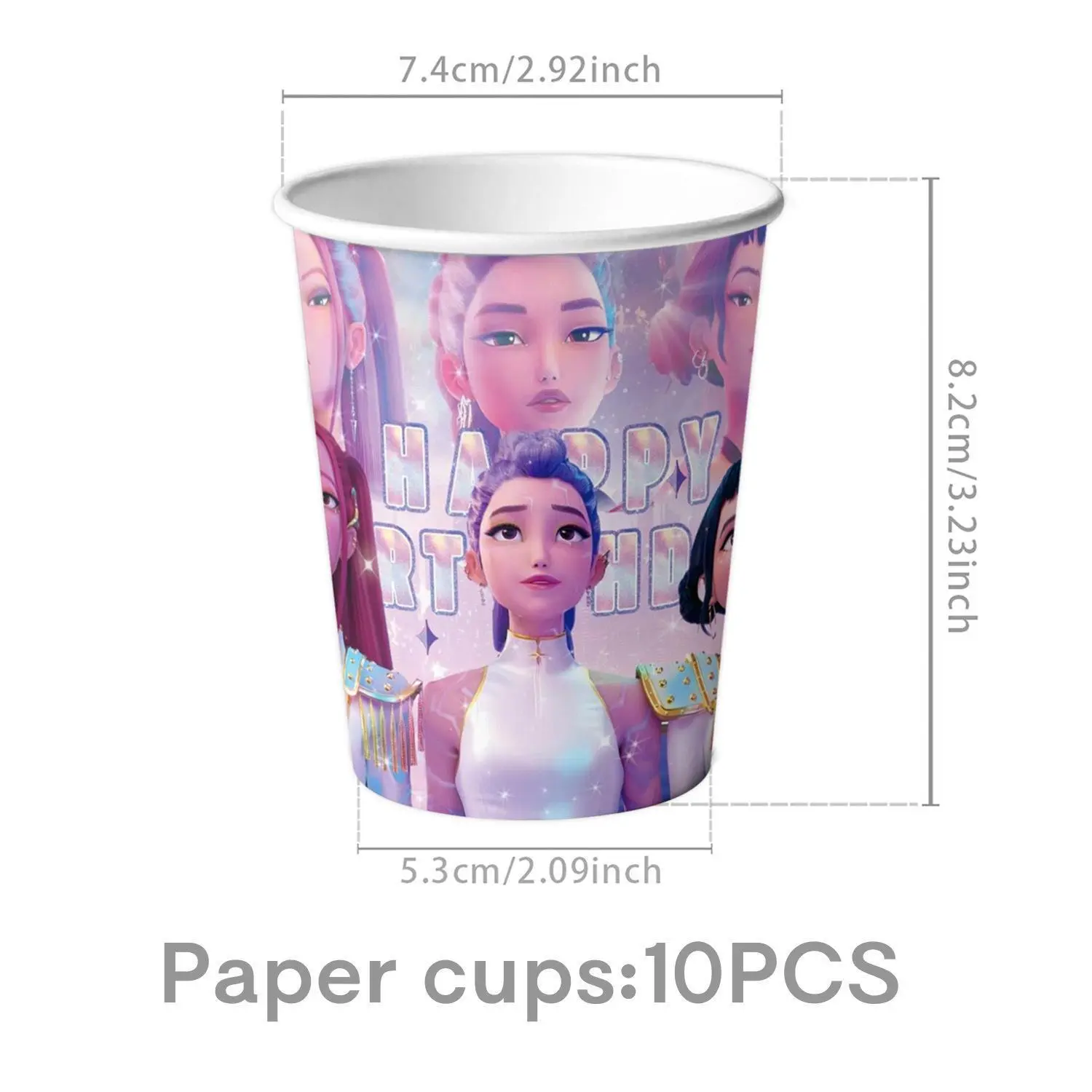 This product is perfect for birthdays, themed parties, or any event where a K-Pop Demon Hunters theme is desired. It's a comprehensive set for a memorable celebration. 🎉