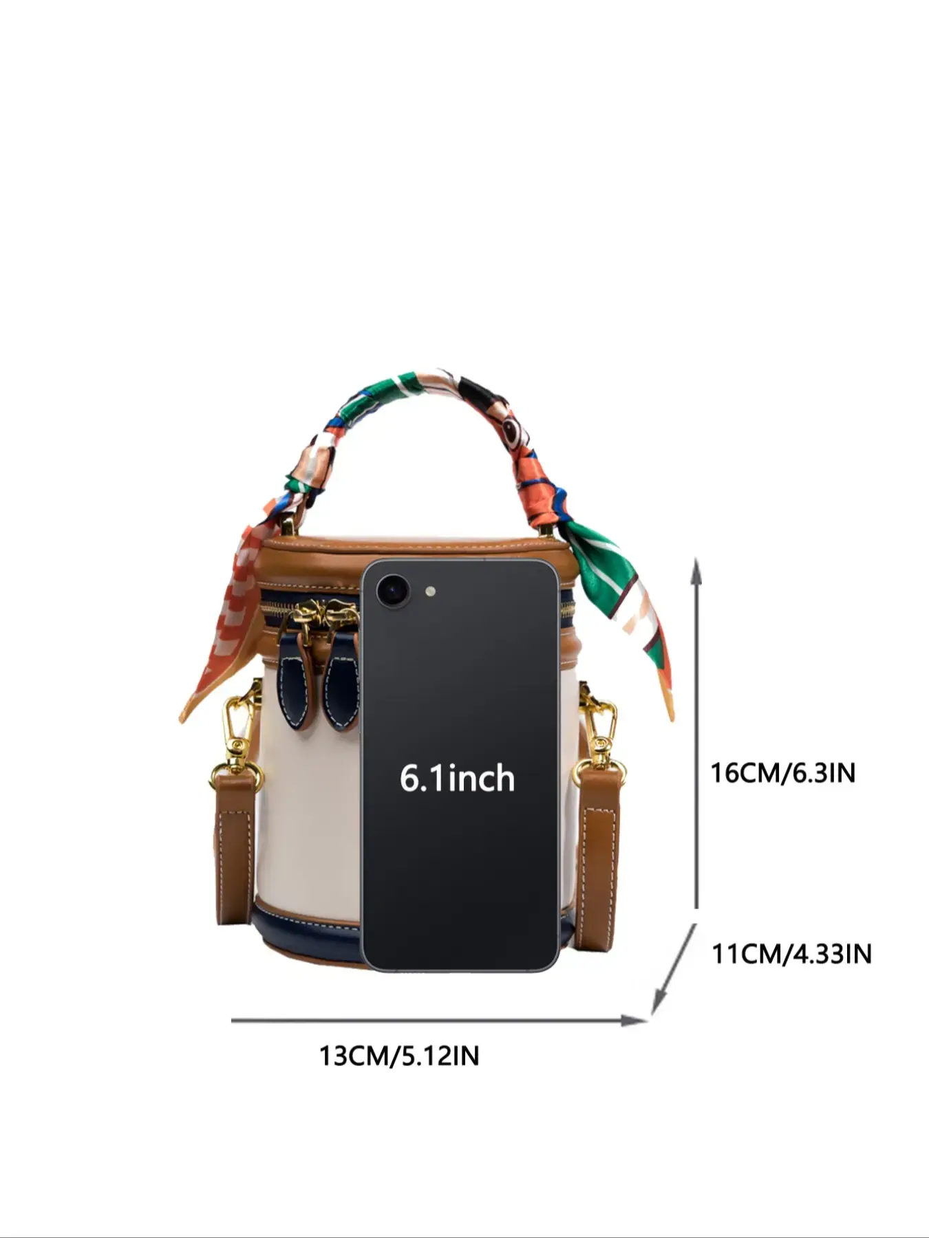 Fashion Colorblock Bucket Bag, Casual Pu Leather Zipper Crossbody Bag for Women, Casual Trendy Versatile High-quality Daily Commuting Bag, Girl Fashionable Shopping Bag, Fashionable Patterned Bag