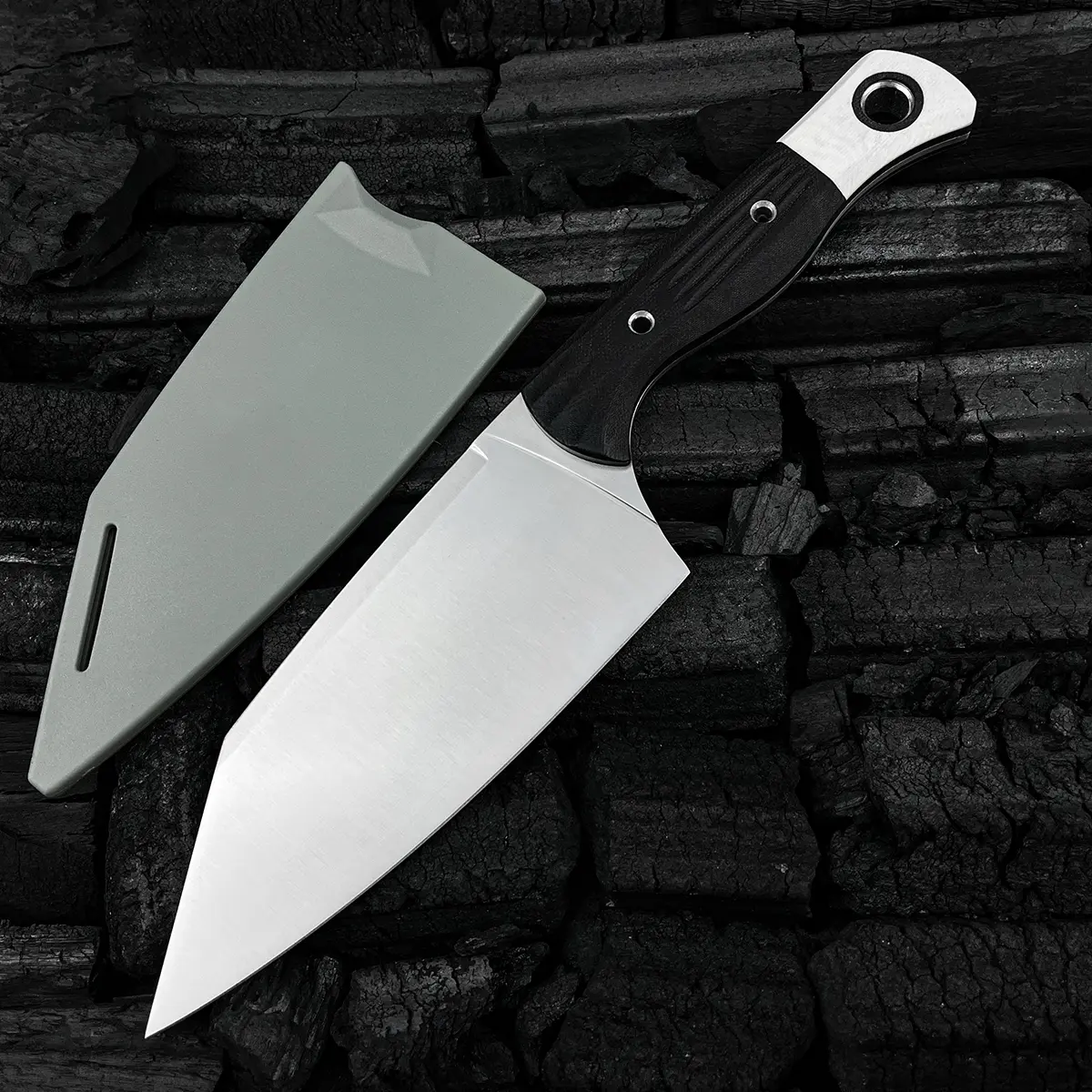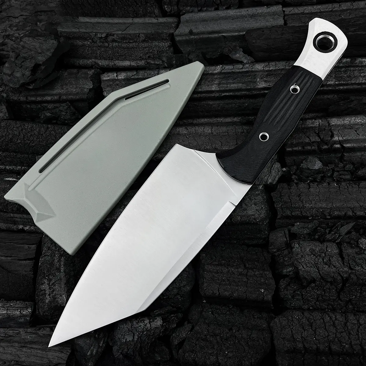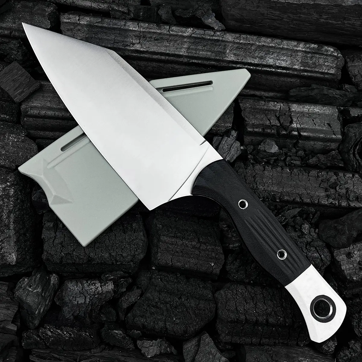 5. 4010 Station Knife Kitchen Knife Fixed Blade 5.9" CPM-154 Stainless Steel Clip Point Blade, OD Black G10 Handles with White G10 Bolsters, Plastic Sheath Hiking Camping kitchen knife, slicing knife