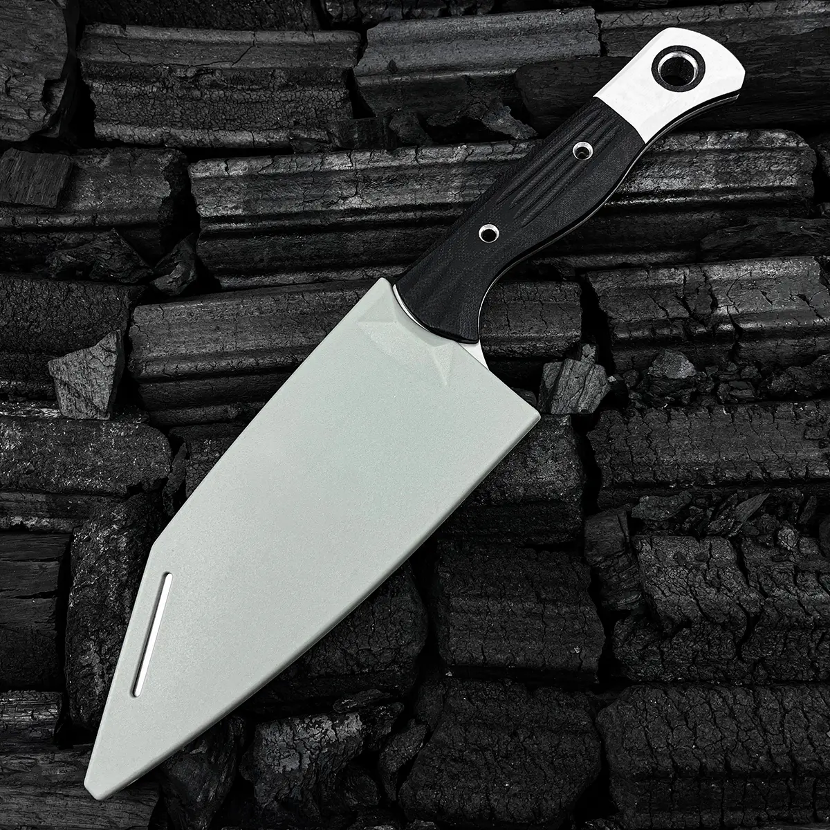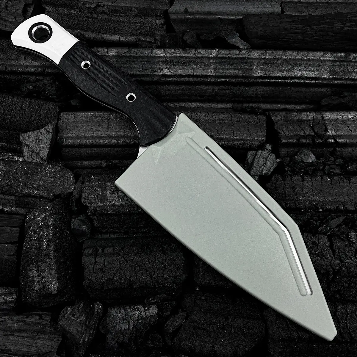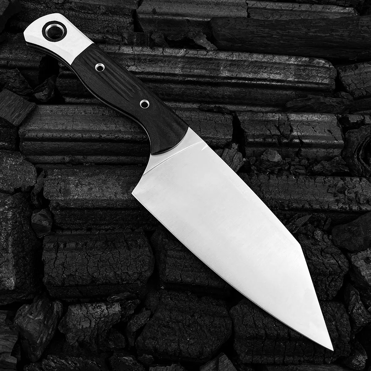 5. 4010 Station Knife Kitchen Knife Fixed Blade 5.9" CPM-154 Stainless Steel Clip Point Blade, OD Black G10 Handles with White G10 Bolsters, Plastic Sheath Hiking Camping kitchen knife, slicing knife
