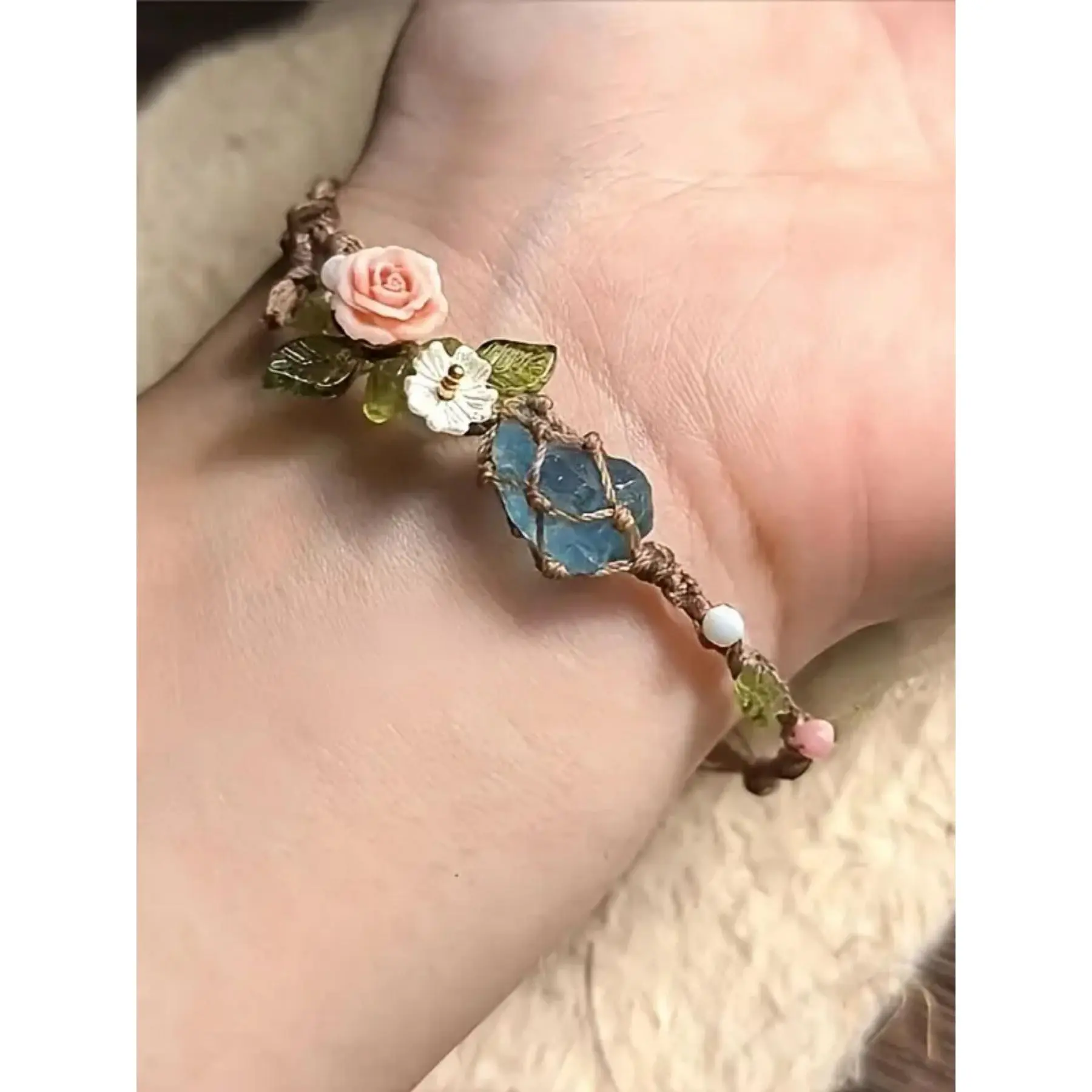Handmade Bohemian Floral Bracelet, Natural Gemstones & April Birthstone, Light Ocean Jewelry, Perfect for Daily Wear, Party Gifts, Valentine's Day