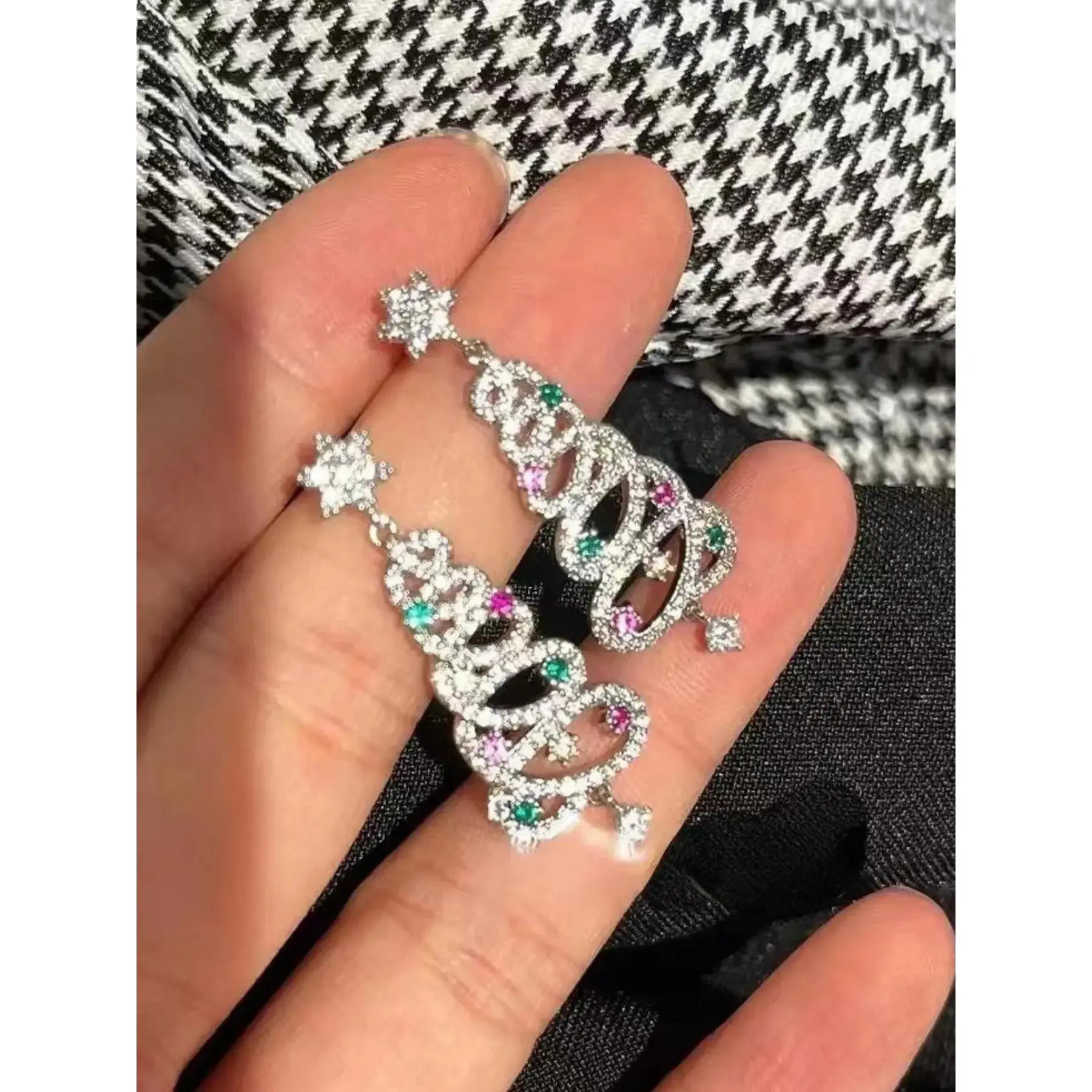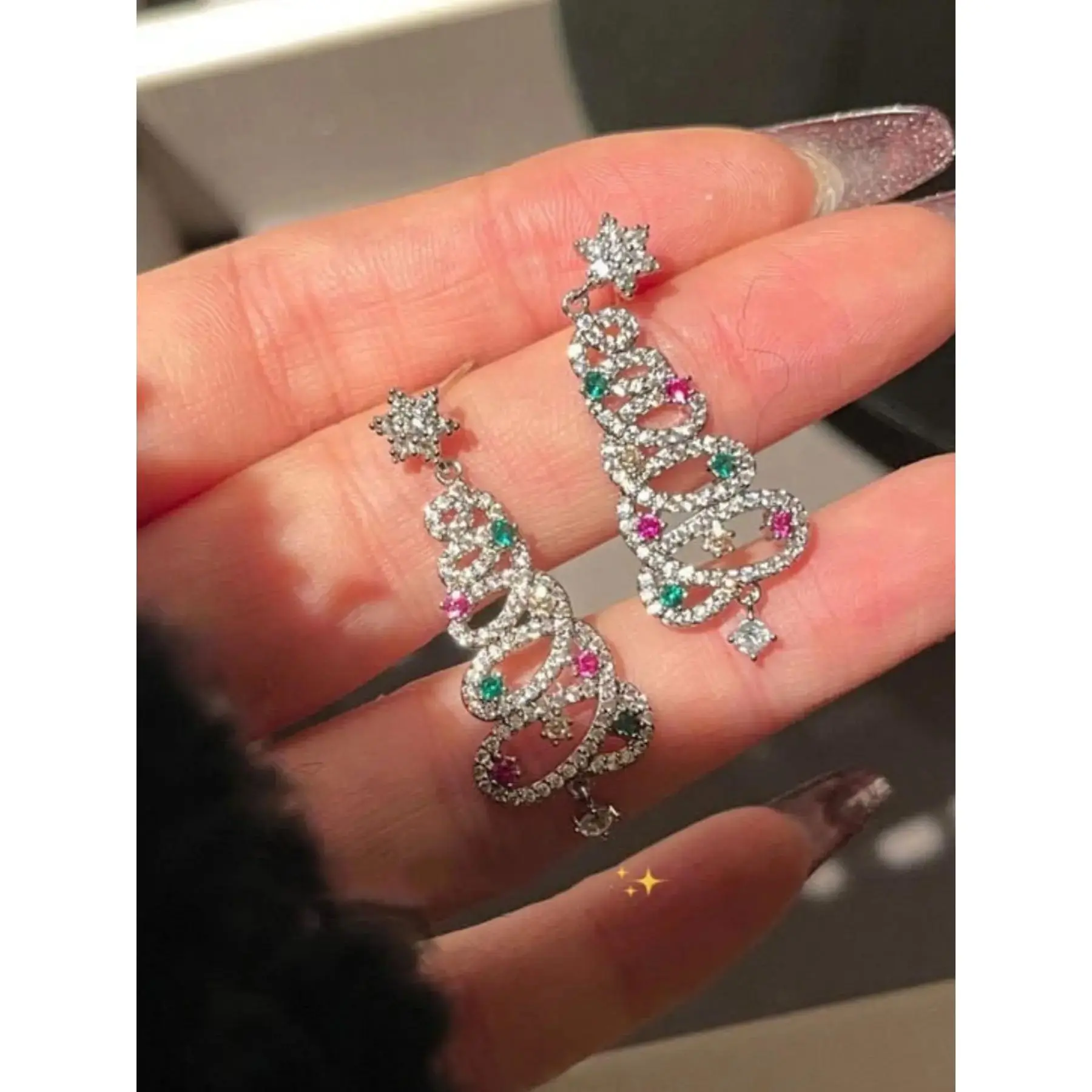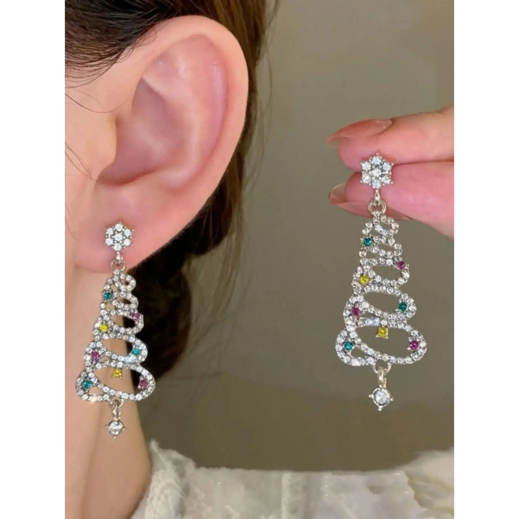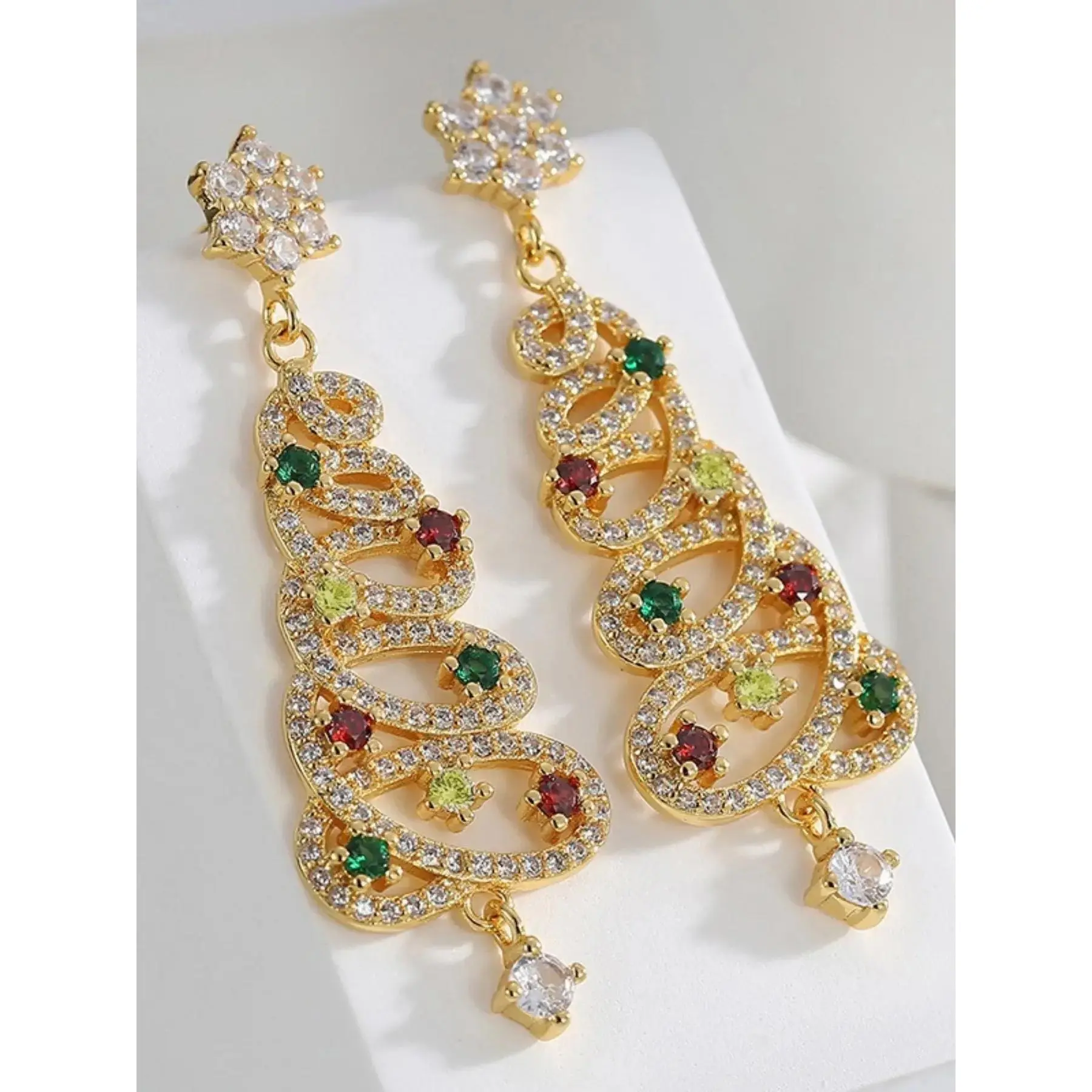 [Festive Theme]: Features colorful zirconia stones shaped as Christmas trees, adding a unique holiday spirit to any outfit.