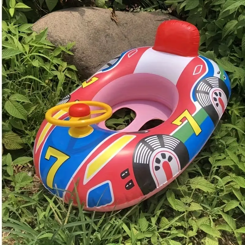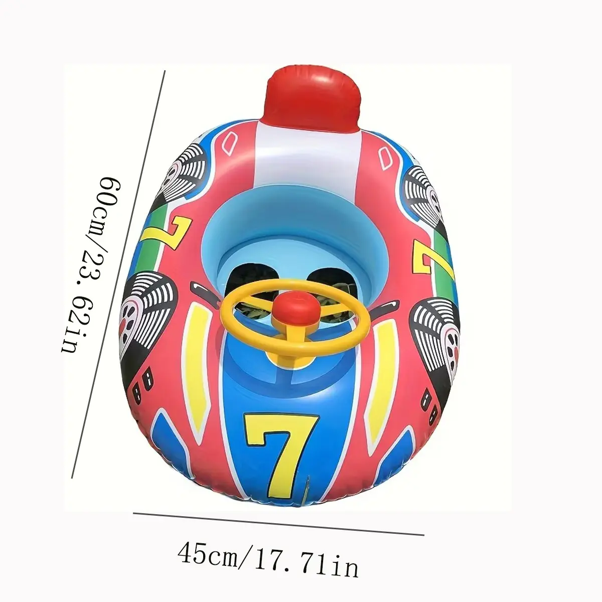 1pc Swimming Ring with Steering Handle and Horn, Racing Theme, Inflatable Water Seat, PVC Material, Perfect for Fun in the Pool