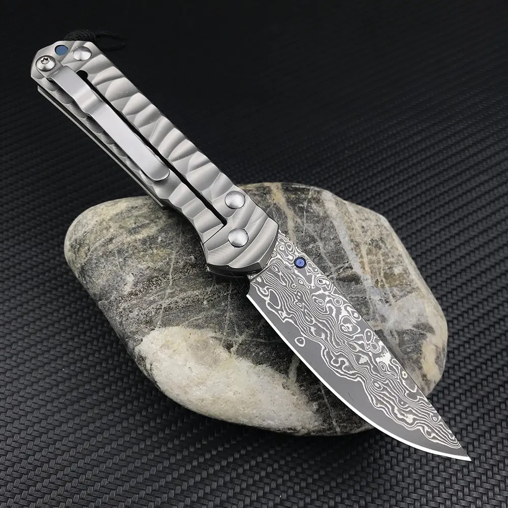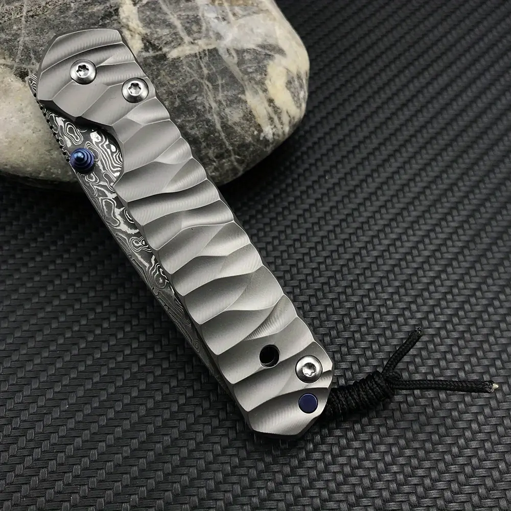 Chris Reeve Damascus  Folding Knife, High Hardness Multi-Purpose  Tool for  Hiking Camping,Gear Stylish Pocket Clip Secure Grip Knife Well Designed Blades set edc  men,Christmas gift