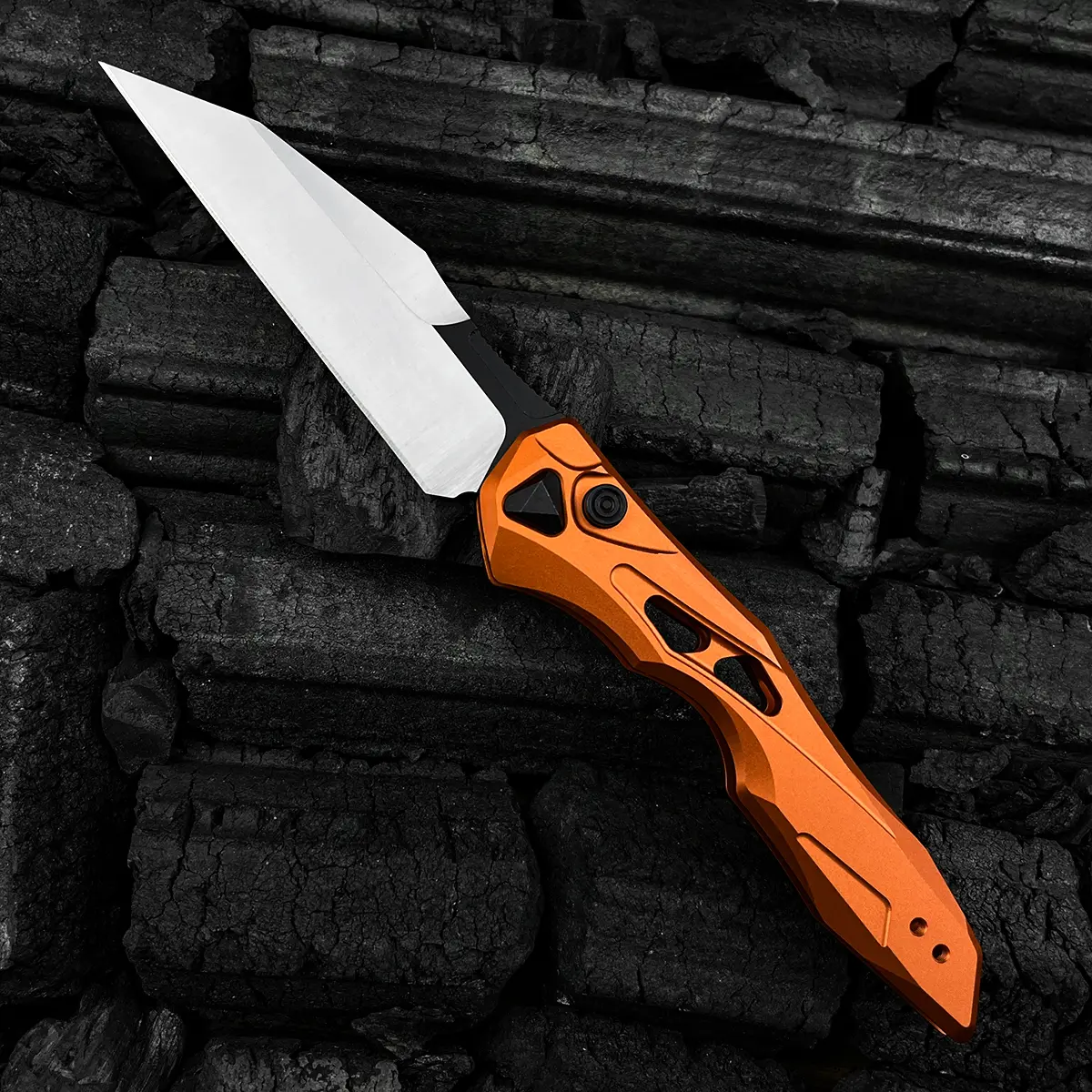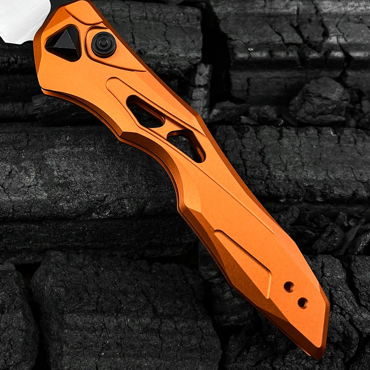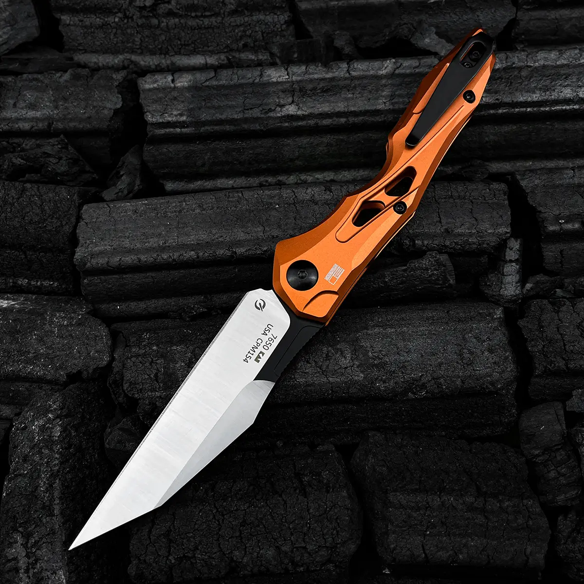 7650 Launch 13 Folding Pocket Knife 3.5" CPM-154 Stainless Steel Wharncliffe Blade, Orange Anodized Aluminum Handles Outdoor Hiking self defense tactical knife Camping Fishing Tools Knife EDC Knife