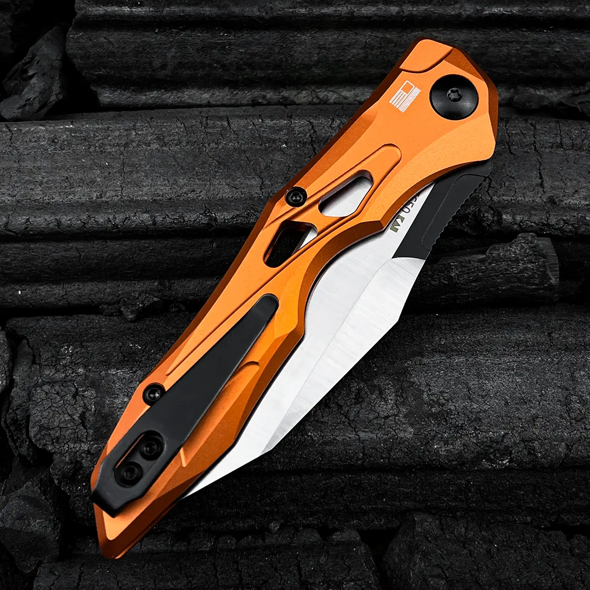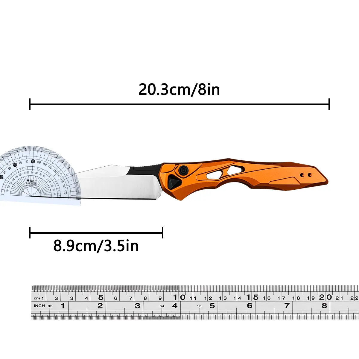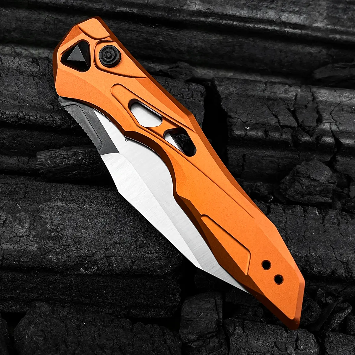 7650 Launch 13 Folding Pocket Knife 3.5" CPM-154 Stainless Steel Wharncliffe Blade, Orange Anodized Aluminum Handles Outdoor Hiking self defense tactical knife Camping Fishing Tools Knife EDC Knife