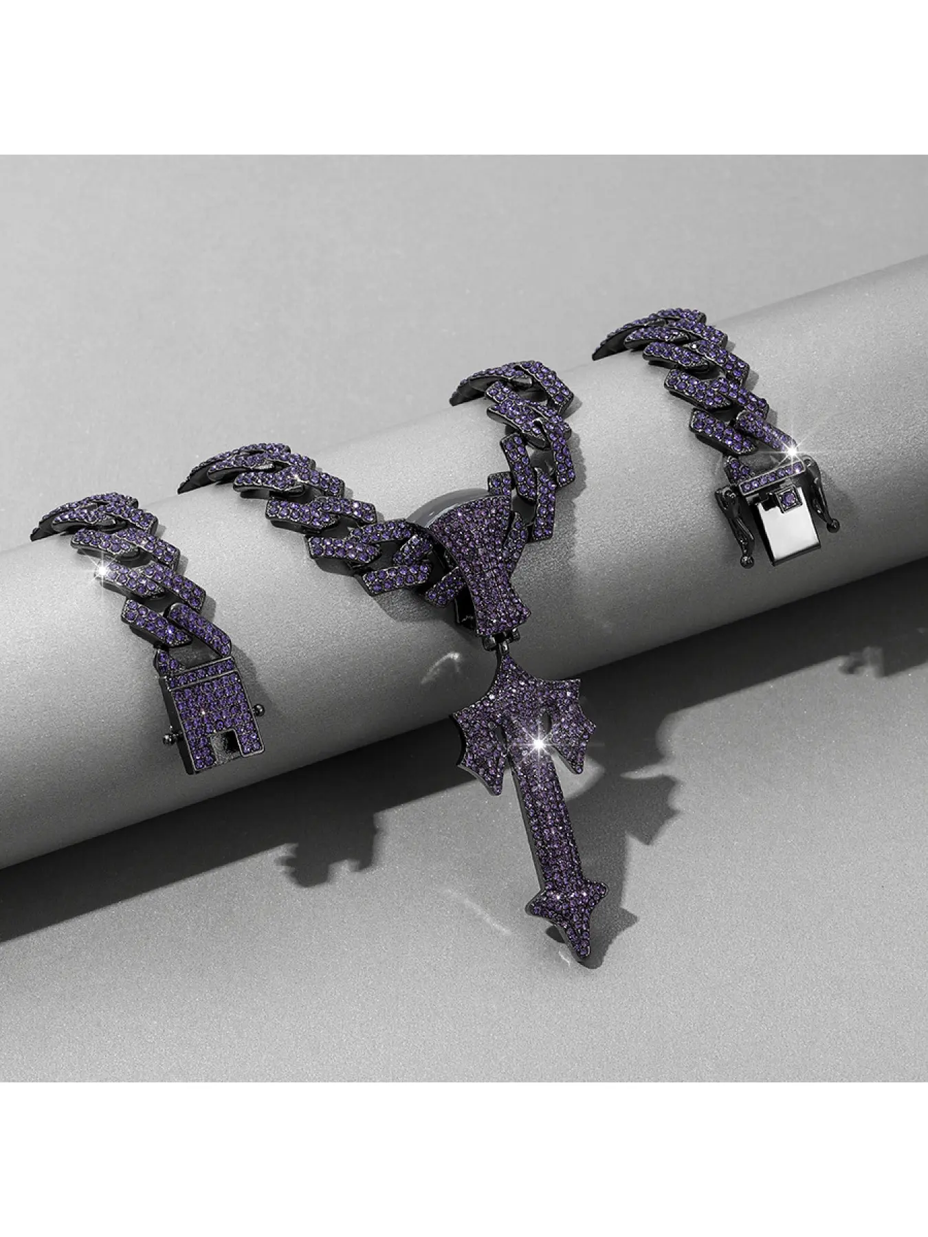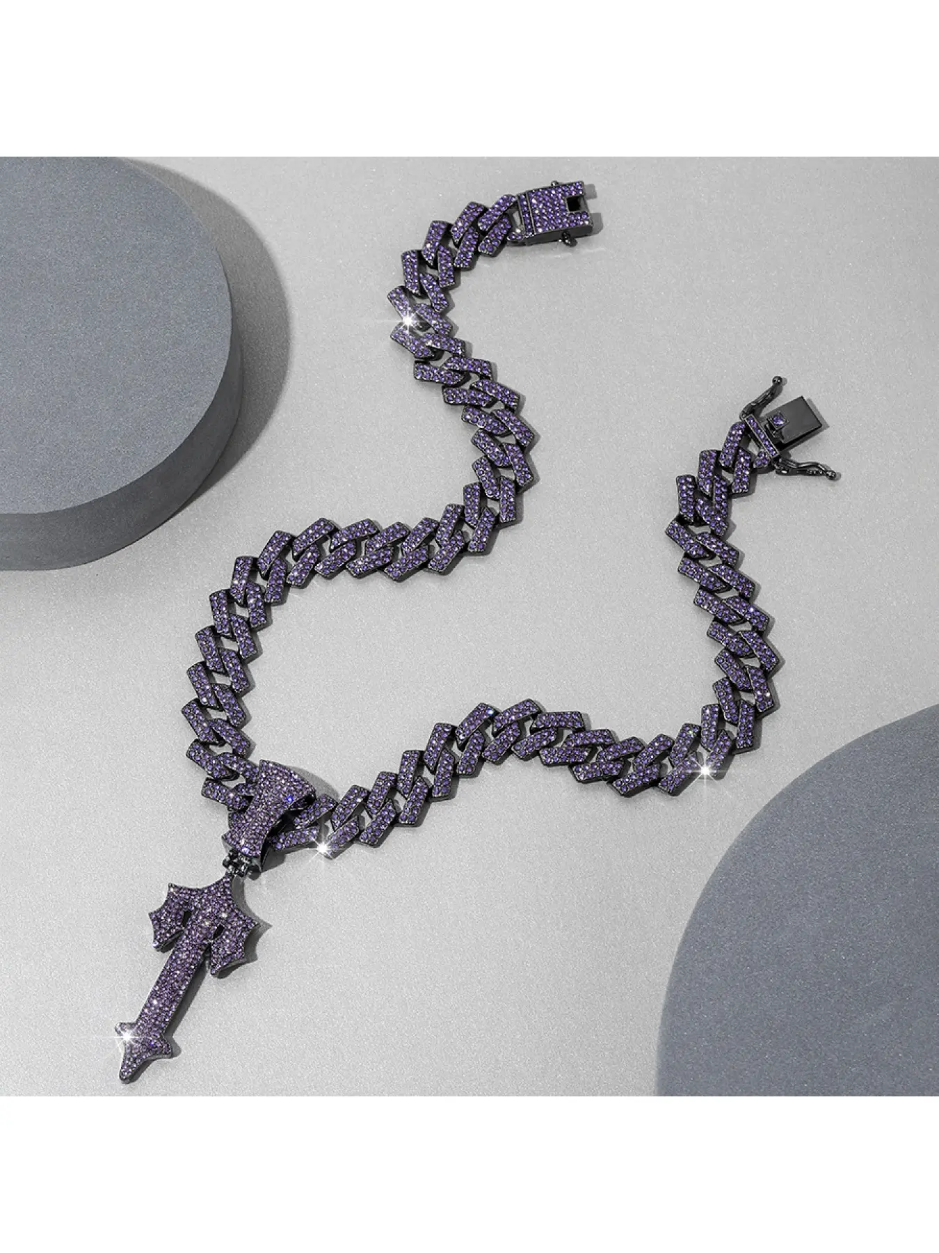Purple large sword pendant, European and American hip-hop style alloy men's sword necklace