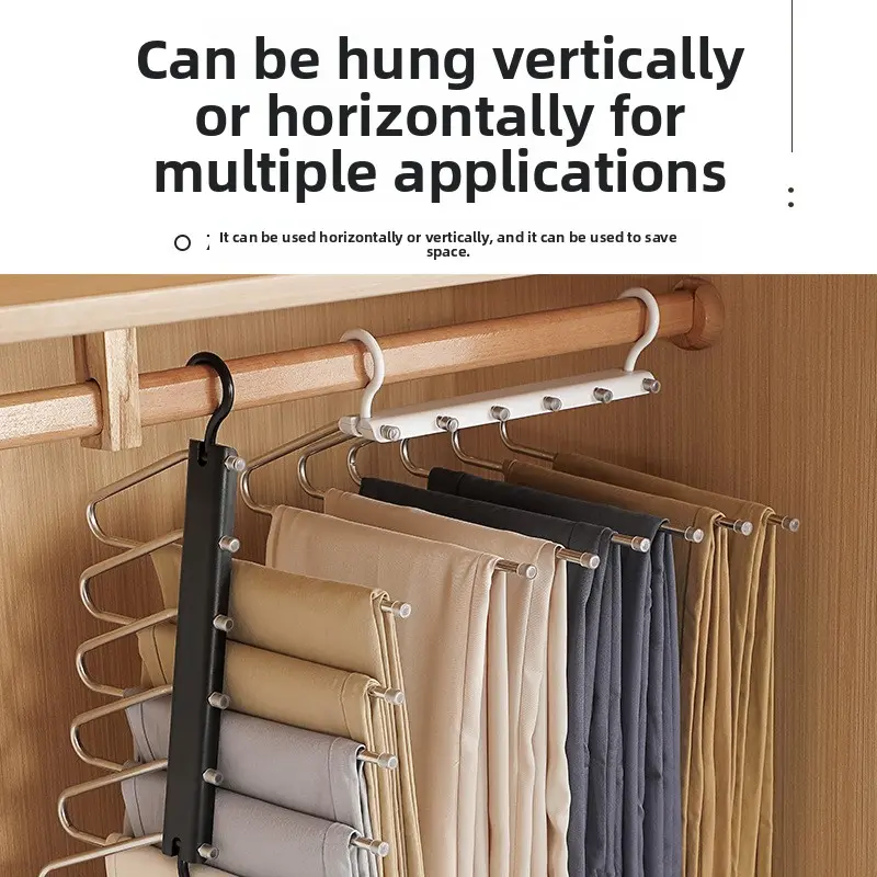 Stainless Steel Foldable Pants Hanger Non-Slip Multi-Functional Home Storage Space-Saving Hanger for Closet Organizing Anti-Scratch Laundry Rack