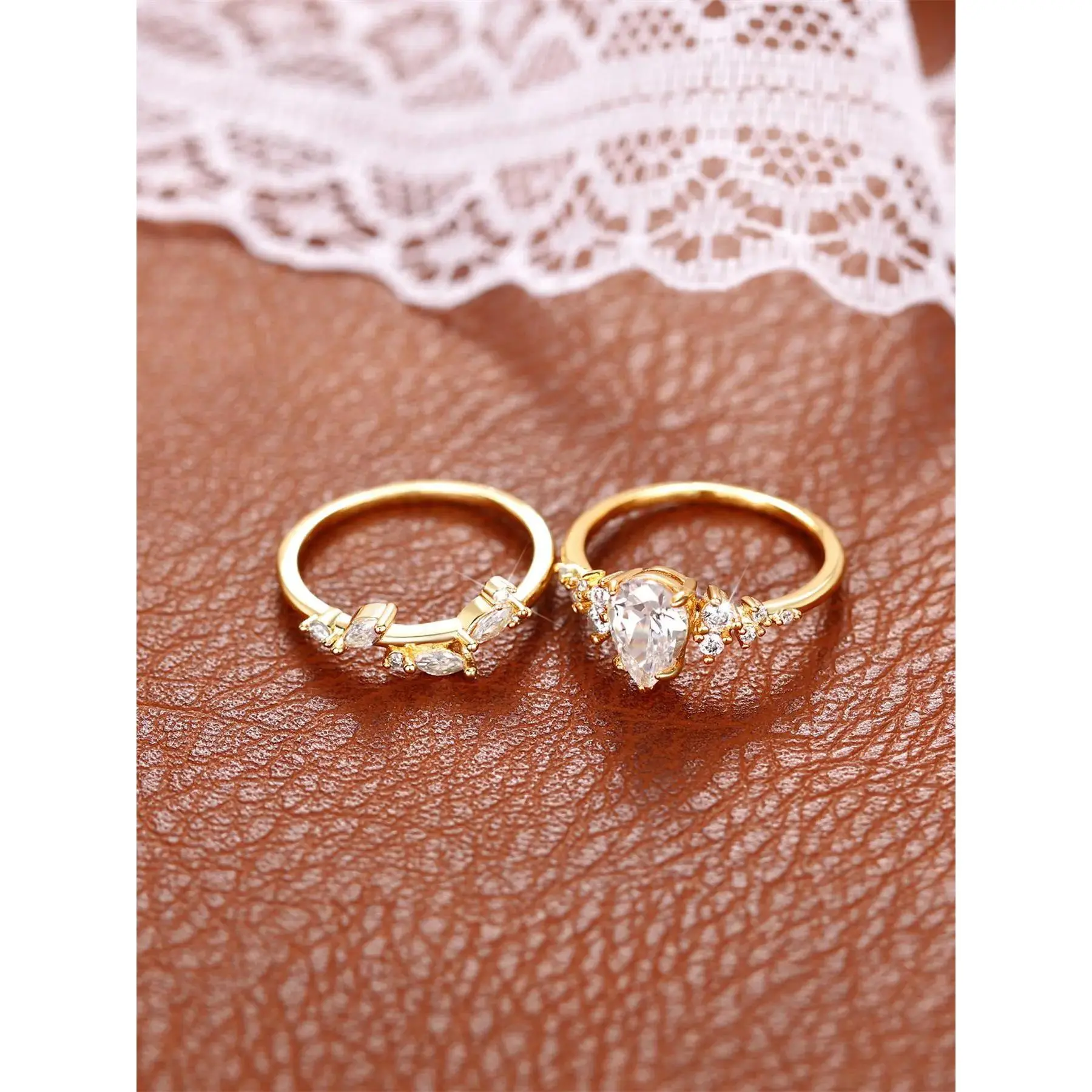 [Rhinestone Brilliance]: Embellished with exquisite rhinestones, this engagement and wedding ring set offers a radiant sparkle that mirrors the depth of your commitment.
