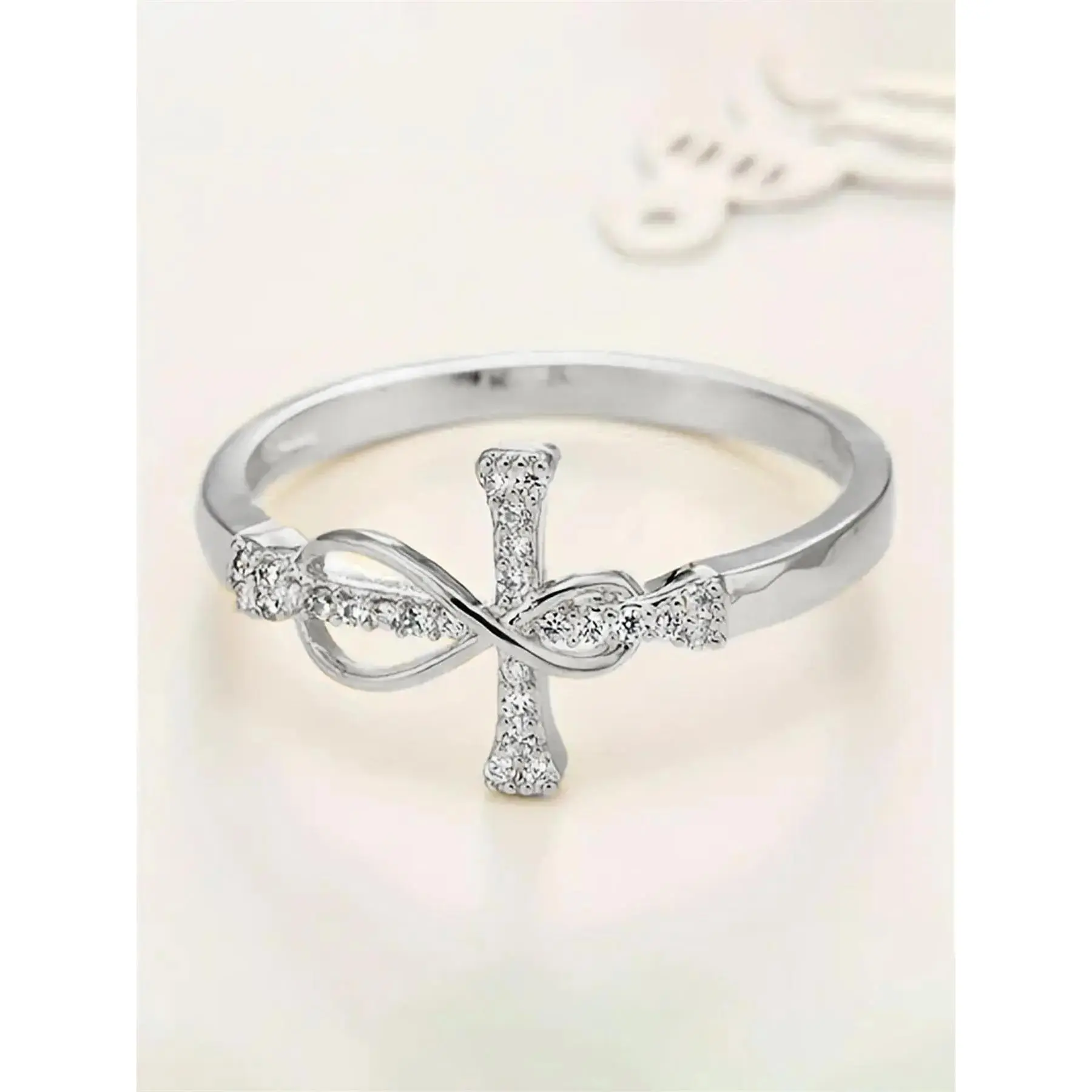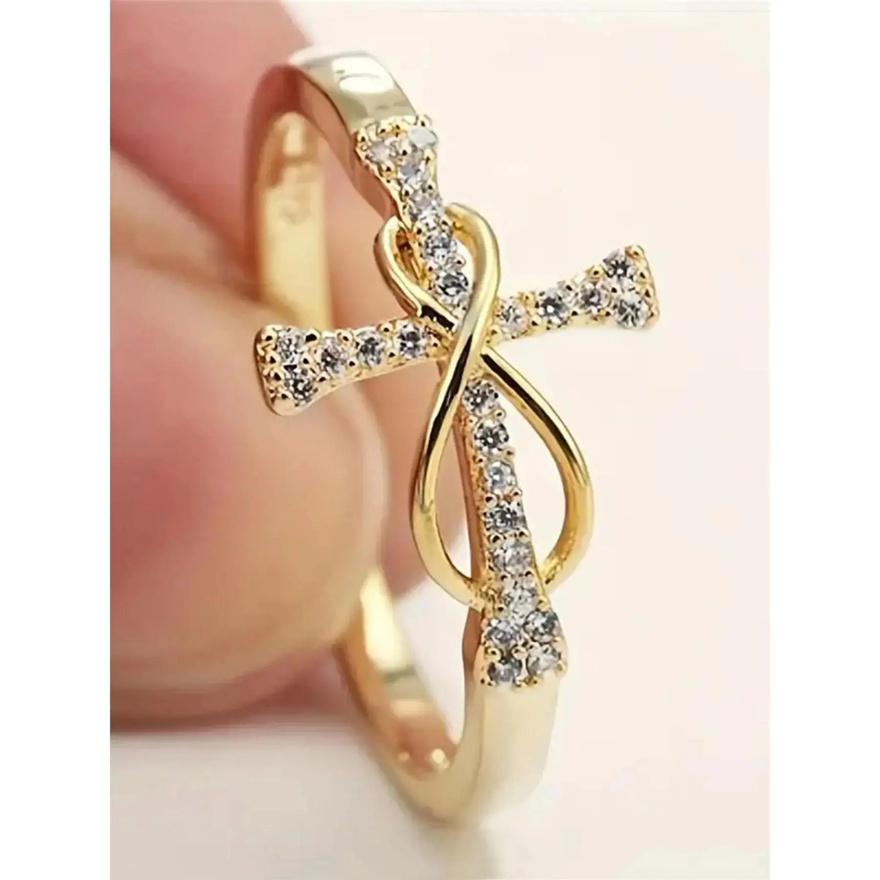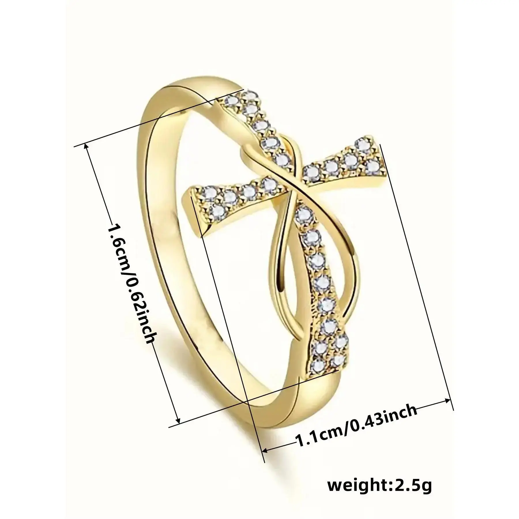 PAVOI 14K Gold Plated Cubic Zirconia Cross Ring for Women - Eternity Promise Ring for Her - Infinity Religious Wedding Band