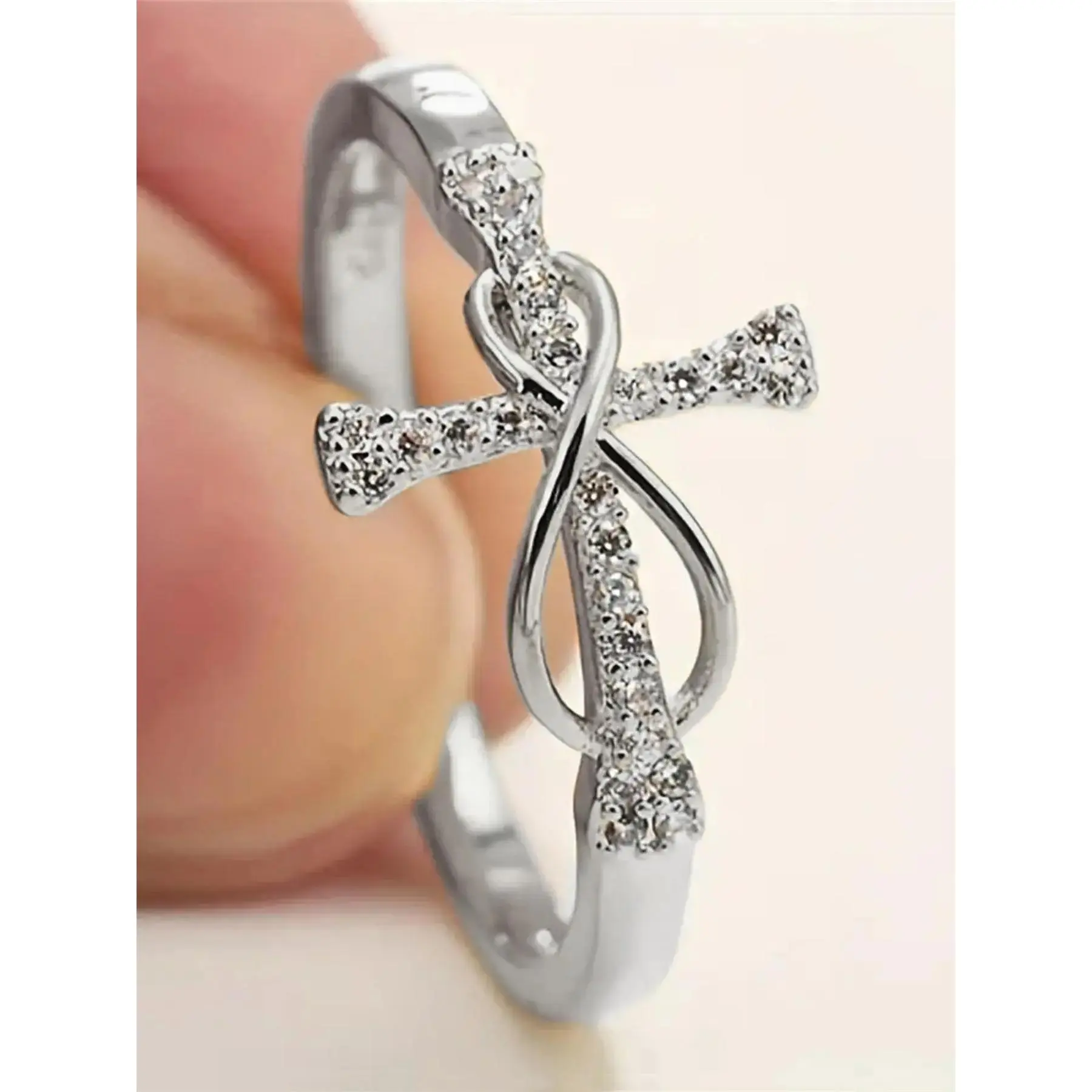Fashion Rhinestone Cross Design Ring, Rhinestone Decor Ring, Fashion Engagement Rings, Wedding Engagement Bridesmaid Costume Dress Prom Jewelry, Trendy All-match & Exquisite Jewelry for Birthday Gift for Women & Girls, Valentine's Day, Gift