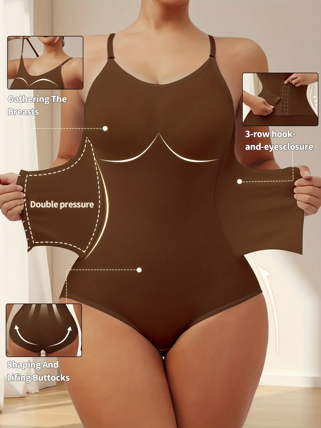 SHAPERX Seamless Bodysuit Tummy Control Shapewear Thong Style Women's Shaping Snatched Body Suit Womenswear Tops Comfort Moderate Support Comfortable Fit