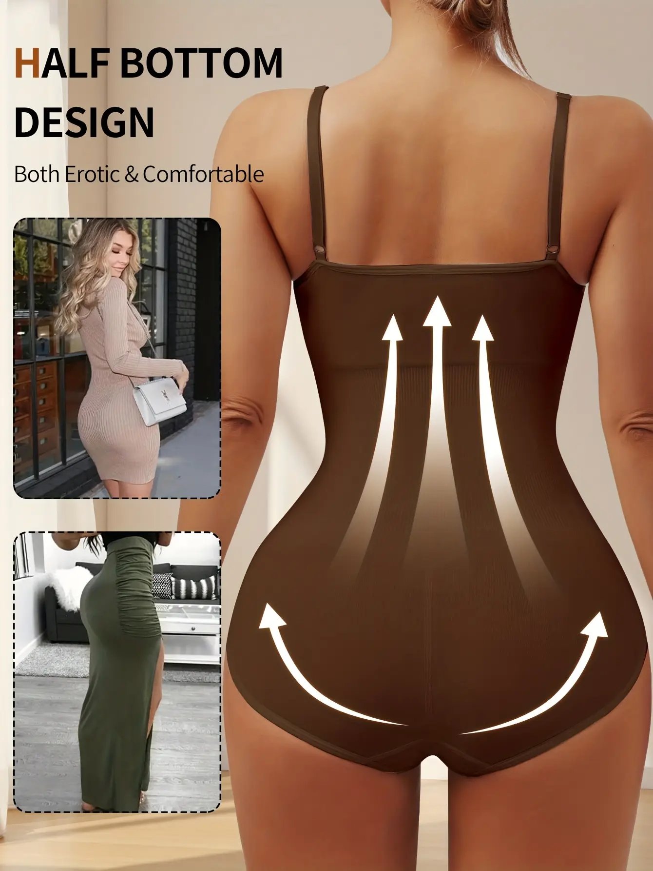 SNATCHED BODY Comfy Tummy Control Shapewear Bodysuit Mid Thigh With Built-In Bra Adjustable Straps Breathable Fabric for Everyday Use