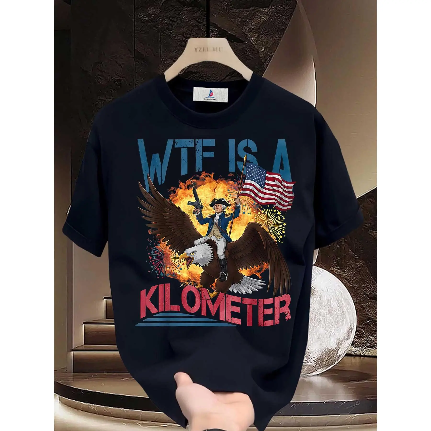 Classic Graphic T-Shirt "WTF is a Kilometer" Perfect for Family Gatherings, Team-Building Events, and 4th of July Celebrations | 180g Unisex Tees with Patriotic Design - Ideal Gift for Independence Day Festivities