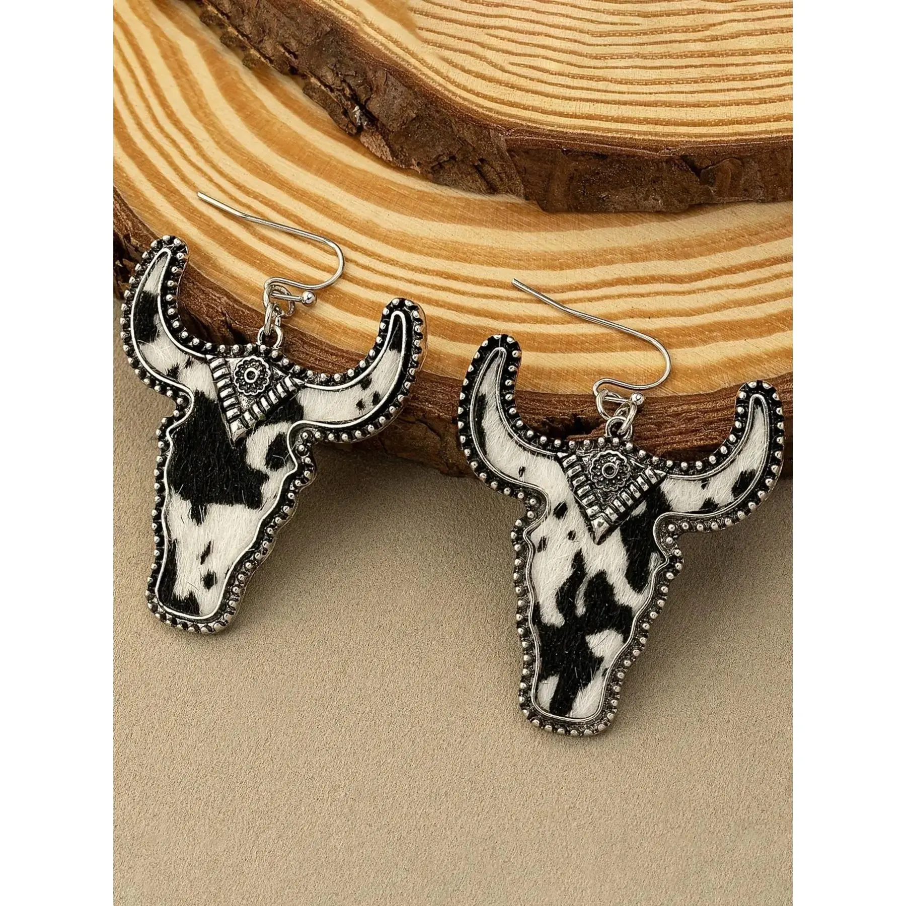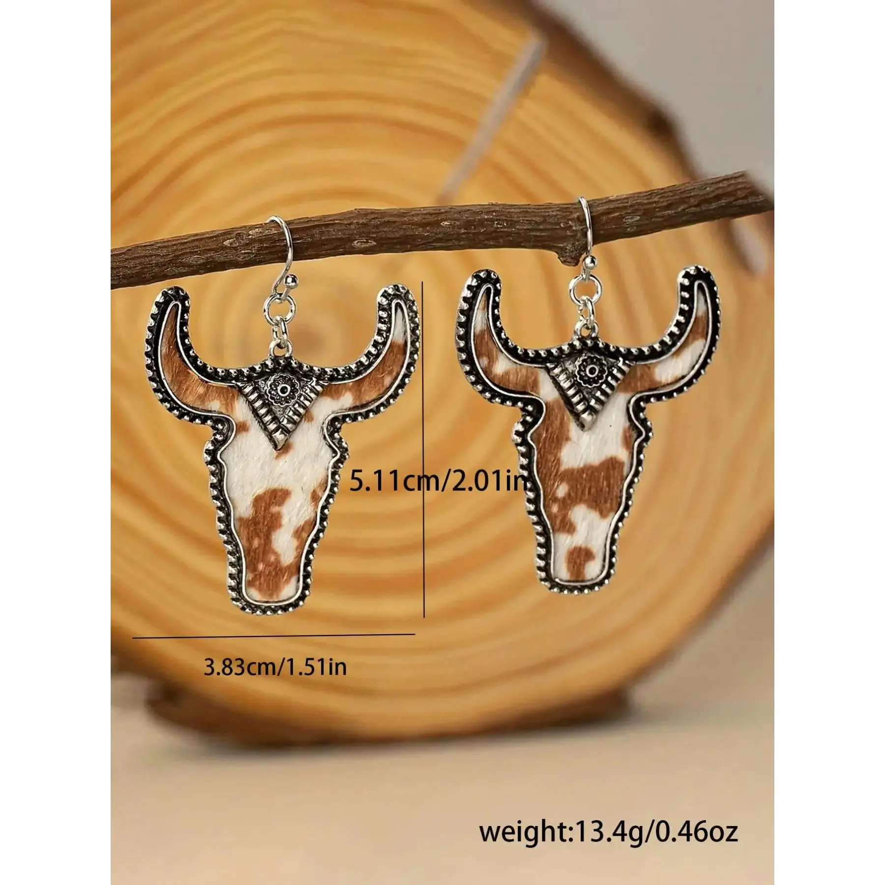 Vintage Cow Head Shaped Dangle Earrings (1 Pair), Western Cowboy Style Leopard & Cow Print Earrings, Hollow Out Design Earrings for Women, Trendy Jewelry Gift for Party and Daily Life, Casual Yet Chic