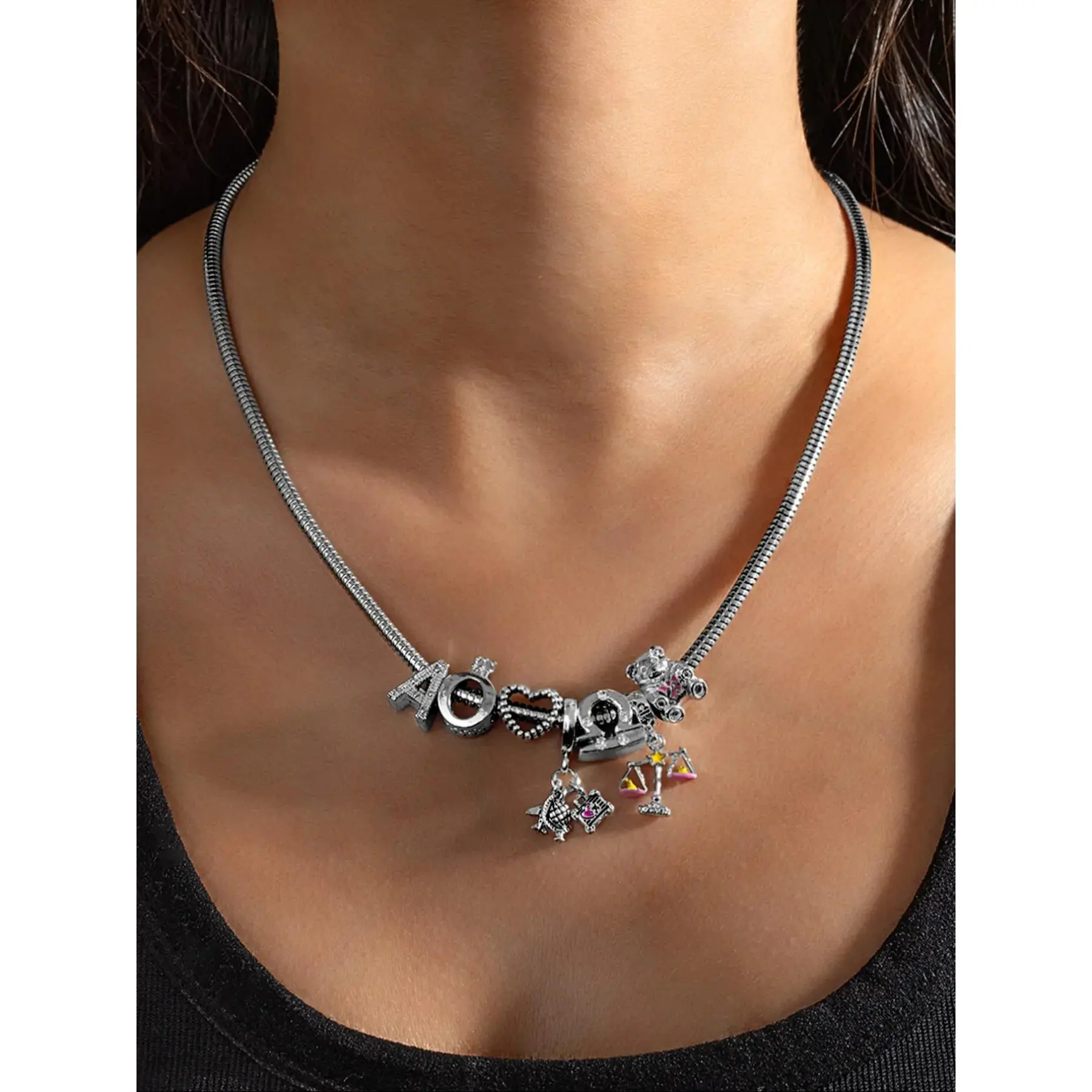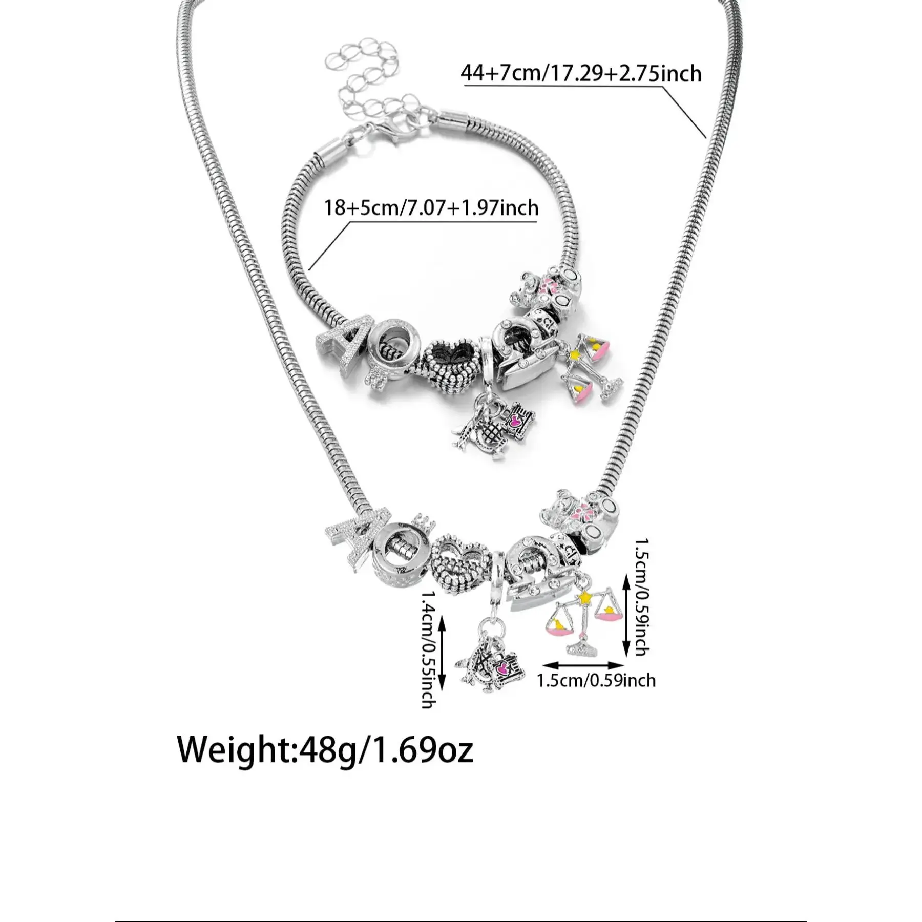 Elegant Bear Zodiac Pendant Necklace Bracelet Set, Zircon Heart Letter Jewelry for Women, Perfect Gift for Holidays Birthdays, Zirconia Jewelry Set