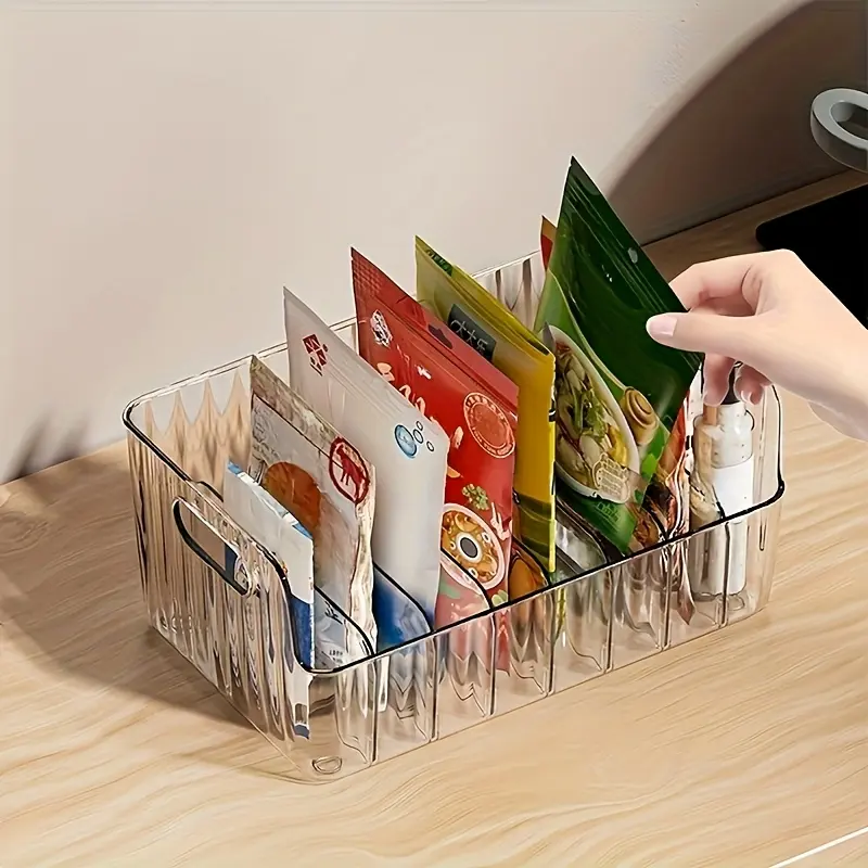 Transparent Plastic Spice Storage Box with Adjustable Dividers, Multi-Purpose Kitchen Organizer for Snacks & Small Items