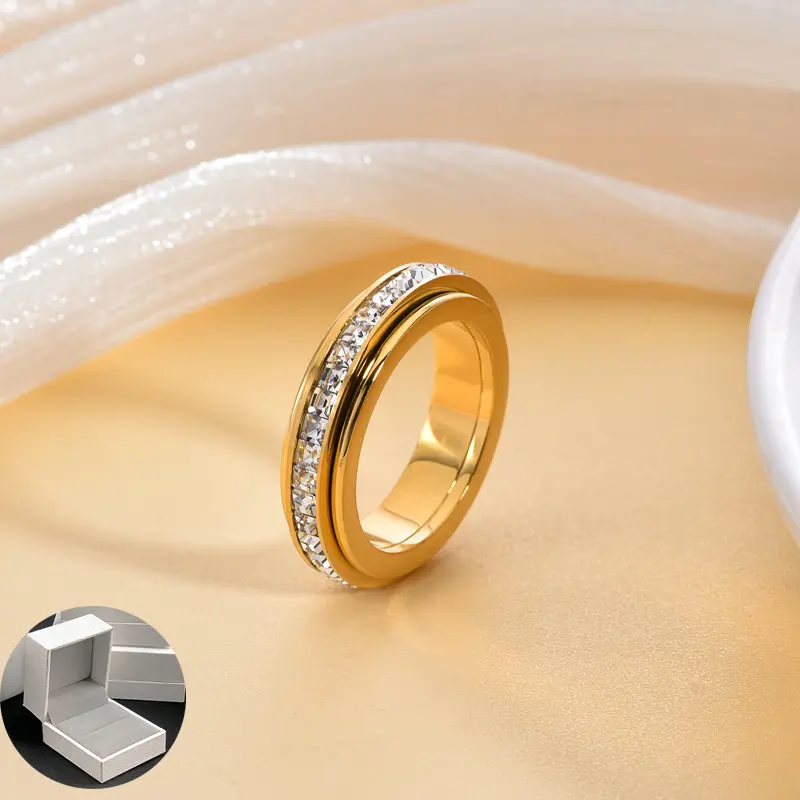 Anxiety Ring for Women Men. These Spinner Fidget Band Rings this spinner ring can help you get through stress, reduce anxiety and calm yourself down. This spinner rings also could be used as a wedding ring, engagement ring, promise ring, meditation ring and daily band ring. Cubic Zirconia ring Spinner design. The fidget rings for anxiety enhance your mood.