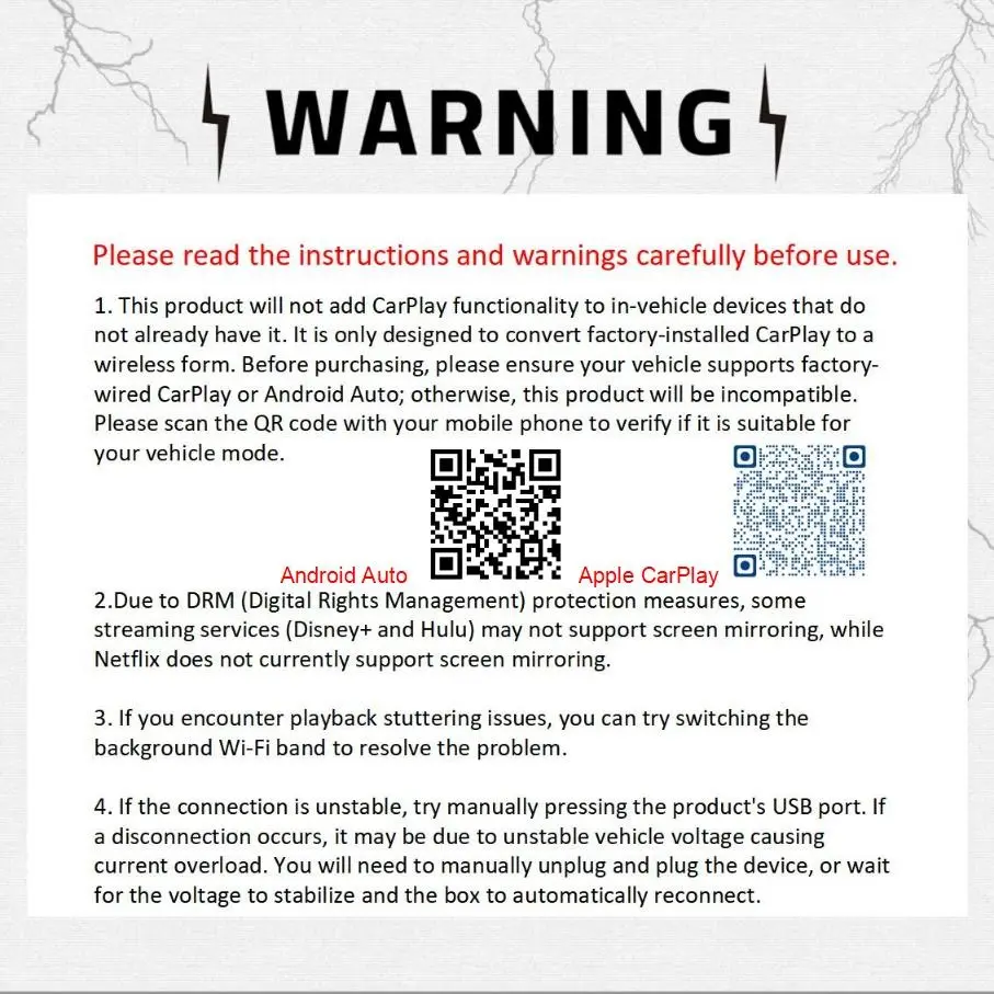 【Fast Connection】: Enjoy quick and seamless connections with our 4-in-1 CarPlay wireless adapter.