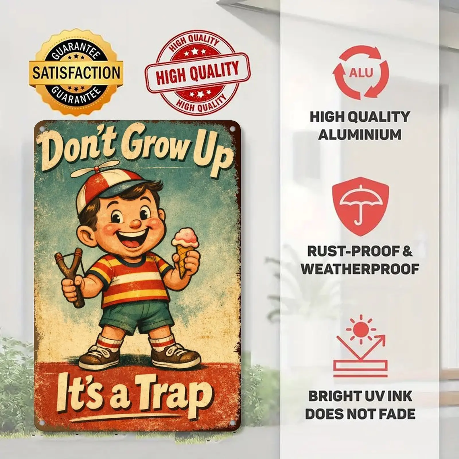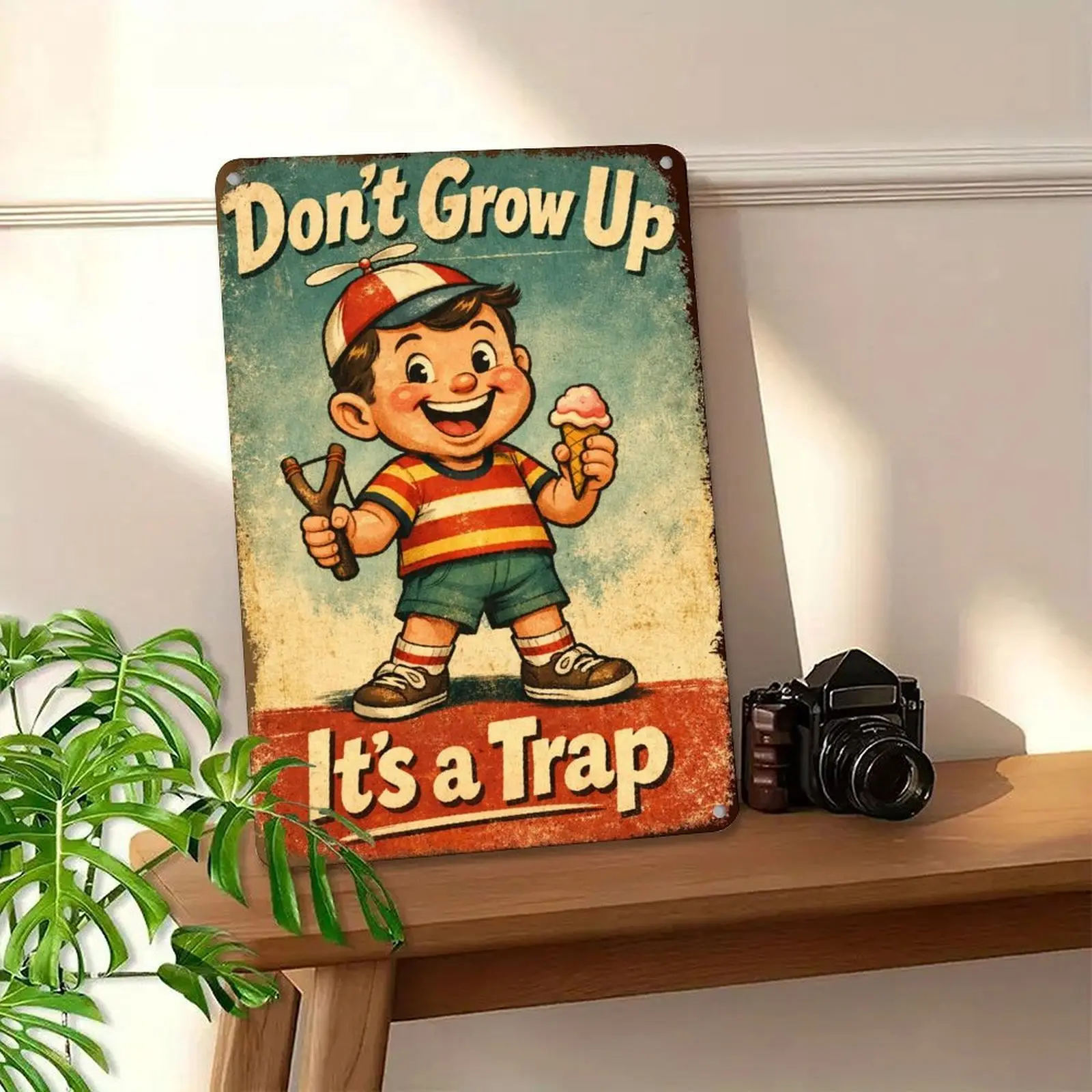 ✨ Size & Design: This vintage wall decor measures 8x12 inches, perfect for any space. The sign features a sarcastic quote, "Don’t Grow Up It’s a Trap," adding a humorous touch. Ideal for friends who appreciate retro humor.