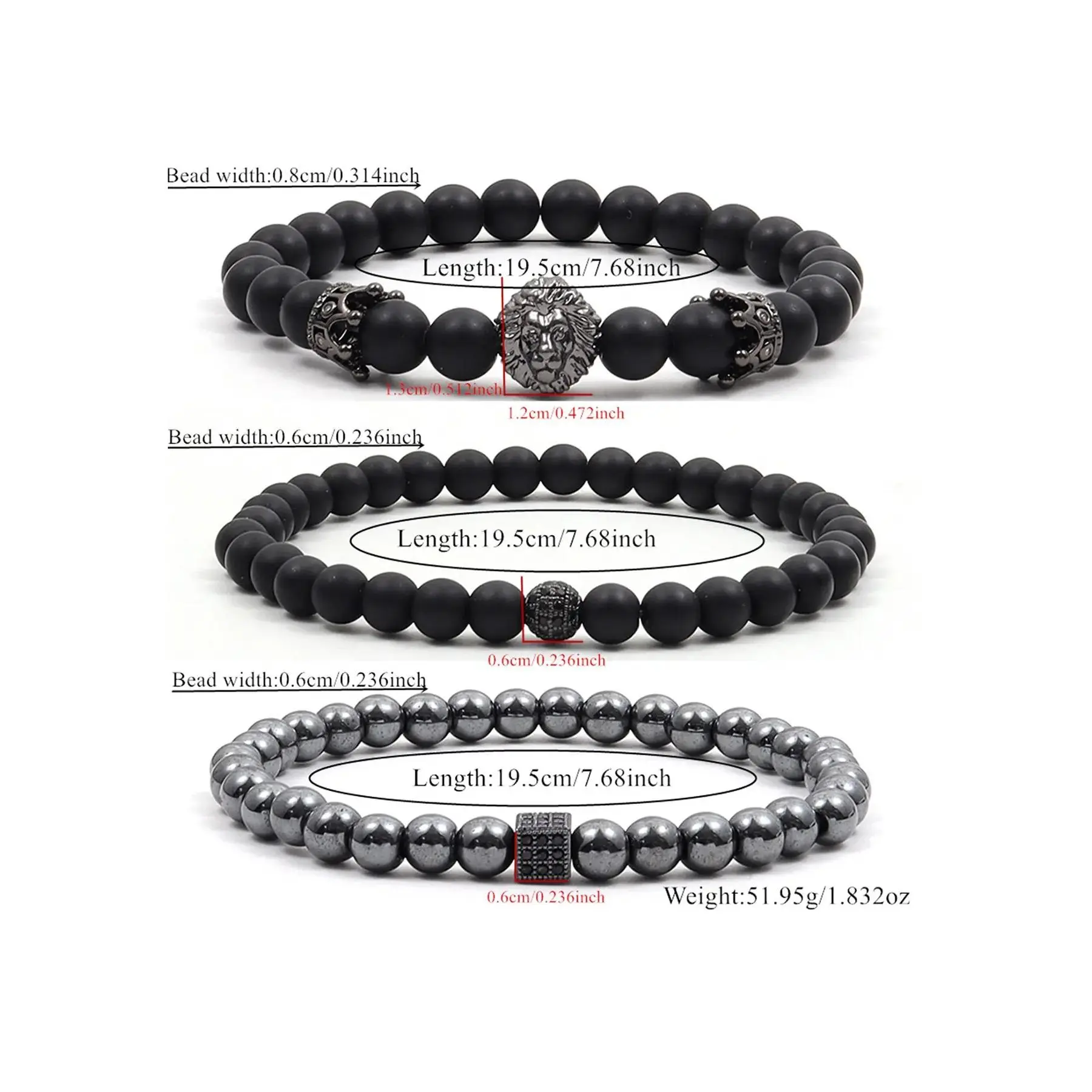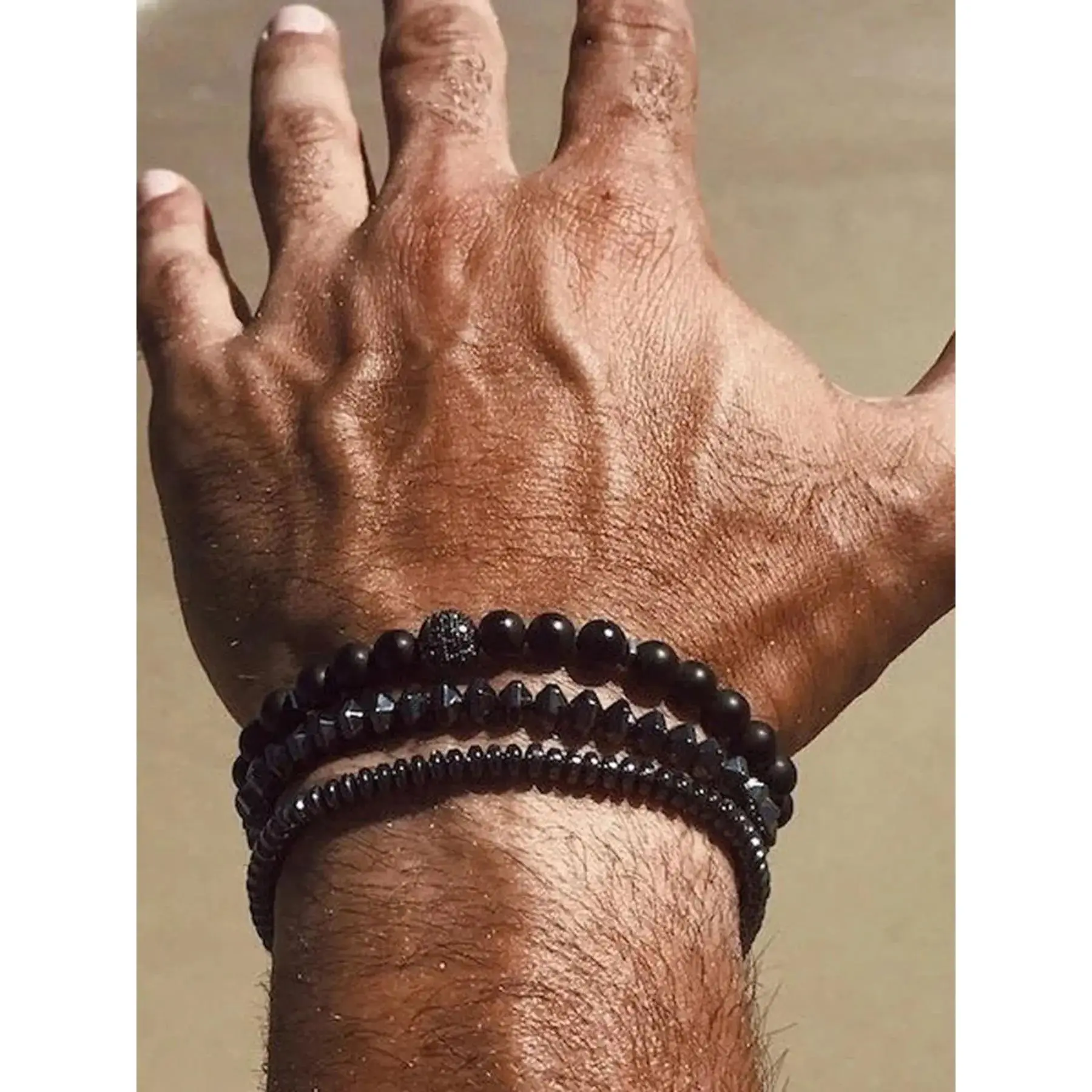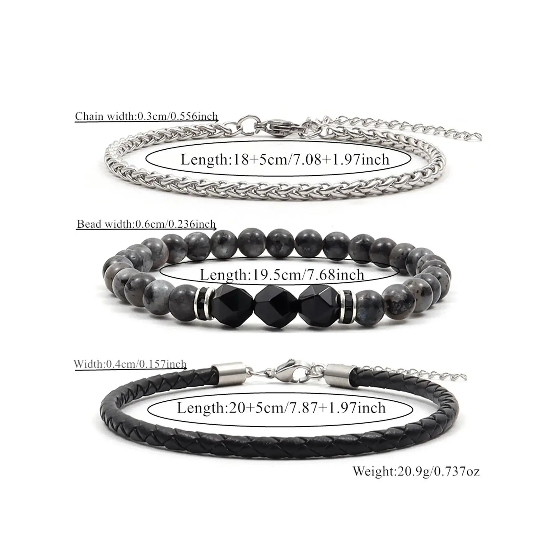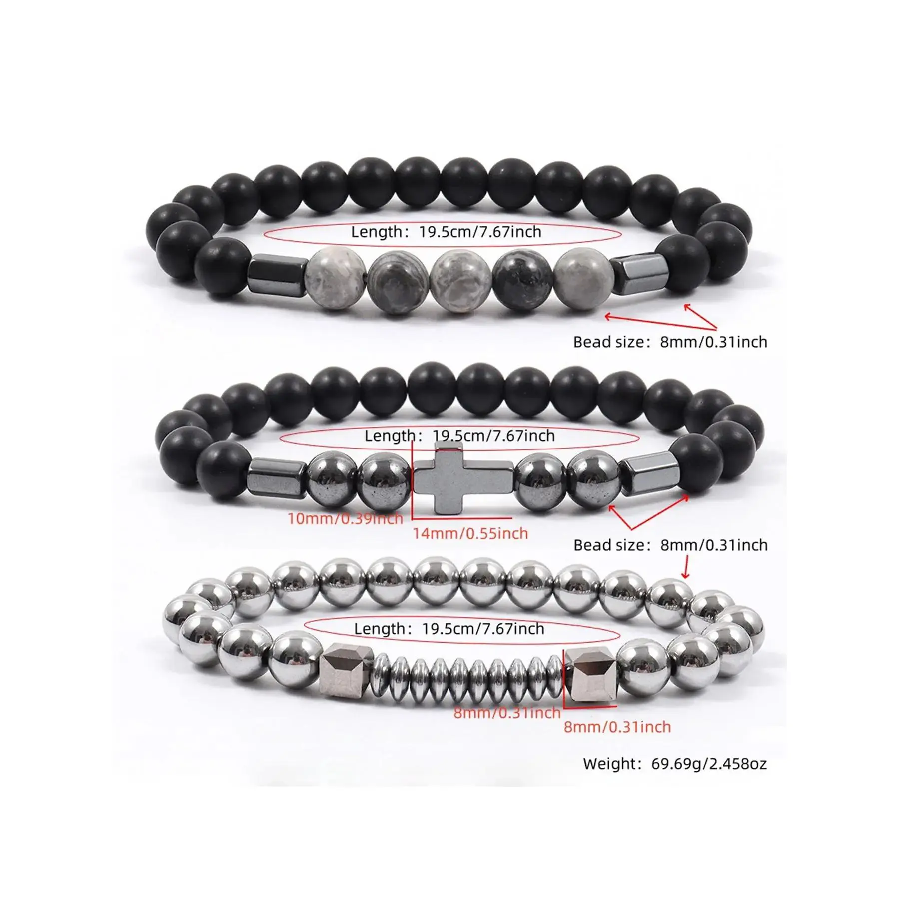 Men's Street Trend Beaded & Cross Charm Bracelets, 3pcs/set Trendy Minimalist Matching Bracelets, Chic Hip Hop Vintage Jewelry As Gift for Boyfriend, Stackable Bracelets, Mix Bracelets, Bangles Bracelets Set, Exquisite Bracelet