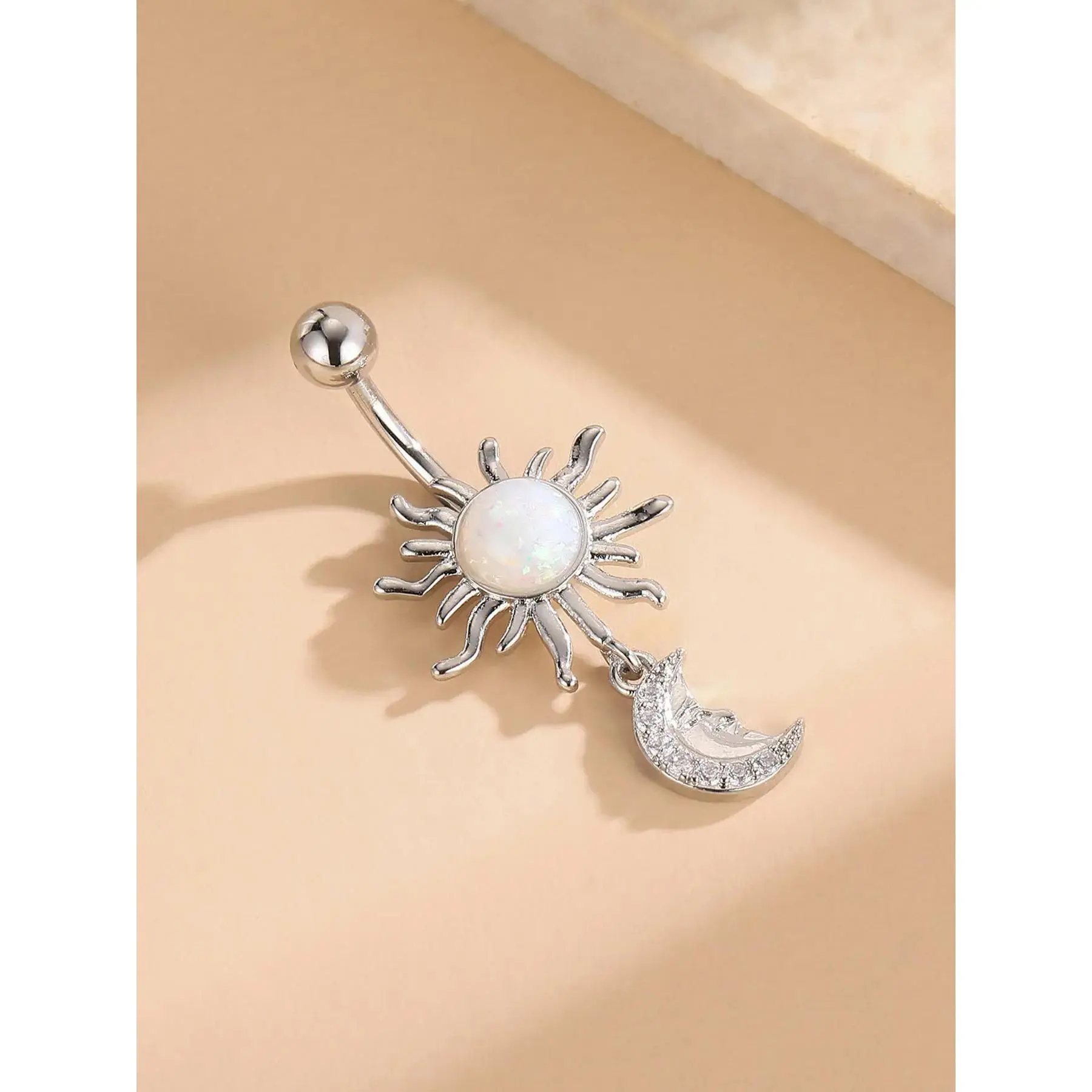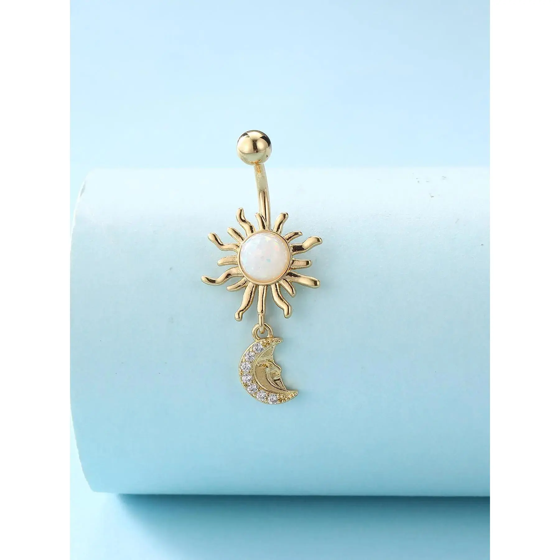 Fashion Sunflower & Moon Design Belly Button Ring, Stainless Steel Navel Piercing Body Jewelry for Women & Girls, Body Jewelry for Party, Daily Clothing Decor