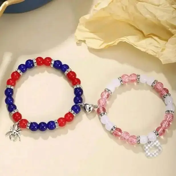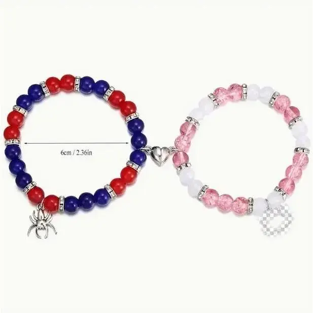 Discover a fun and stylish accessory with the 2 Cute Punk Style Glass Bead Bracelets featuring unique Spider and Cat charms.Perfect for adding a touch of punk flair to any outfit, these adjustable magnetic wristbands are designed for daily wear and special occasions alike.