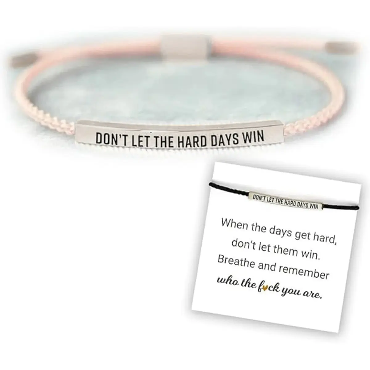 Don't Let The Hard Days Win Bracelet for Women Men Handmade Adjustable Cord Bracelet, Motivational Gift BraceletDaughter/Sister/Friend/Teen Jewelry Gift