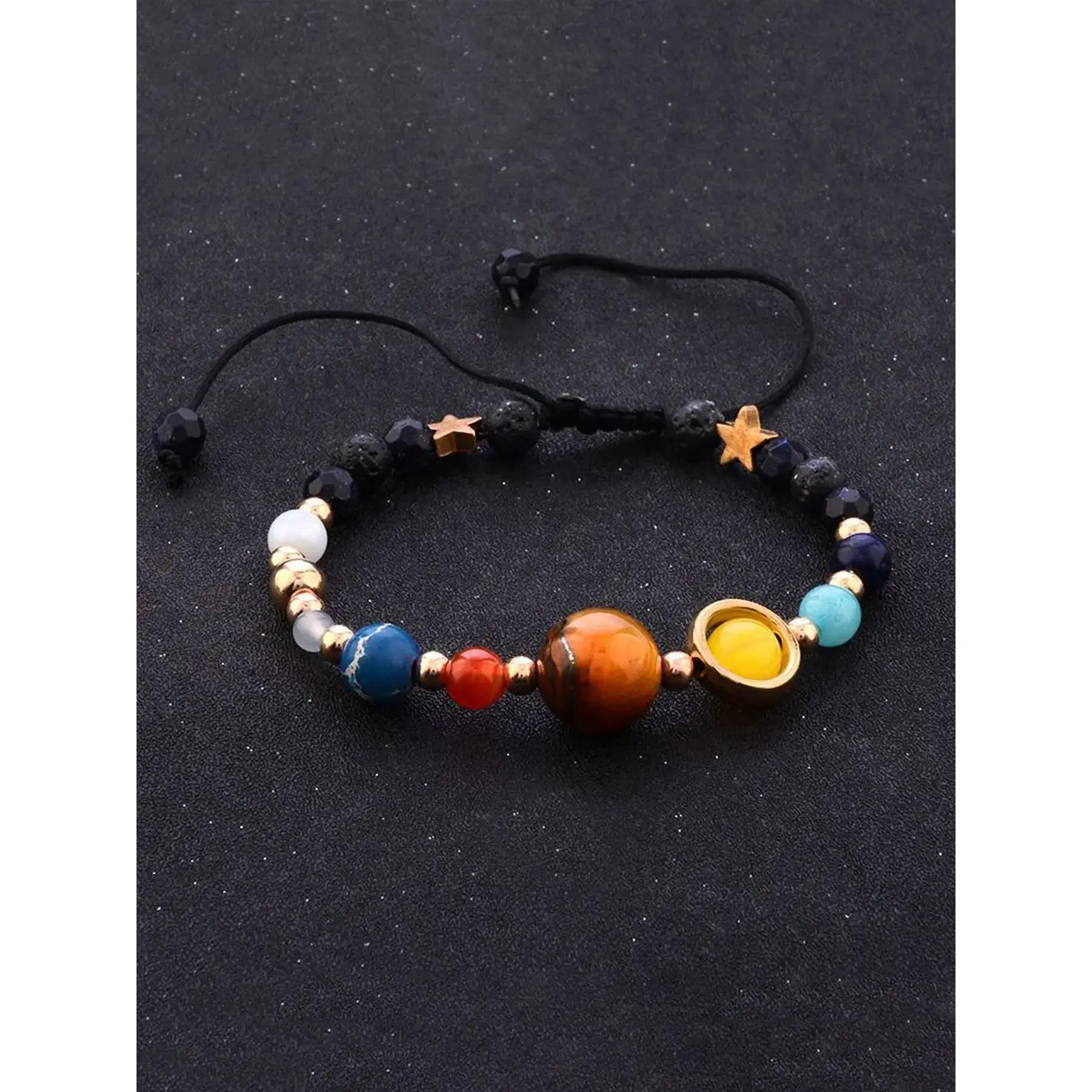 Planet Charm Beaded Bracelet, Colorblock Stone Beaded Bracelet for Women & Men, Fashion Jewelry for Party, Daily Clothing Decor, Trendy Exquisite Jewelry for Gift, Bead Bracelets, Stackable Bracelets, Solstice Gemstone Bracelet