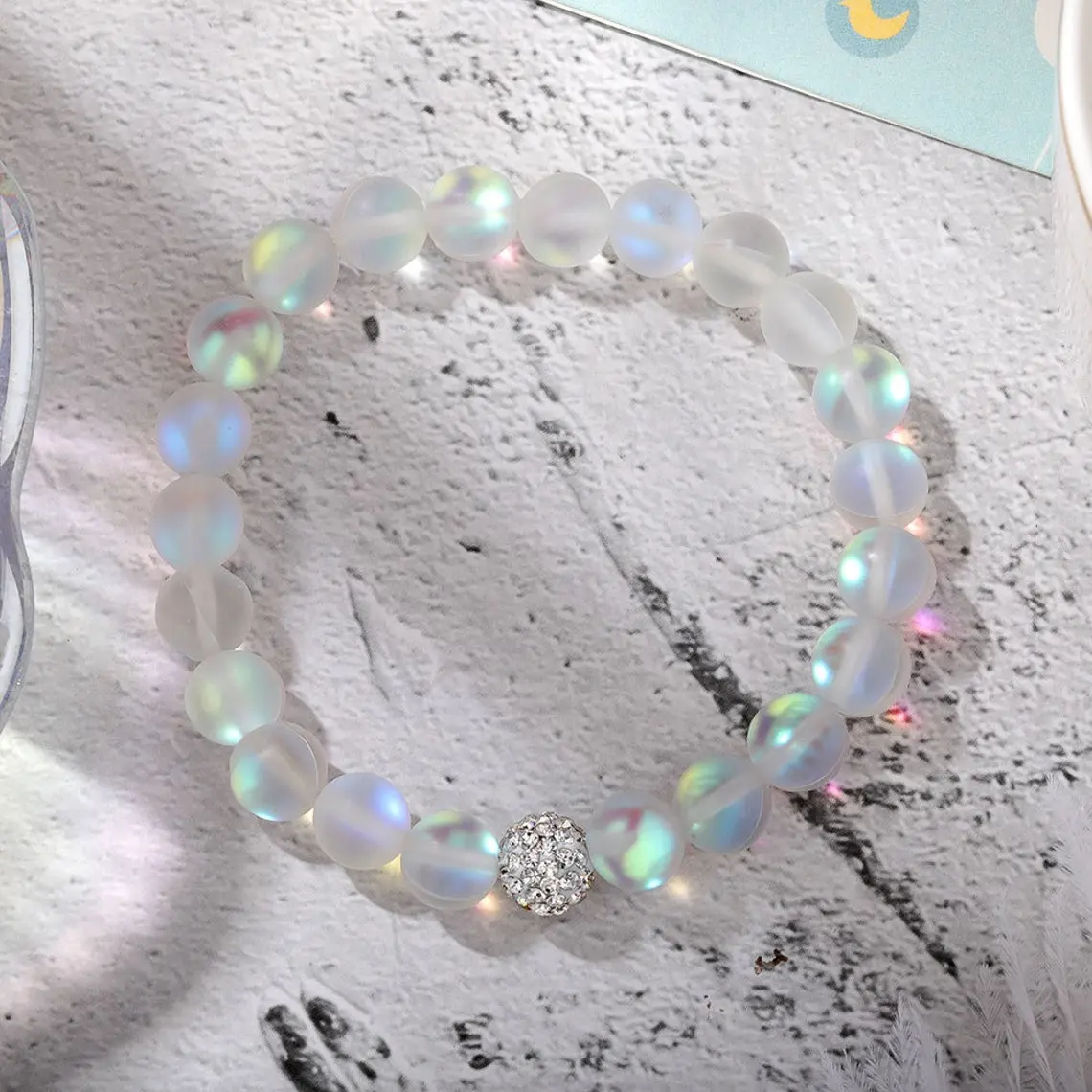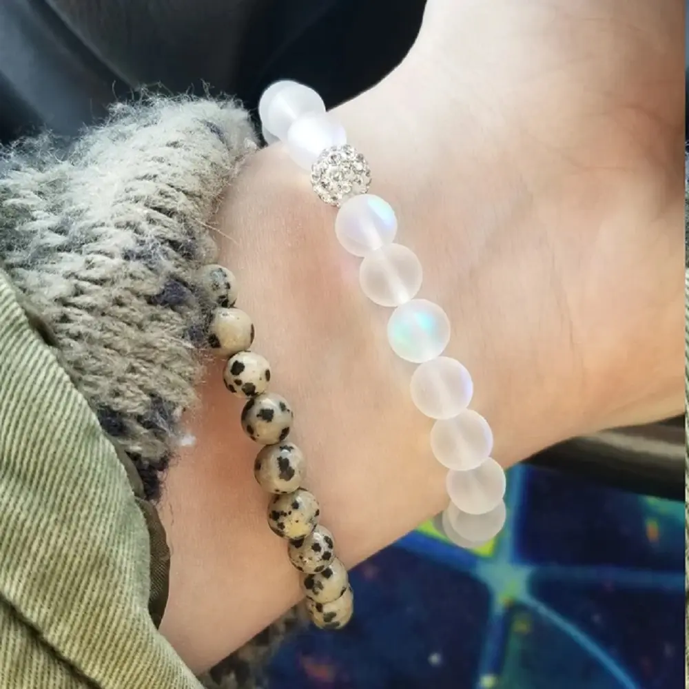 The Sofia Angel Aura Quartz Stone Beaded Bracelet is a stunning accessory.It measures about 6.5 ~ 7 inches and stretches to fit most wrists.Handmade with elastic cord, it offers a comfortable fit.No clasp or closure makes it easy to wear.Perfect for boho chic style and natural stone lovers.Wear it alone or stack with others for a layered look.