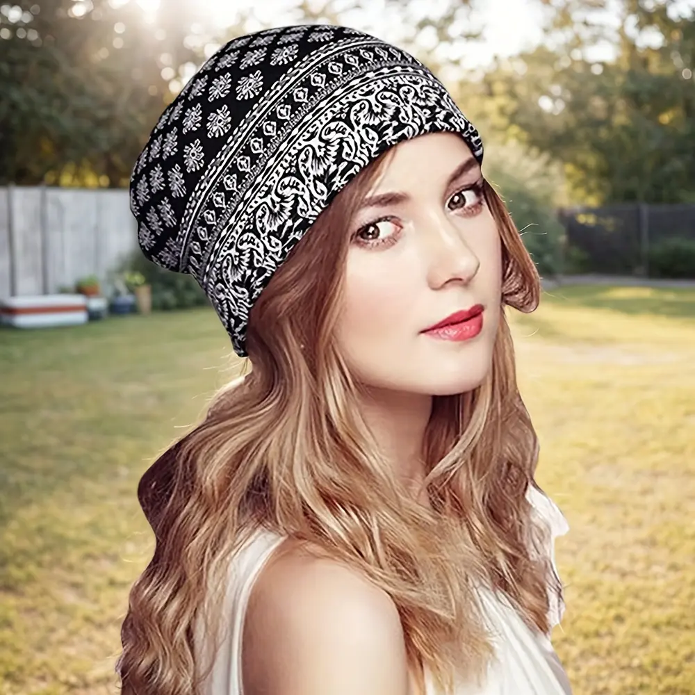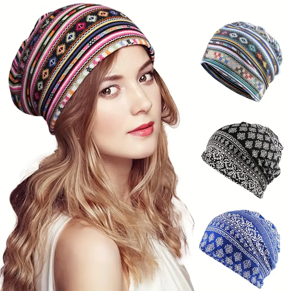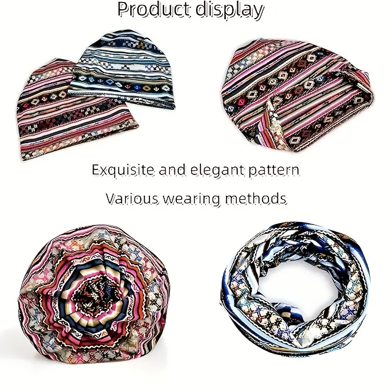 4 Pack Bohemian Style Double-Sided Skullies Caps for Men Women, Elastic Slouchy Beanie, Warm Winter Neck Gaiter, Casual Headwear, Machine Washable, Mixed Color, Suitable for Casual Attire & Cold Weather - Perfect Gift for Friends & Family