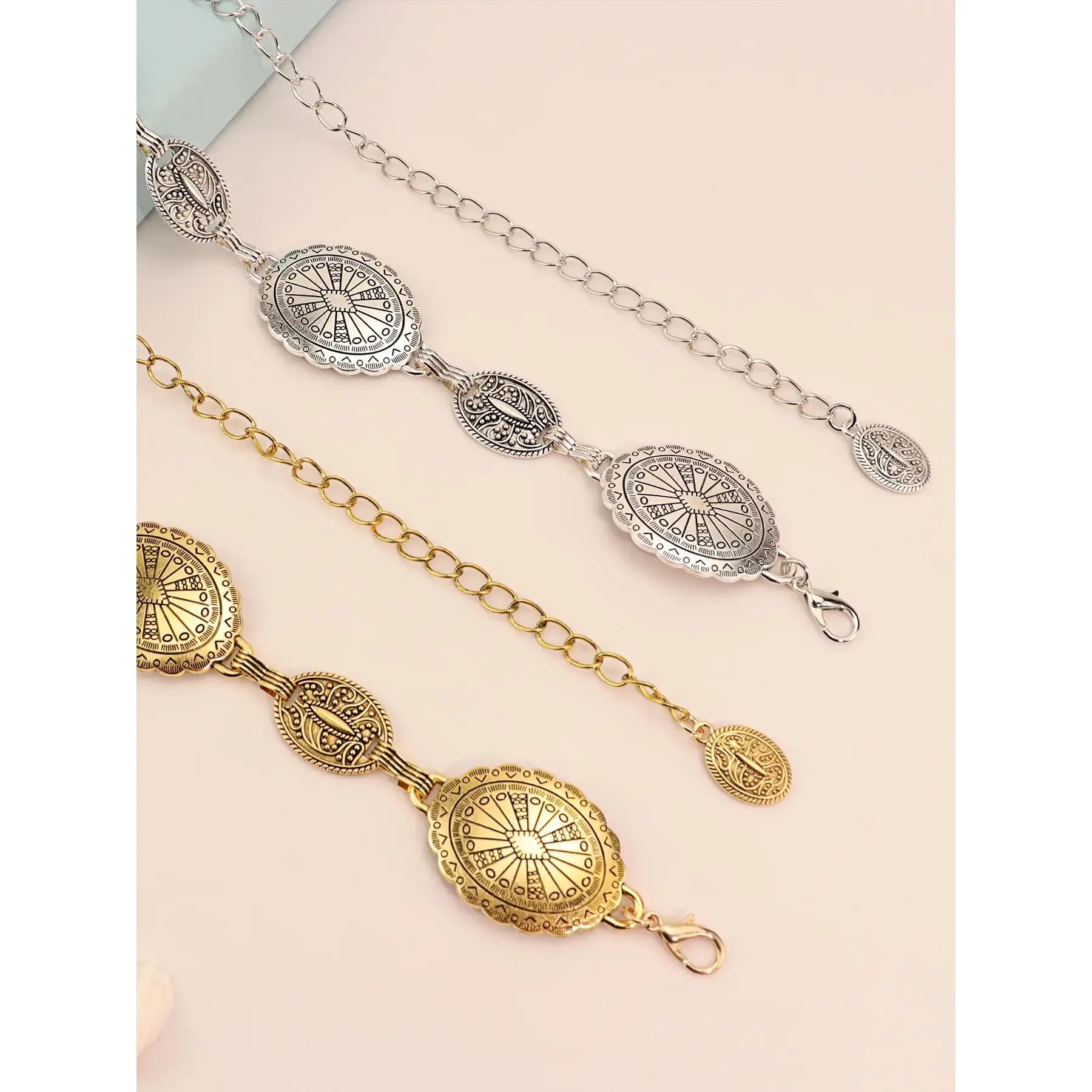 [Unique Metal Finish]: The western metal conch belt features a distinctive silver color finish, setting it apart tailored for country-themed events.