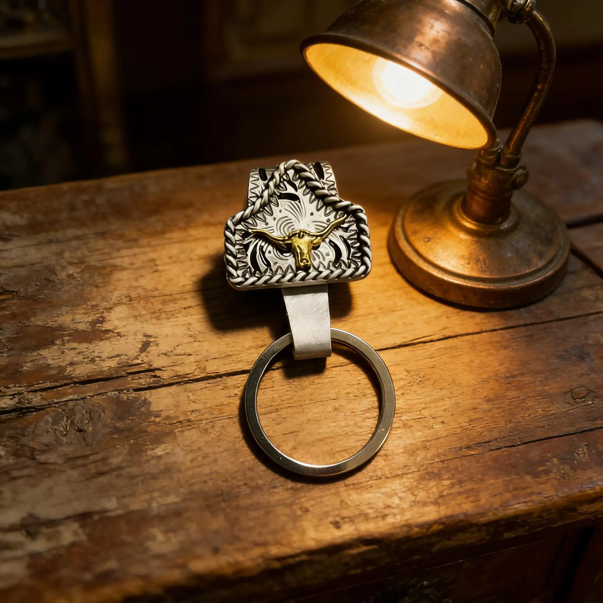 This key holder boasts a rustic cow-tag shape, meticulously crafted for a stylish Western touch.Perfect for enhancing your everyday carry, it adds a unique flair to any outfit.🌵
