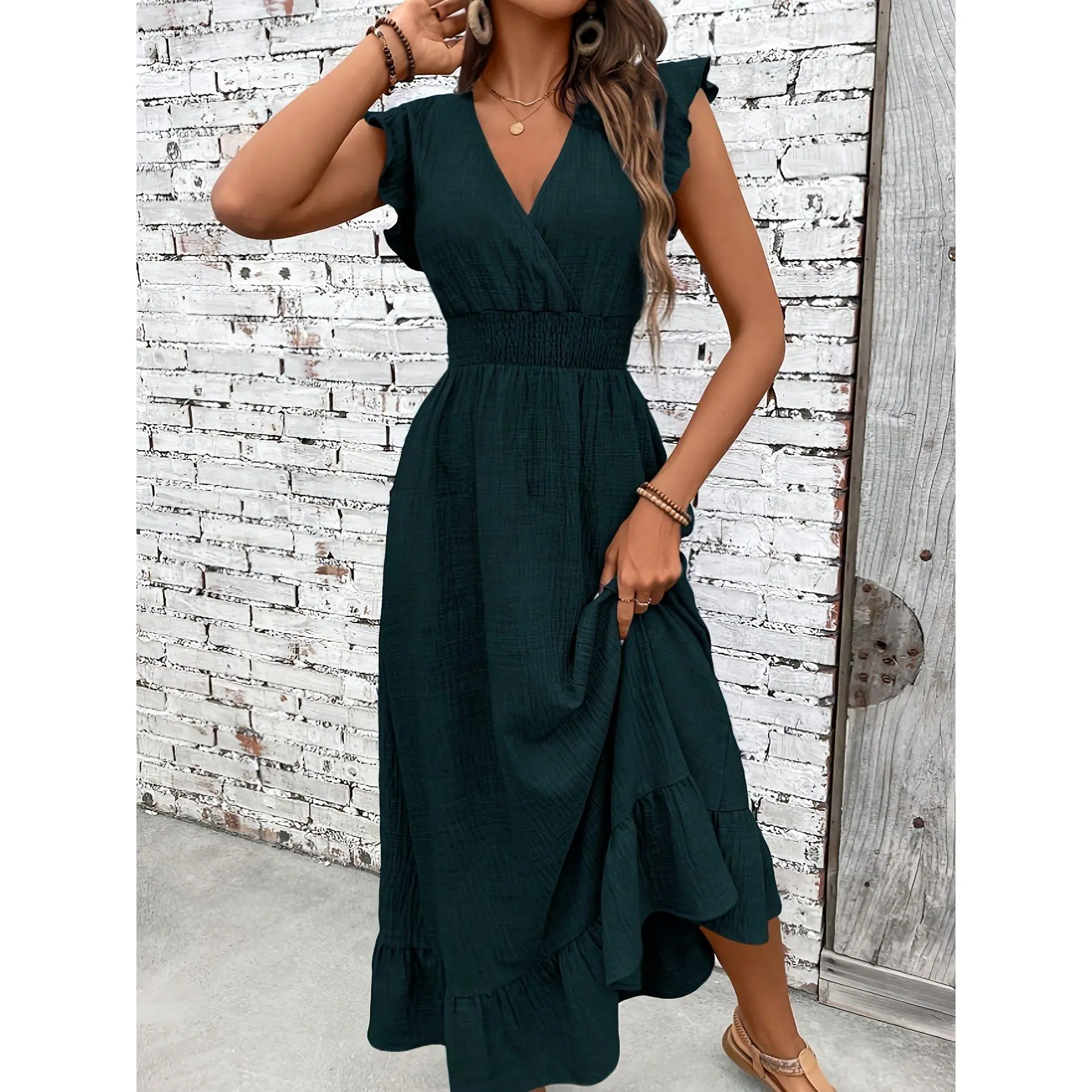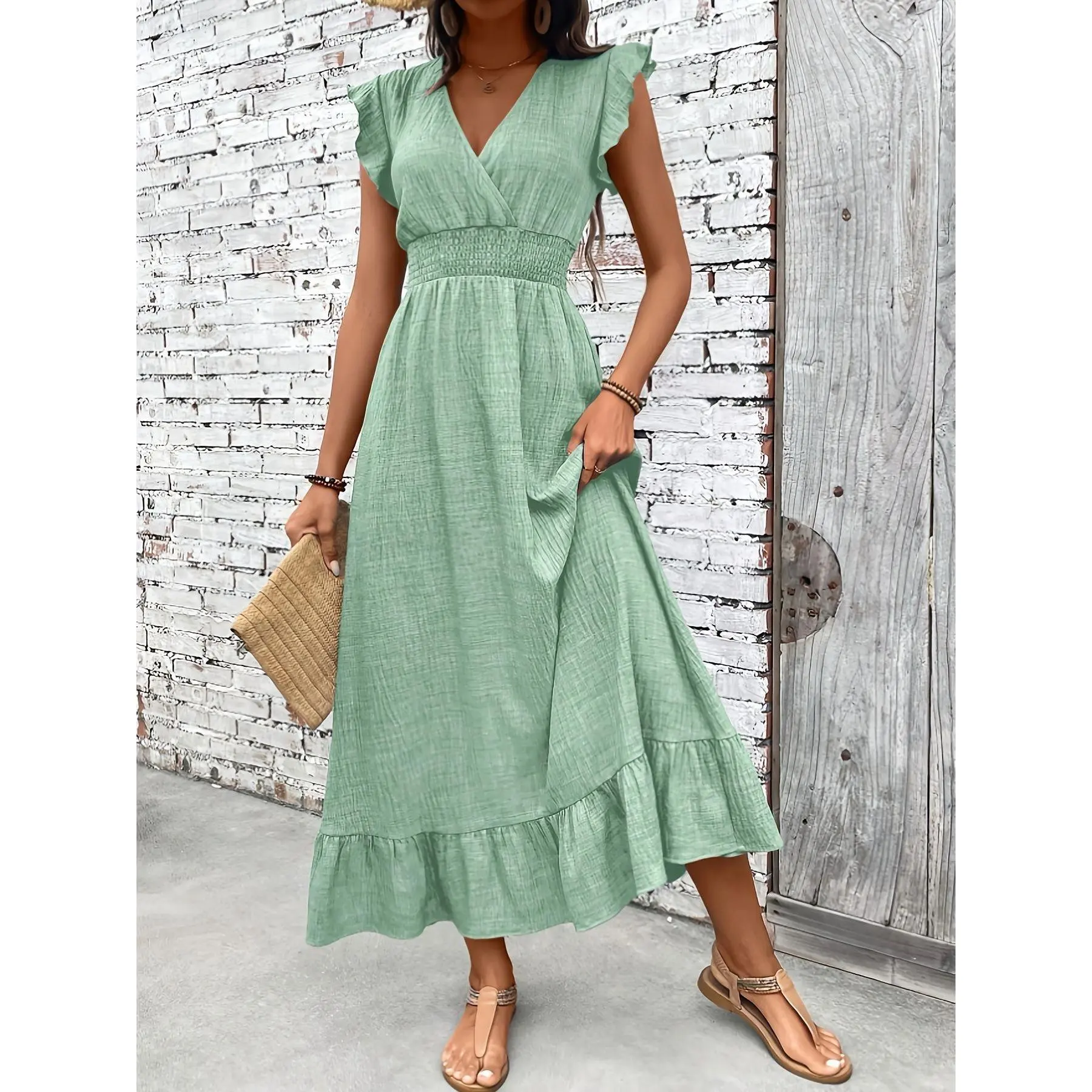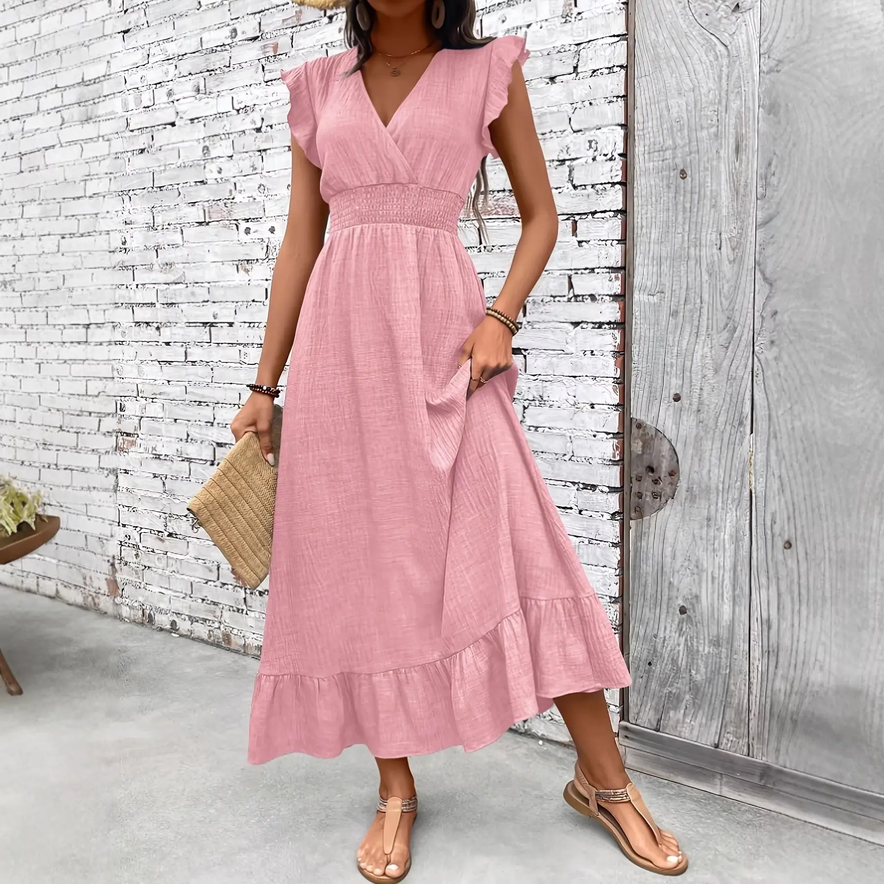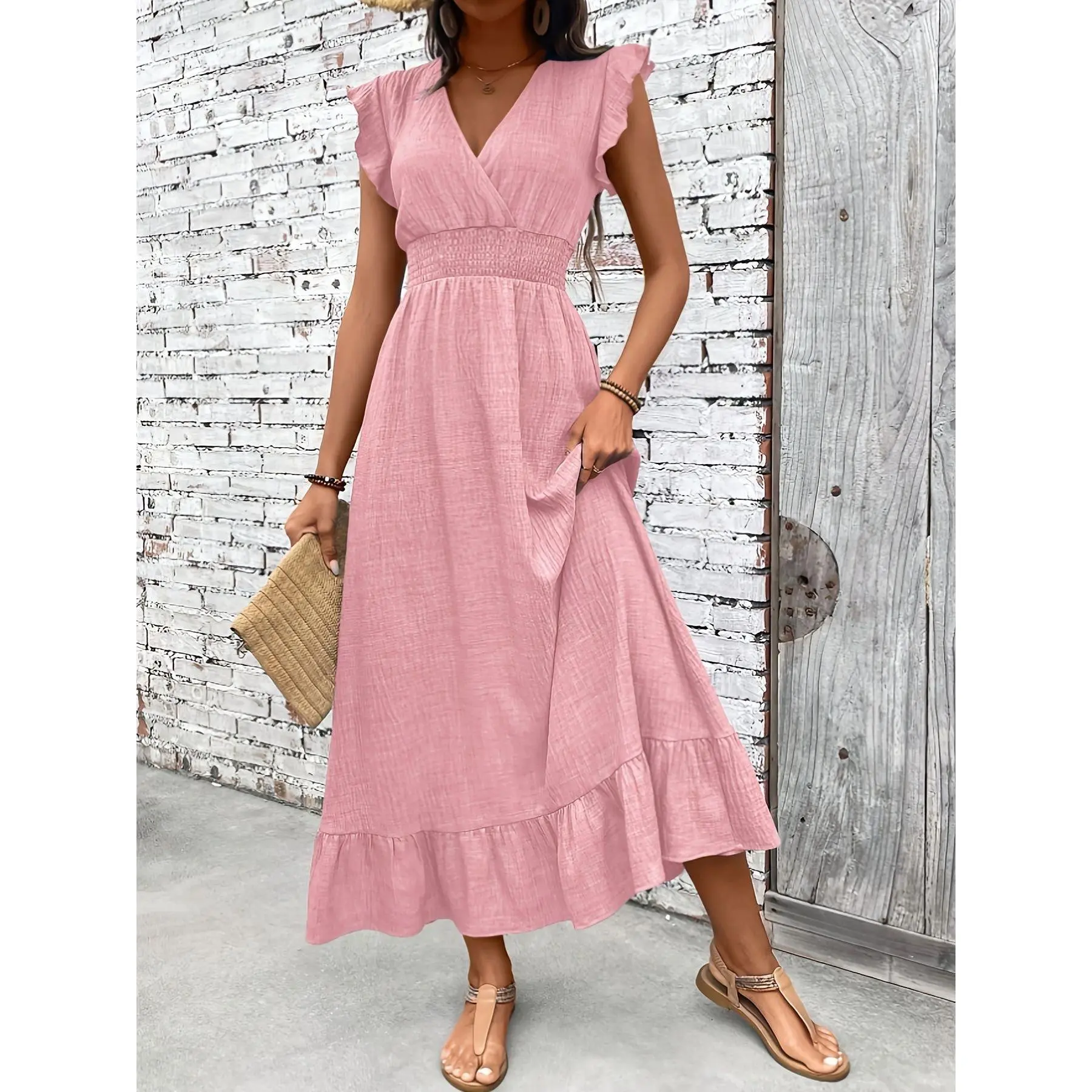2026 Women's Fashion Elegant Long Dress Beach Vacation Waist-Narrow Dress Spring and Summer Style