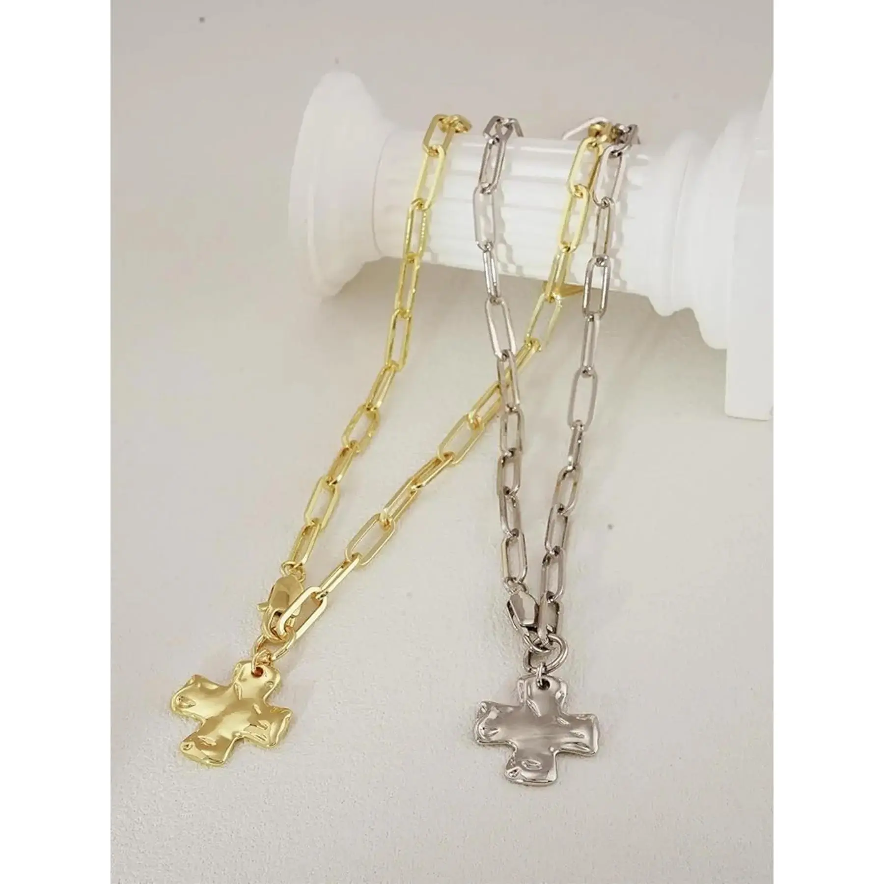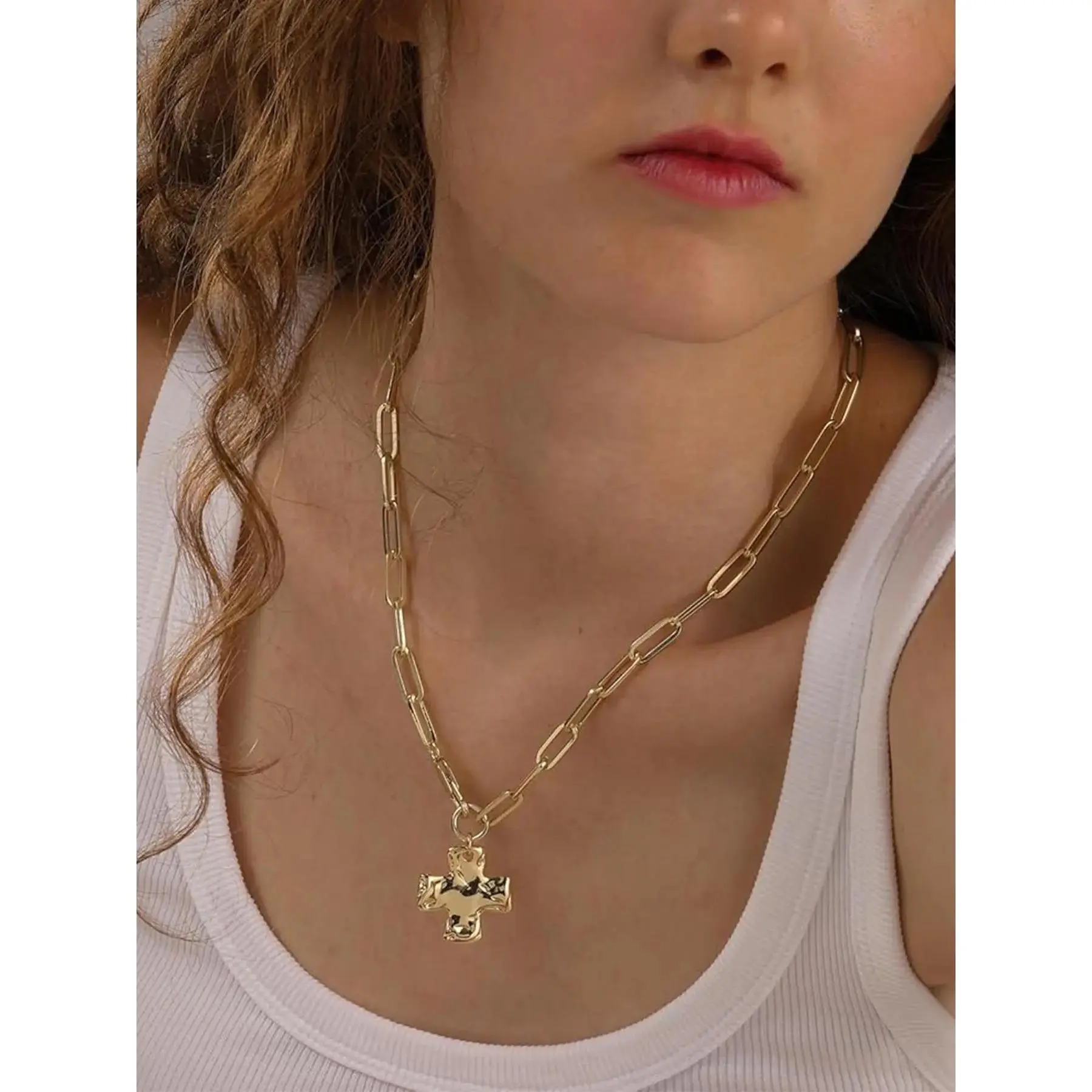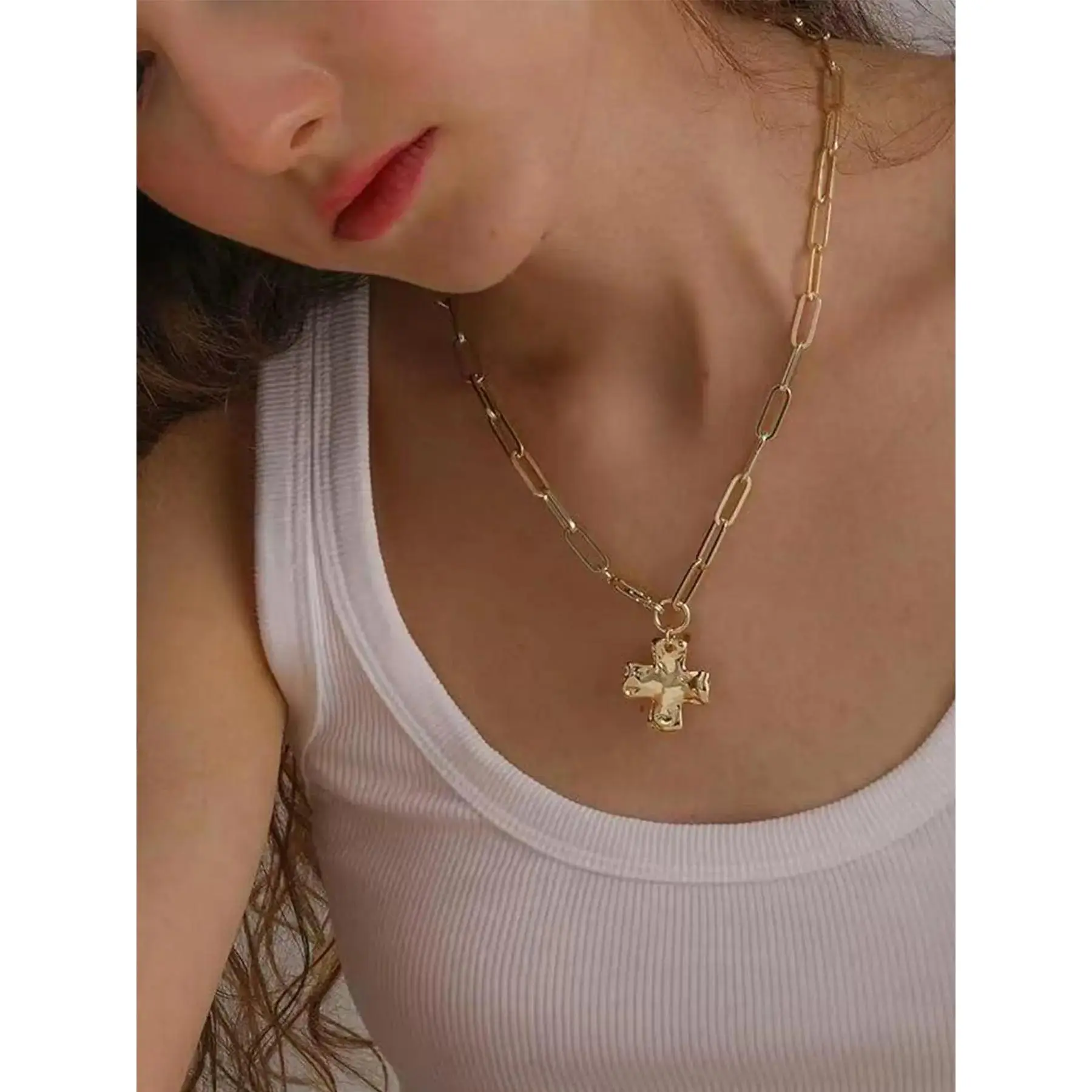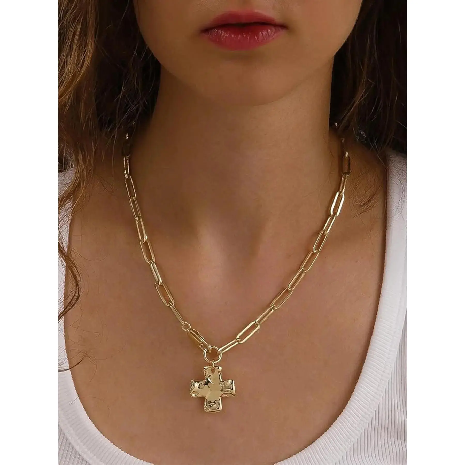 [Layered Look]: This chunky cross necklace features a unique layered design, combining paperclip, herringbone, and snake chains for a trendy appearance.